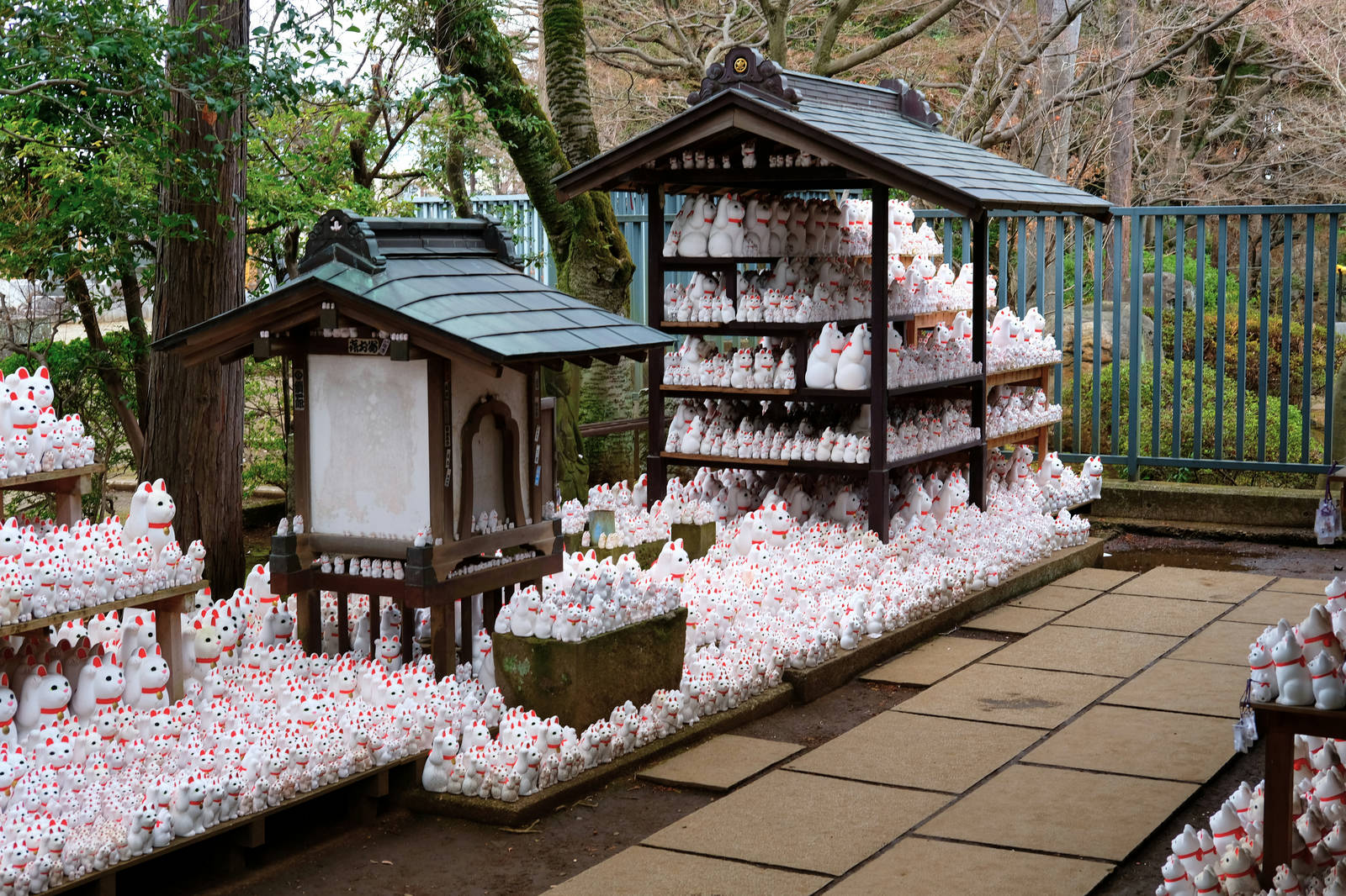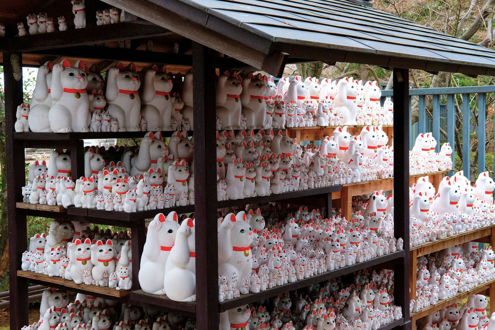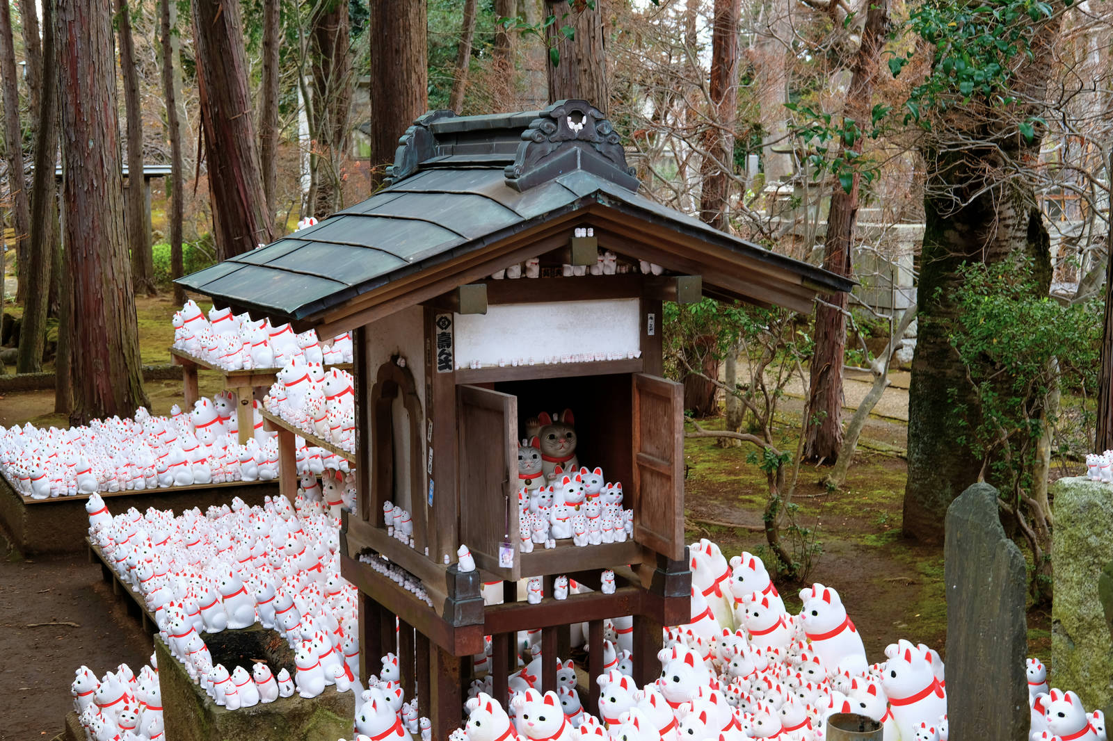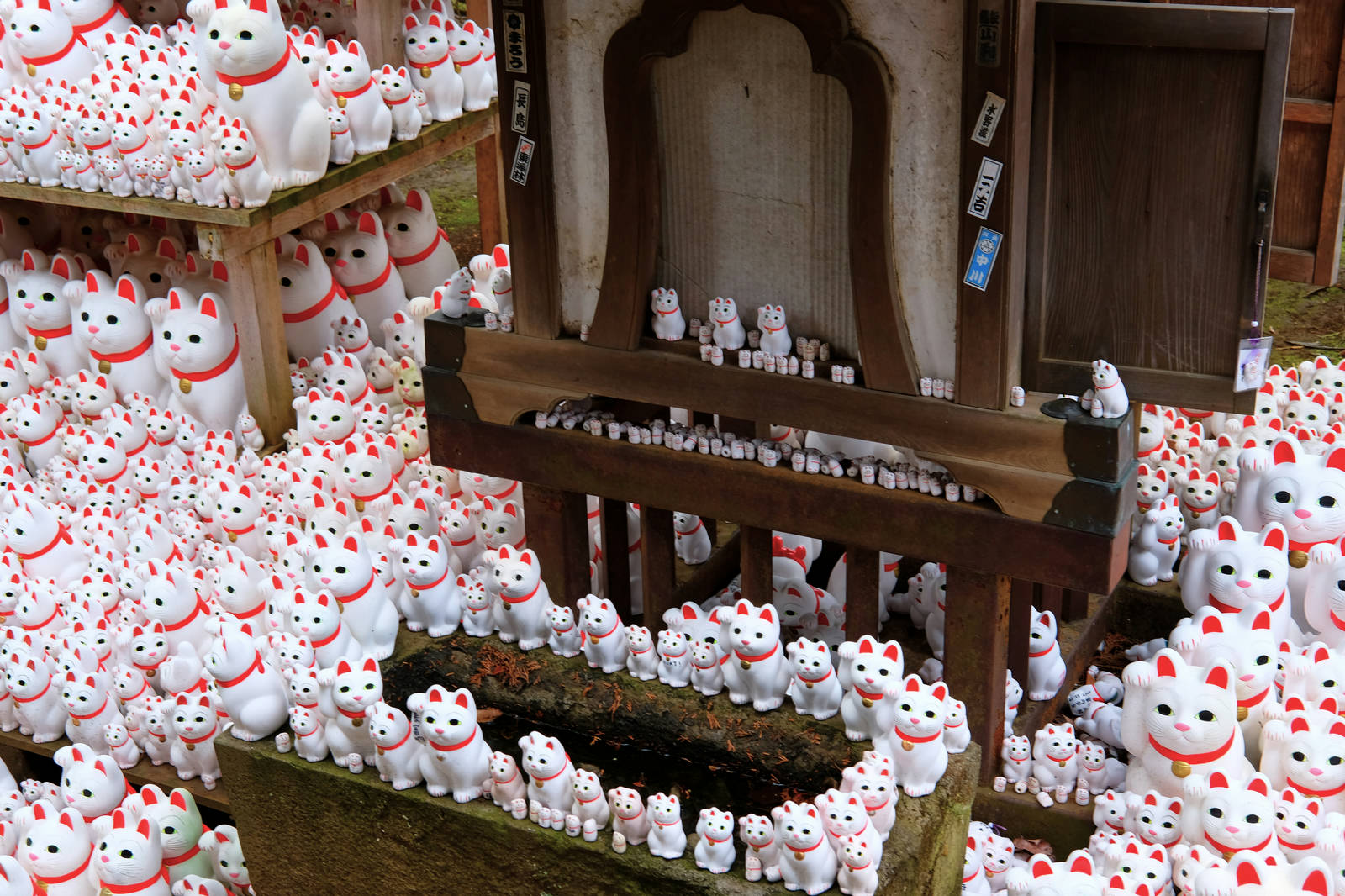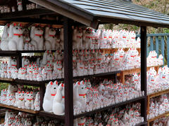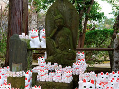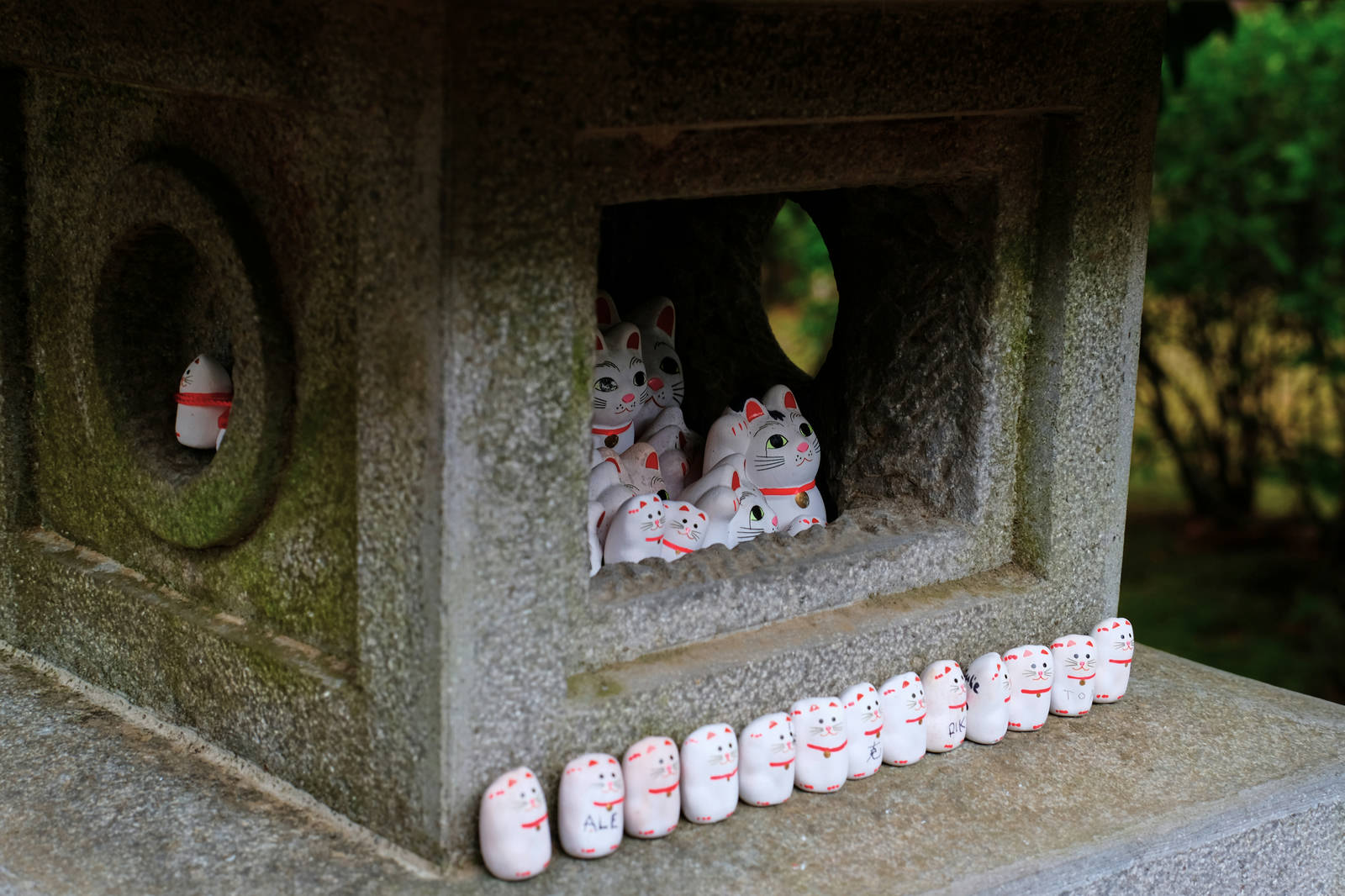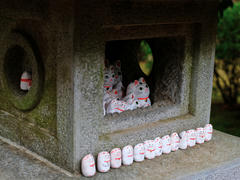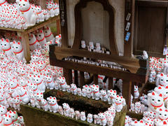 Montag war das Wetter wieder benutzbar, also auf zum nächsten Spaziergang. Diesmal zum Gōtokuji Tempel, der auch als Winkekatzen Tempel bekannt ist. Der liegt in einem etwas weniger dicht bebauten Teil der Stadt, knapp drei Stunden zu Fuß von meinem Hotel weg. Die erste Hälfte des Wegs hab ich deswegen dann doch den Zug genommen, die zweite Hälfte hat sich dann aber auch durchaus gelohnt: Es gibt in Tokyo mehrere so genannte 'Green Roads', das sind recht lange Fußwege mitten durch die Stadt, schön bepflanzt, mit Bach und Kunstinstallationen. Mit der angrenzenden Bebauung erzeugt das Ganze eine erstaunlich dörfliche Atmosphäre. Der Tempel selbst war recht erwartbar, gut gepflegte Parkanlage und viele Winkekatzen. Die Story dahinter ist übrigens, dass mal eine dem Tempel angehörige Katze einen Feudalherren vom Blitz rettete indem sie ihn in den Tempel gewunken hat. Seitdem bedankt man sich hier für in Erfüllung gegangene Wünsche mit Winkekatzenfiguren.