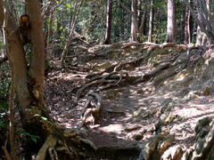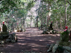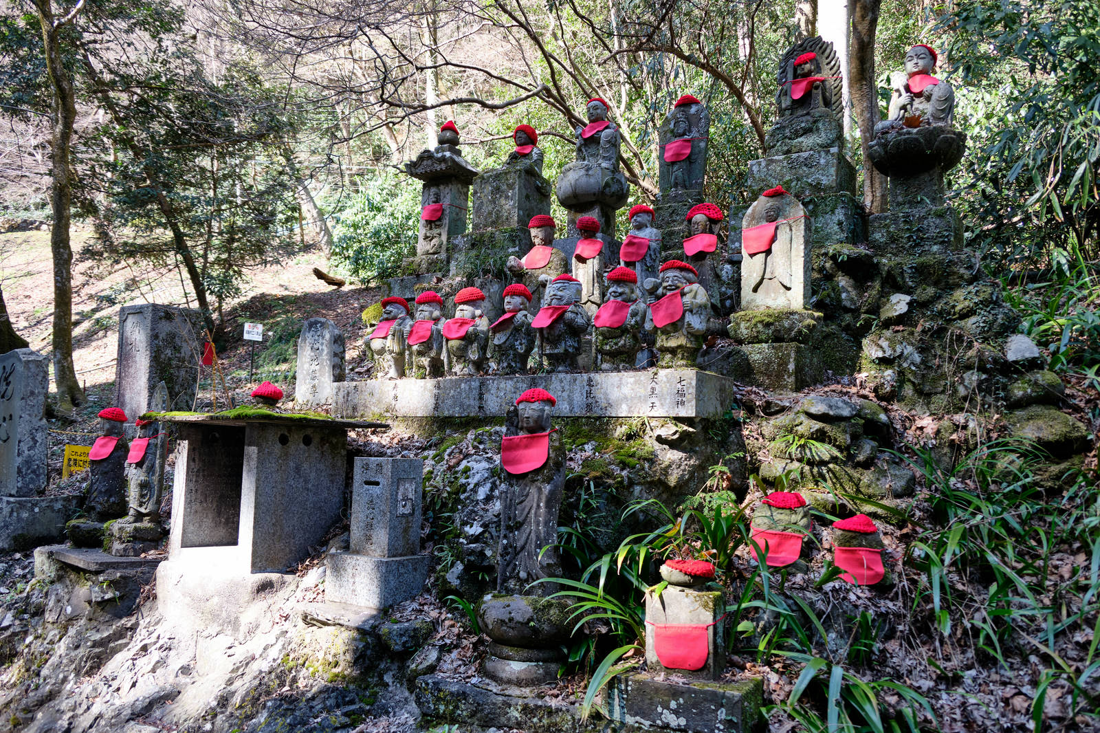 Also auf zum Berg Takao, knapp eine Stunde per Zug aus Tokyo raus. Dort gibt es diverse Wanderrouten zum Gipfel in knapp 600 Metern Höhe. Insgesamt sehr zu empfehlen, durch die vielen Routen ist jeweils wenig los, der Wald ist ruhig und beschaulich und oben gibt's ne super Aussicht auf die Metropolregion Tokyo. Apropos oben, da ist es nicht mehr ruhig und beschaulich, denn da ist eine riesige Tempelanlage zu der zwei Lifte hochführen ... sah aber dafür auch beeindruckend aus. An diversen Stellen findet man übrigens Steinfiguren mit Mützen und Lätzchen, Recherchen haben ergeben, dass damit wohl Eltern ihrer gestorbenen Kinder gedenken—mit dem Wissen erzeugt das doch eher eine bedrückende Atmosphäre.