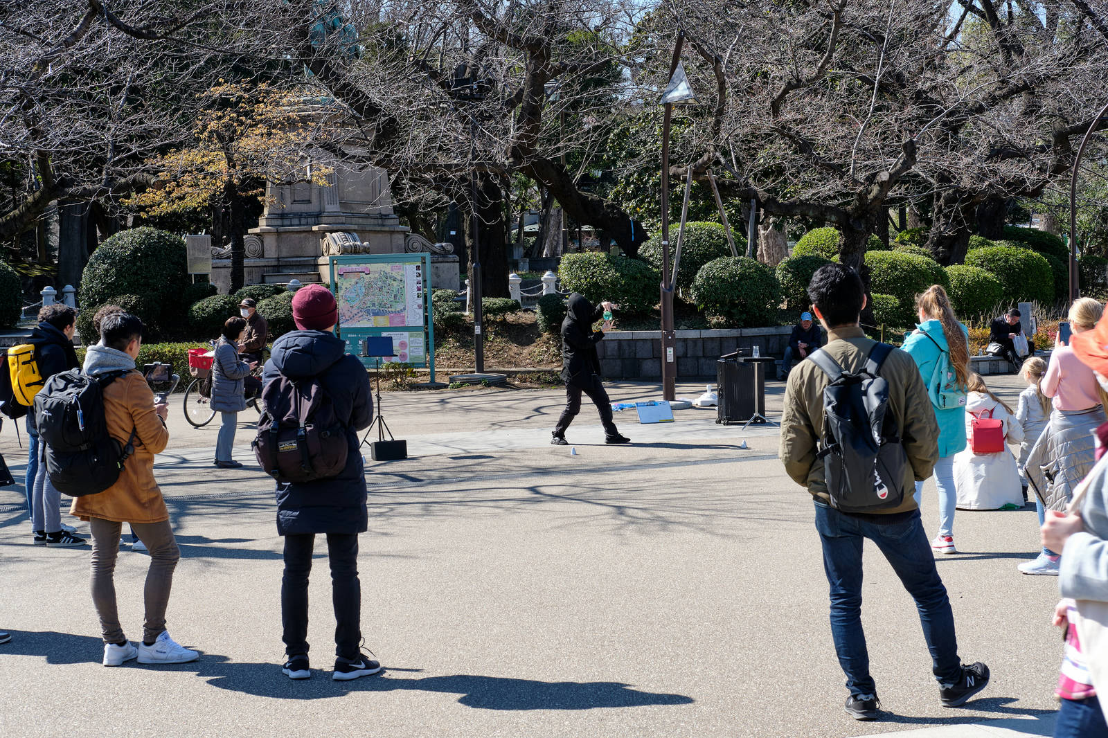 Nach einem kurzen Blick auf die ebenfalls kurze Liste der trotz Coronavirus noch geöffneten Attraktionen habe ich beschlossen mir doch erstmal eine SIM Karte mit Telefonie zu organisieren—meine aktuelle Travel-SIM kann nur Internet und läuft nach 31 Tagen aus. Praktischerweise kann man die Online kaufen und am gleichen Tag direkt in Tokyo abholen. Da es einen Abholpunkt in der Nähe des Tokyo Skytree gab, habe ich das ganze dann direkt für einen ausgiebigen Spaziergang durch die Stadt genutzt ... Wege in Tokyo sind weit aber irgendwas muss man ja gegen den Jetlag tun. Der Skytree hat natürlich momentan auch zu, aber von außen ist das Ding auch recht beeindruckend. Das ganze liegt übrigens in Asakusa, einem eher historischen Bezirk, wo der Sensoji Tempel steht. Der ist wohl halbwegs berühmt und es war gut was los. Alles in allem ist Asakusa aber doch eher sehr touristisch, viele Souvenirläden und man lässt sich gerne mit Miet-Kimono per Rikshaw durch die Gegend karren. Auf dem Rückweg bin ich dann nochmal durch den Ueno Park, auch hier war – wahrscheinlich wetterbedingt – gut was los. Da stand sogar ein Zauberkünstler rum der eine erstaunlich gut choreografierte Show hinlegte.