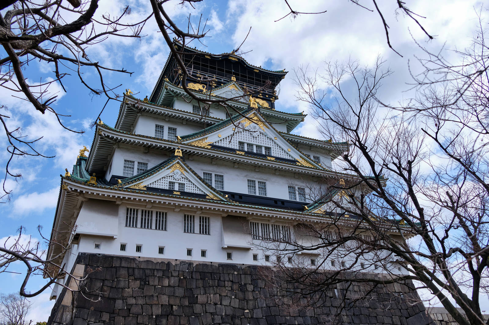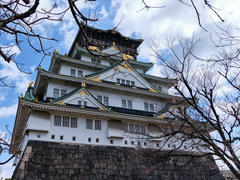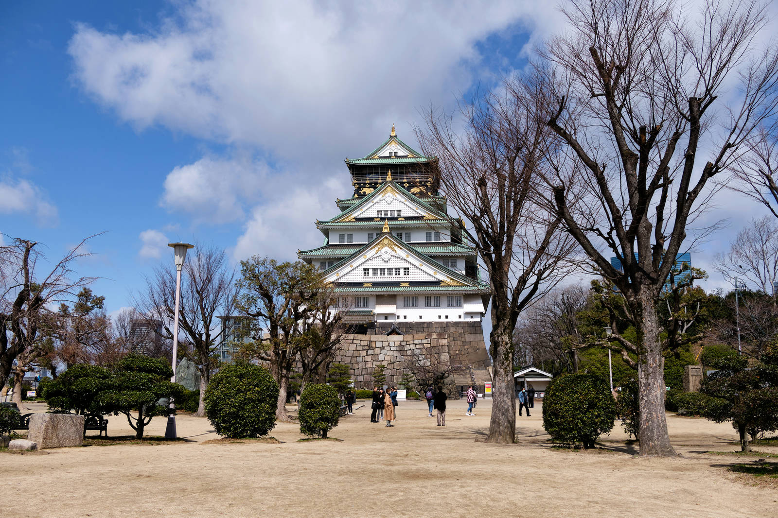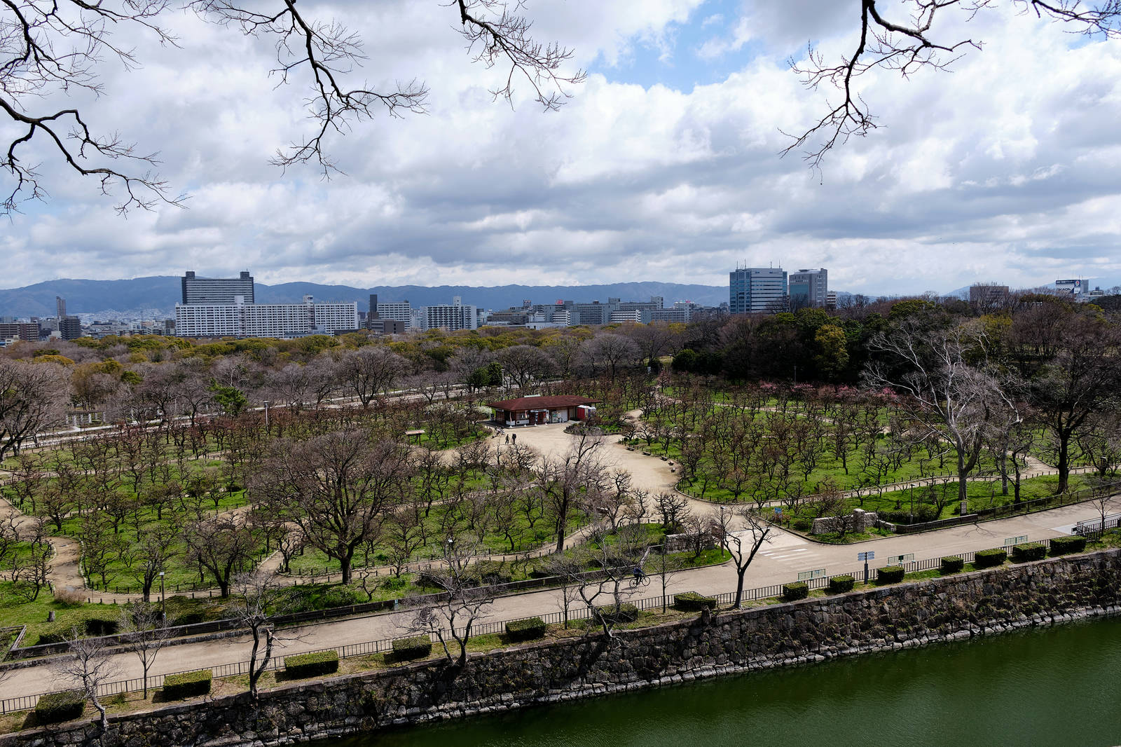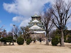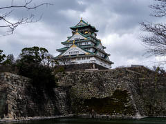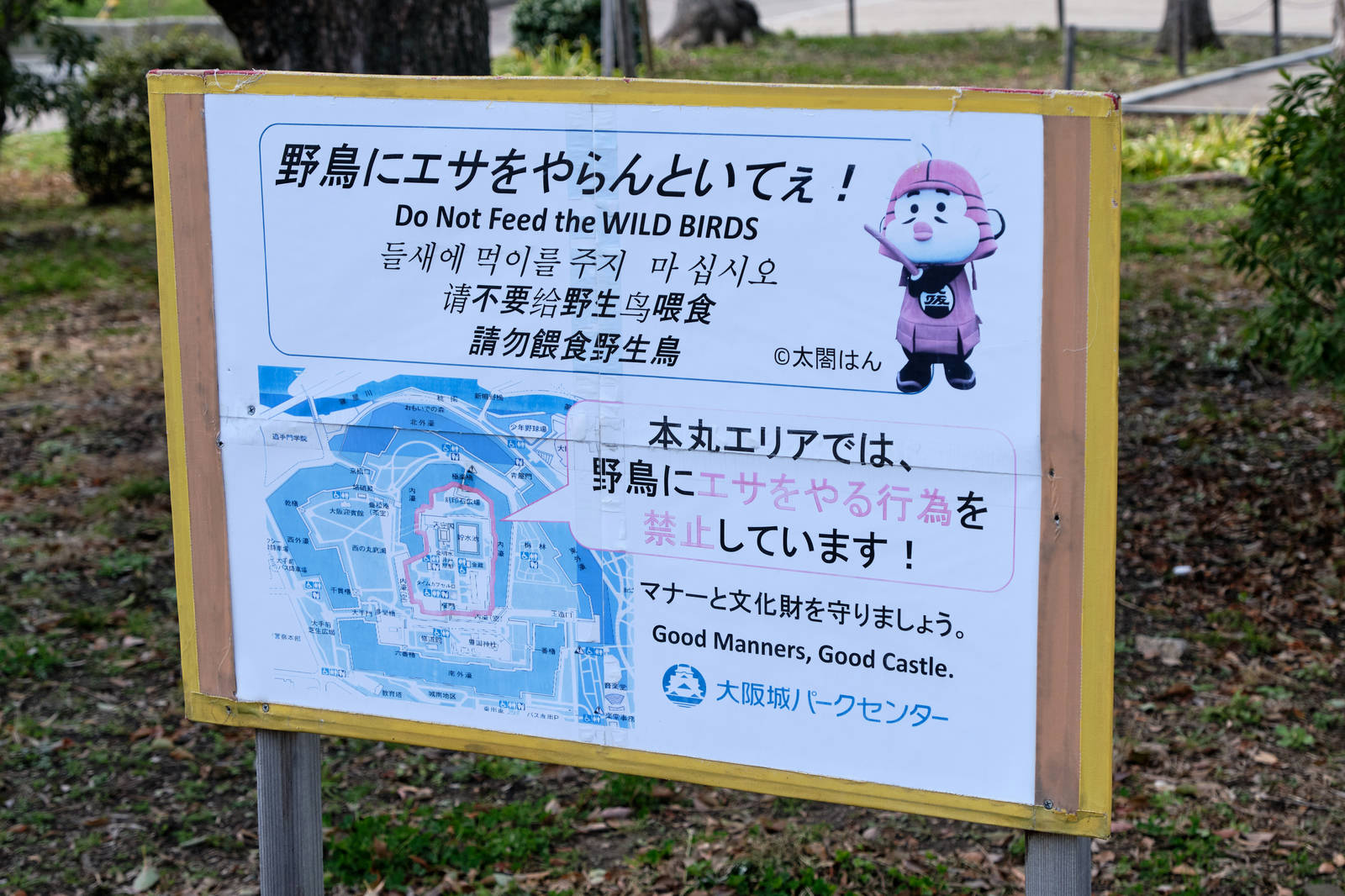 Und schließlich natürlich zur Burg von Osaka. Die ist meiner Meinung nach hauptsächlich wegen der mehrstufigen Befestigungsanlagen außenrum beeindruckend, sonst aber auch ganz hübsch anzusehen. Dort habe ich übrigens auch meinen ersten Gaijin-Smash¹ geschafft. Ich weiß nicht ob ich irgendwo langgelaufen bin wo ich nicht hätte sollen, oder irgendwas Fotografiert habe was ich nicht hätte sollen, zumindest wurde ich auf dem Weg aus dem Park heraus von zwei Wachleuten abgefangen die mir verzweifelt irgendwas mit "Kamera" und "Zaun" erklären wollten. Nachdem sich aber kein Passant fand der Dolmetschen konnten und sie per Funk auch nichts erreicht haben, haben sie sich dann mehrfach Entschuldigt und mich weitergehen lassen. Keine Ahnung was das war, ich erinnere mich an kein Schild was ich evtl. ignoriert haben könnte ... vielleicht wollten sie mir ja auch nur sagen wo ich bessere Bilder hätte machen können.