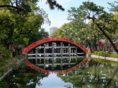 Der Sumiyoshi Taisha ist so alt, dass er noch ohne Einflüsse vom asiatischen Festland enstanden ist und deshalb architektonisch als durch und durch japanisch gilt. Und tatsächlich wirkte alles erfrischend anders, außerdem gab's wieder einen hübschen Park außenrum.