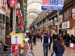 Osaka ist nicht nur "die Küche des Landes" – was etwas schade ist, da ich aus Infektionsschutzgründen mich weitestgehend auf Konbini-Essen beschränkt habe – sondern auch die Stadt der überdachten Einkaufsstraßen. Die gibt's hier haufenweise, teilweise Kilometer lang.