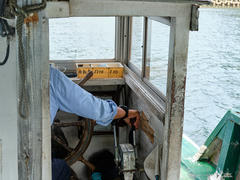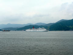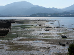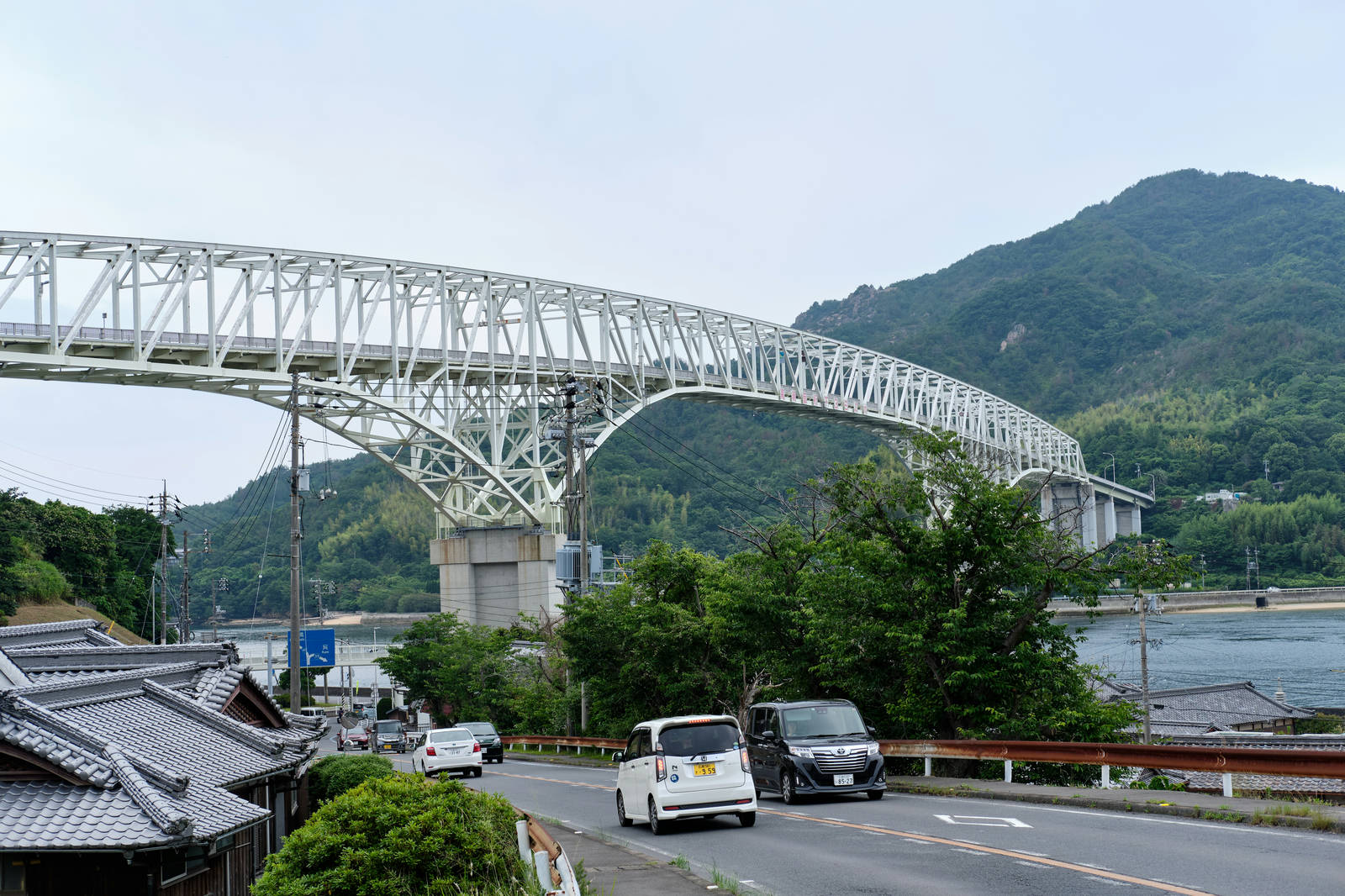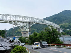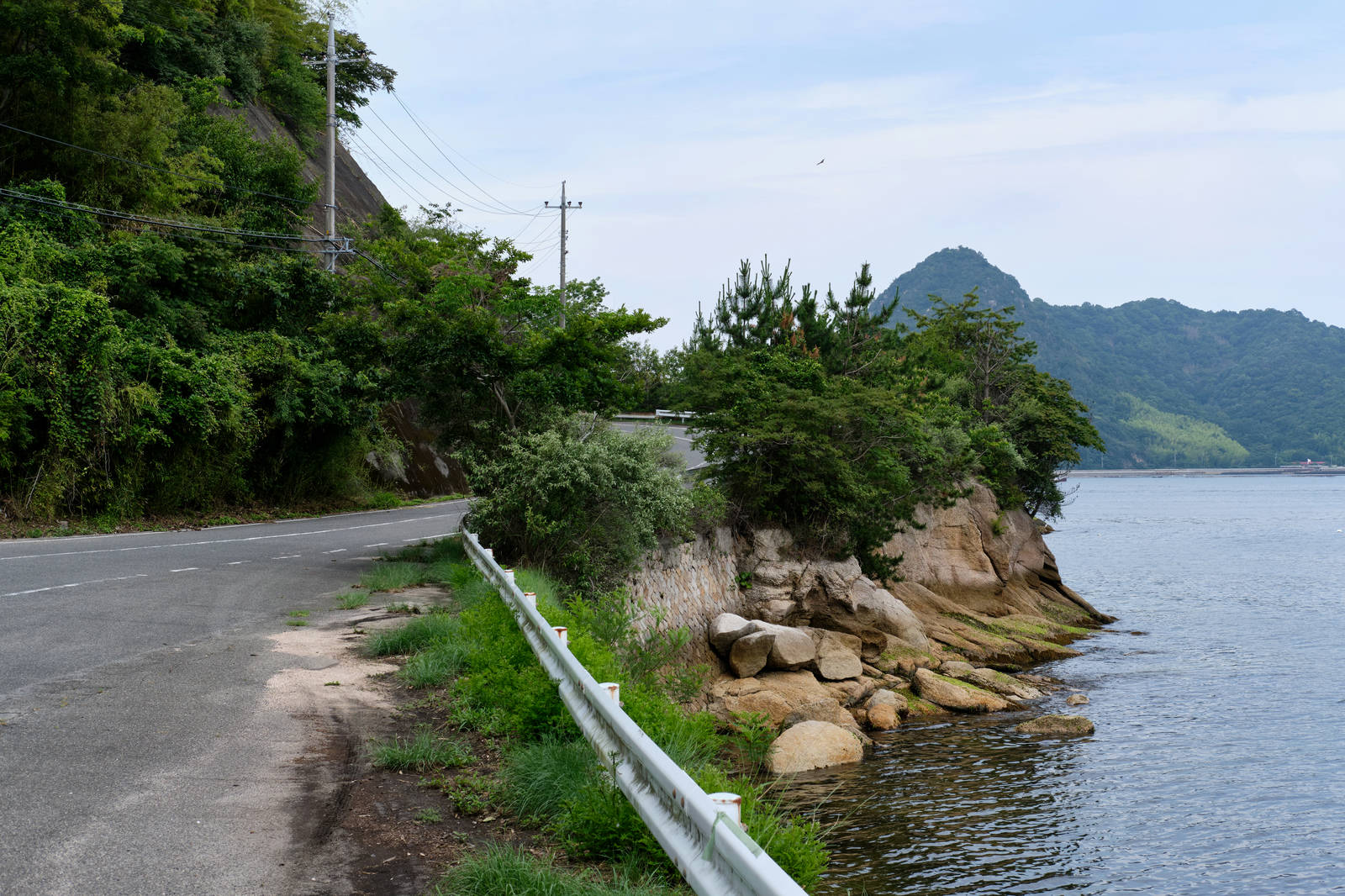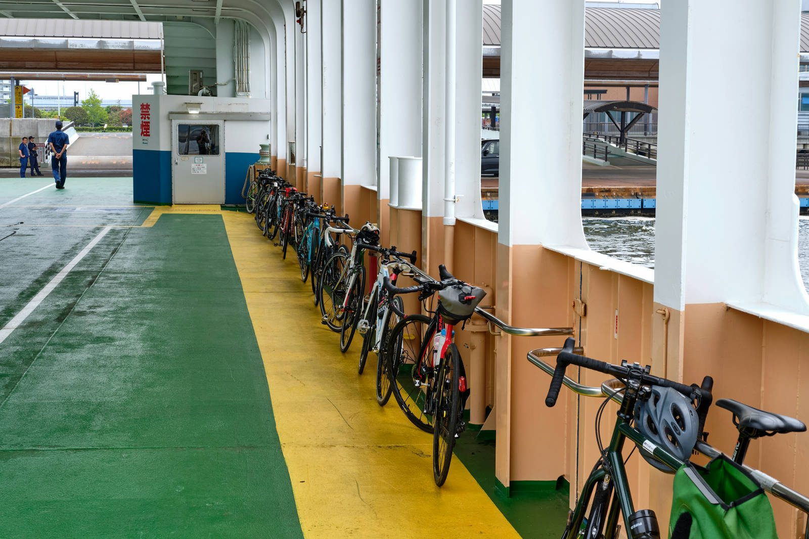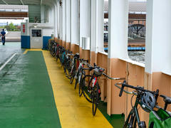 Die letzte Tour ging auf die als Cycling Island beworbenen Halbinsel Etajima die vor Hiroshima liegt. Von Hiroshima aus kommt man gemütlich per Fähre dort hin und kann dann weniger gemütlich die 110km nach Hiroshima zurückfahren. Frohen Mutes losgeradelt endete die Tour nach wenigen Kilometern an einer gesperrten Straße ... war wohl weggeschwemmt worden und wurde gerade wiederaufgebaut, ich glaube ihr erkennt langsam das Muster. Die Alternativroute hätte direkt am Hafen begonnen, es gab aber auch eine Abkürzung in steil, ratet mal wozu ich mich entschieden habe. Als ich dann keuchend wieder oben an der eigentlichen Route stand, fuhr natürlich, amüsiert winkend, die Gruppe von um die 15 Radlern, die mit mir die gleiche Fähre genommen hatten, an mir vorbei. Die wussten vermutlich mehr als ich. Der Rest der Insel war dann aber recht angenehm zu fahren: Alles Straße, wenig Verkehr, gut markierter Weg. Optisch aber eher Mittelklasse. Zumal war es Bewölkt, zum anderen ist auf Etajima viel Schiffsbau und Militär. Immerhin lassen sich fasst alle Brücken per Fahrrad nutzen, nur die letzte nicht, da gibt es dann eine kleine Fähre in technisch fragwürdigem Zustand.