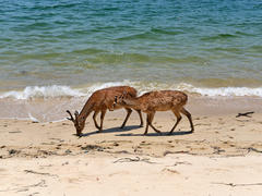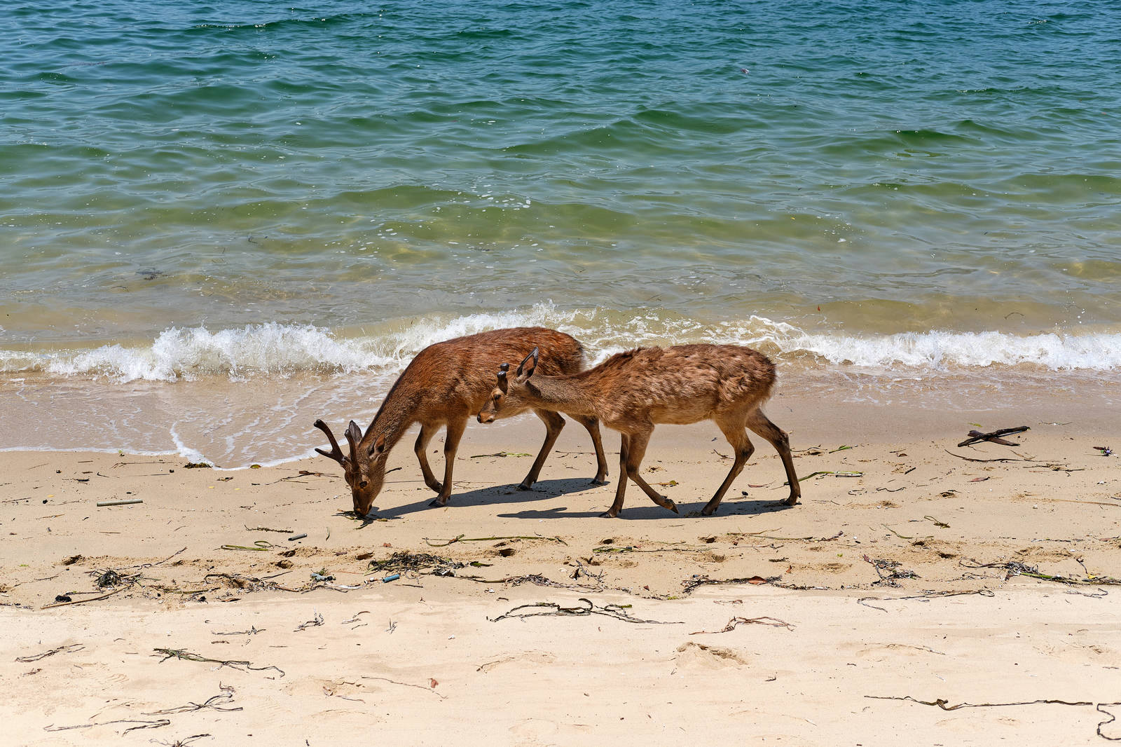 Und noch eine Besonderheit: Bei Ankunft wird direkt darauf hingewiesen, dass man besonders auf seine Fährtickets und sonstigen Habseligkeiten aufpassen soll, weil die wohl gerne von den ortsansässigen Rehen gefressen werden. Die Rehe laufen da hauptsächlich in der Stadt rum und das seit wohl mehreren hundert Jahren. Überhaupt nicht scheu, total zahm und nicht aggressiv. Nur Mittagessen wird dadurch eher kompliziert, kaum packt man was Essbares aus, kommt ein Reh auf wenige Zentimeter auf einen heran und guckt treu-doof. Ortswechsel helfen auch nur kurzzeitig.