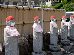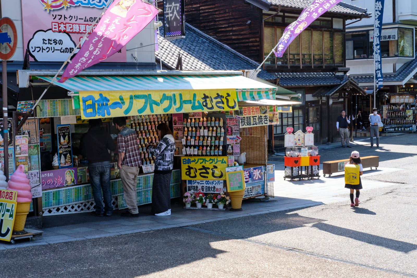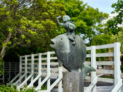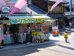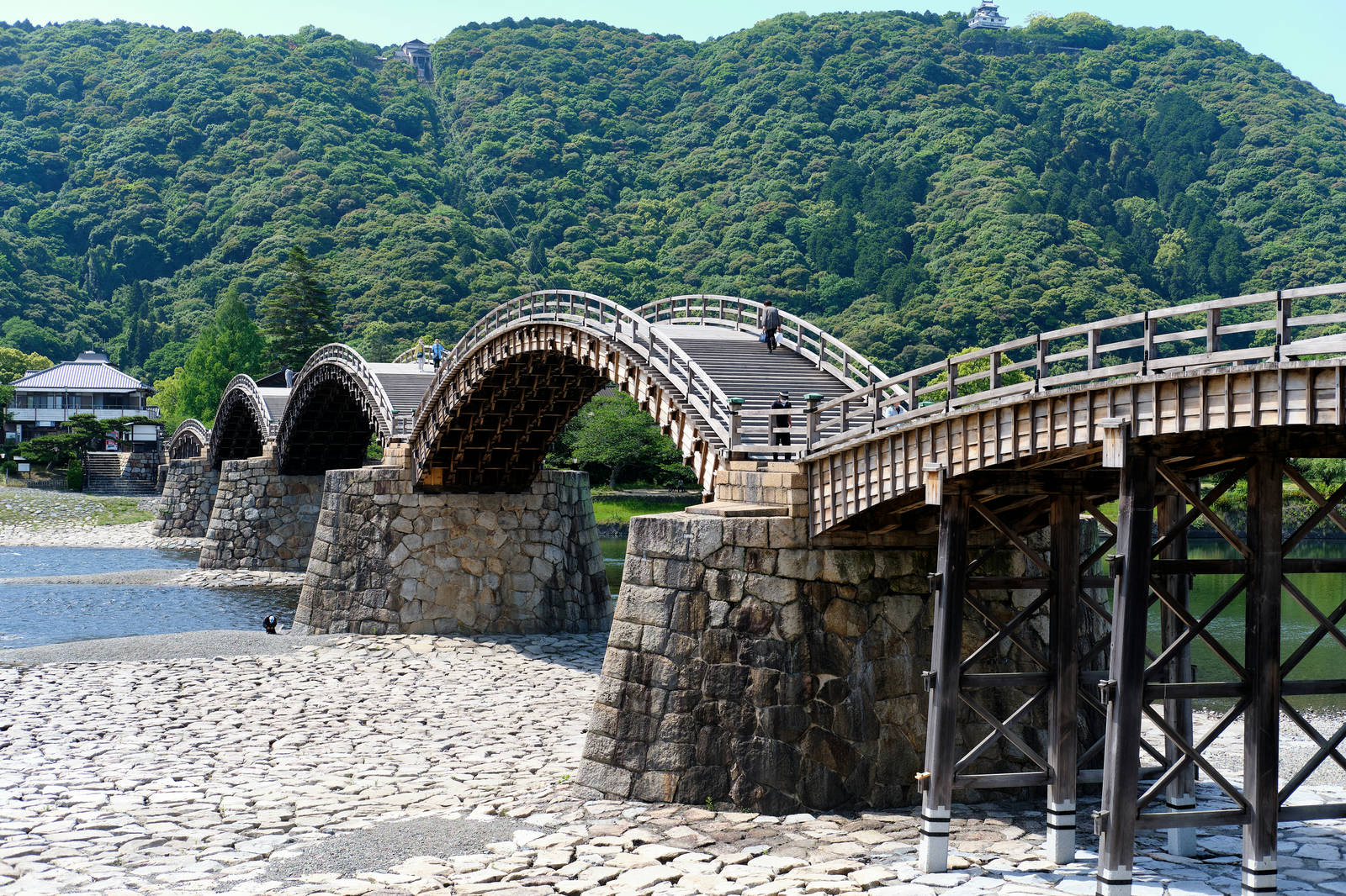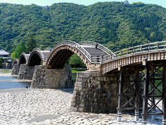 Der nächste Anlauf ging nach Iwakuni. Das liegt auf halber Strecke des Weges den ich gekommen war, dementsprechend hauptsächlich Stadt und unschön zu fahren. Iwakuni ist wegen der Kintai Brücke und dem angrenzenden Park ein beliebtes Ausflugsziel. Die Brücke ist über viele hundert Jahre immer wieder durch Hochwasser weggeschwemmt und wiederaufgebaut worden, zuletzt 1950, wohl weil die Amerikanische Armee zu viel Schotter um die Pfeiler weggebuddelt hat um eine Landebahn für ihre Basis zu bauen. Die Brücke zu benutzen kostet was und ist aus augenscheinlichen Gründen per Fahrrad auch nicht möglich, deswegen bin ich dann doch über die Straßenbrücke nebenan zum Park auf der anderen Seite. Der wirkt recht modern, mit Blümchen, Springbrunnen und Kunst. Eisläden gab's auch ... mit einer wirklich absurd großen Auswahl an Sorten. Achja, ne Burg hat Iwakuni natürlich ebenfalls, ausnahmsweise mal auf einem Berg, da führt auch eine Seilbahn rauf ... und eine Straße, die war aber wegen Bauarbeiten gesperrt, seufz.