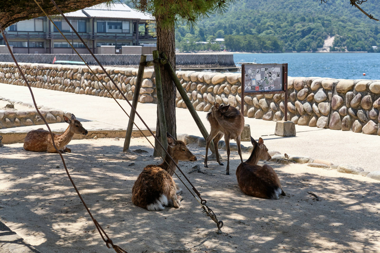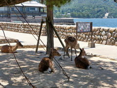 Eine Ausflug nach Miyajima – eigentlich heißt die Insel Itsukushima und die Stadt die darauf liegt Miyajima ... das aber auch nicht mehr seit sie 2005 mit Hatsukaichi verschmolzen ist... Der Einfachheit wegen bleibe ich aber trotzdem mal bei Miyajima – darf natürlich nicht fehlen wenn man eh schon in Hiroshima ist. Dorthin geht's per Fähre, der Hafen liegt etwa 20km außerhalb der Stadt und ist gut per Zug erreichbar (ein drittes Mal wollte ich die Strecke wirklich nicht per Rad nehmen). Die Insel ist wegen dem darauf befindlichen Itsukushima Schrein, der UNESCO Weltkulturerbe ist, und vor allem dem zugehörigen Torii das davor im Meer steht bekannt. Vom dem Torii sieht man momentan allerdings nicht viel, weil es wegen Renovierungsarbeiten komplett eingepackt ist. Neben zahlreichen anderen kleinen Schreinen die überall auf der Insel verteilt sind, gibt es noch ein Aquarium, inklusive fragwürdiger Robben-Show, und viel Gelegenheit zum Bergwandern. Letzterem habe ich mich natürlich gewidmet. Wer die 4.5km Treppen nach oben nicht nehmen kann oder will, kommt auch per Seilbahn zum Observatorium auf dem Gipfel, dementsprechend ist es oben auch weniger idyllisch als man nach der Wanderung vielleicht vermuten würde. Ein weiterer Grund die Seilbahn zu bevorzugen könnten auch die Giftschlangen – Mamushi – sein, die laut Warnschildern auf der Insel unterwegs sind. Deren Gift ist zwar durchaus tödlich, das Gegenmittel ist aber gut lagerbar und demnach fast überall schnell verfügbar, deswegen ist der Zahl der Todesfälle eher gering ... ein mehrwöchiger Krankenhausaufenthalt mit anschließender Reha ist aber trotzdem notwending, also lieber die Augen offen halten. Ich bin seit ich in Japan bin tatsächlich auch schon einer Handvoll Schlangen begegnet, soweit ich das optisch beurteilen kann, war aber keine Mamushi dabei. Die meisten Bisse passieren zumal wohl beim Versuch die Viecher in Schnapps einzulegen ... seltsames Hobby.