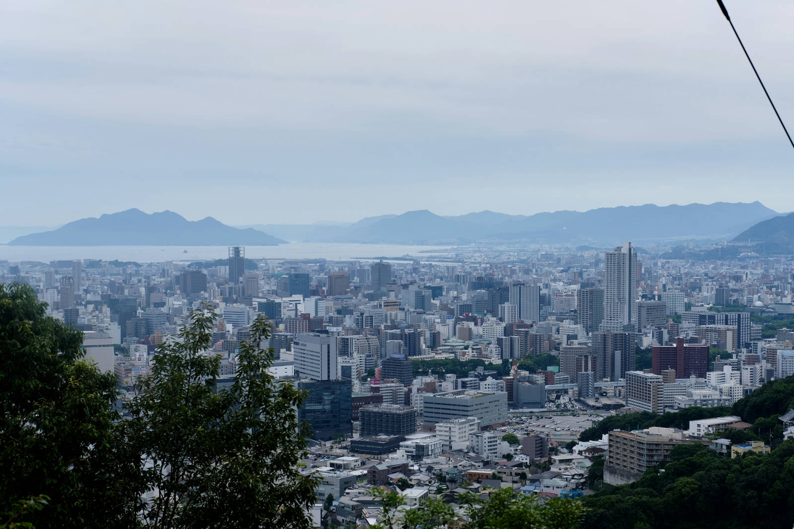 Auf dem Festland angekommen landet man direkt in Kure, noch mehr Industrie, noch mehr Militär ... so viel zum Thema 'Frieden'. Zwischen Kure und Hiroshima liegt leider auch noch ein recht fieser Berg und die Route, die ich mir rausgesucht hatte, hat mich dann auch direkt in ein Wohngebiet geführt, dass schon eher Italienische Bergdorfverhältnisse hatte was die Straßen anging. Kurz vor der Straße, die auf den Berg rauf ging, hat mich dann eine Einheische abgefangen, die mich unterwegs per Roller überholt hatte. Trotz diverser Kommunikationsschwierigkeiten, konnte sie mir dann doch vermitteln, dass da hochzufahren eine recht dämliche Idee sei. Sie hat dann auch direkt ihr schniekes Rennrad aus dem Schuppen geholt und mit zu einer Straße gebracht, die zwar doppelt so lang, aber auch nur halb so steil war. Von oben hab ich dann meine eigentlich angedachte Route gesehen ... wäre echt ne dämliche Idee gewesen da hochzufahren.