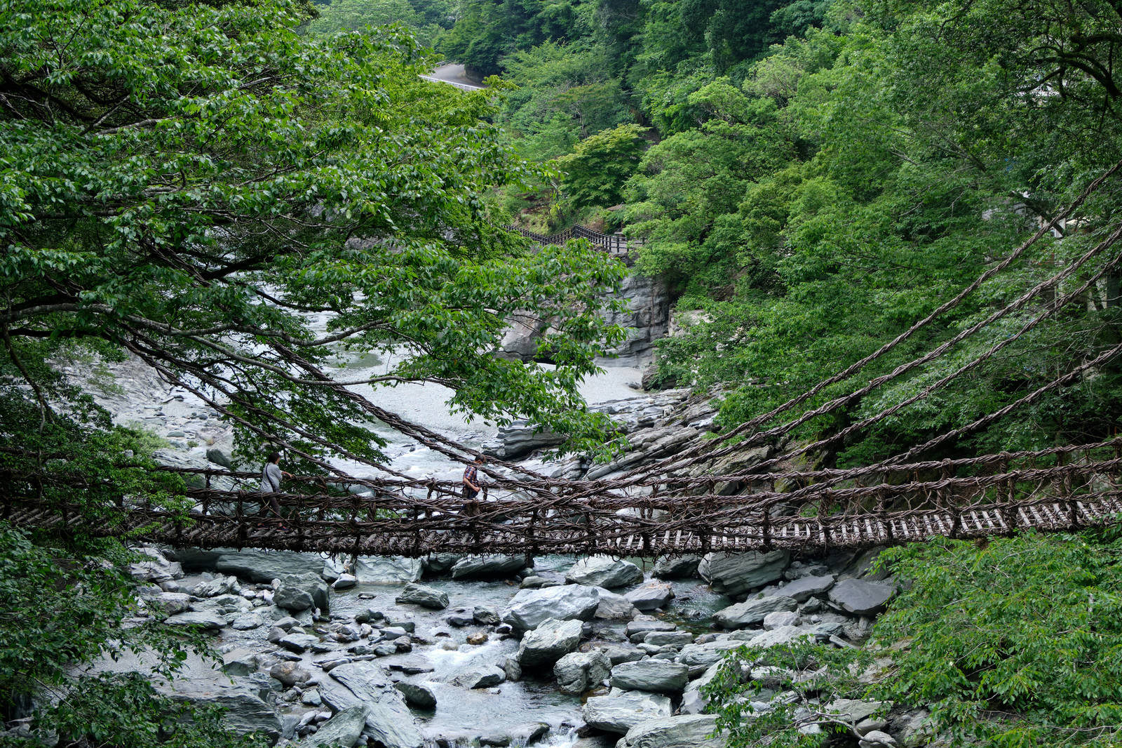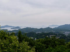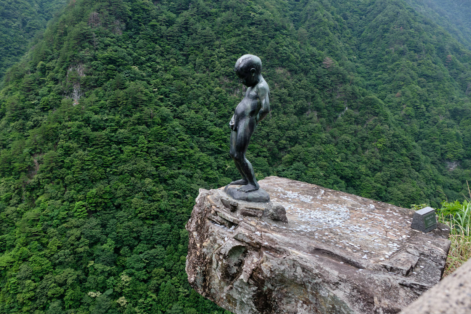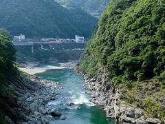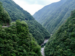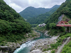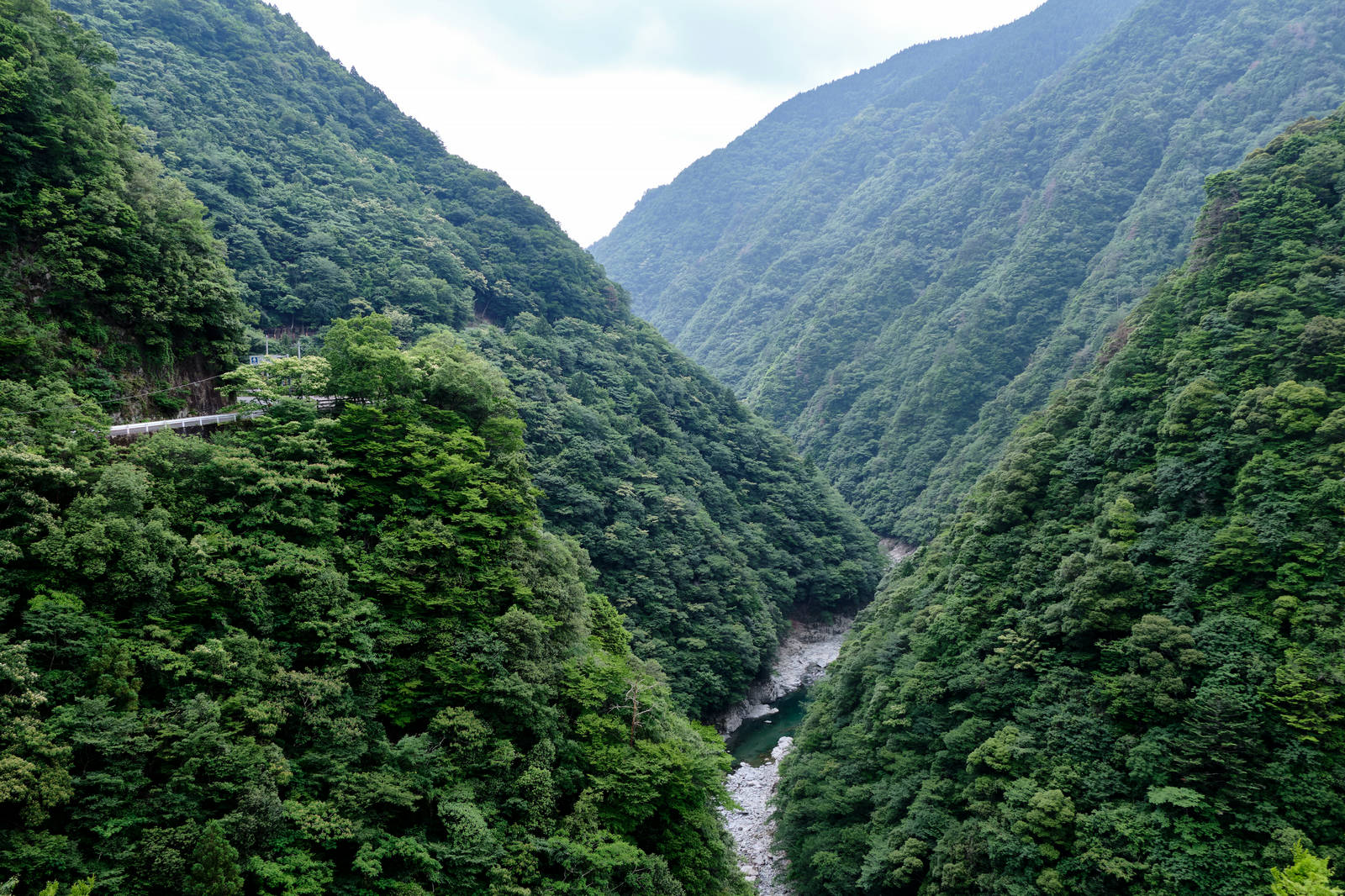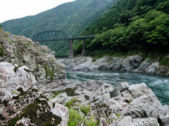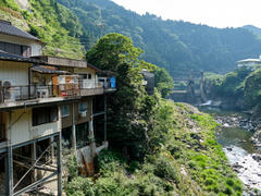 Mein nächstes Ziel war das Oboke Tal, ein abgelegenes Tal mit wunderschöner Natur im inneren von Shikoku. Zwischen mir und dem Tal lag allerdings noch ein Berg. Nachdem der Aufstieg auf der einen Seite sich als machbarer herausstelle als ich eigentlich gedacht hatte, musste ich dann oben feststellen, dass der Weg nach unten auf der anderen Seite per Rad definitiv nicht benutzbar war (nicht mal geschoben). Ich bin dann ca. anderthalb Stunden im Wald herumgeirrt bis ich einen brauchbaren Weg nach unten gefunden habe, im Endeffekt wäre es vermutlich sinnvoller (aber auch länger) gewesen direkt um den Berg herumzufahren. Da oben stößt man übrigens öfter mal auf Häuser und kleine Siedlungen die augenscheinlich auch noch bewohnt sind ... stell ich mir echt unpraktisch vor da zu leben, noch ordentliche Straße gab's da nämlich nicht. Als ich es dann fast zu meiner ursprünglich geplanten Route zurückgeschafft hatte, bin ich dann auf einen Polizisten getroffen, der sich mehrfach entschuldigte und mir dann auf seinem Handy ein Bild einer Straße zeigte, die sich offensichtlich nicht mehr an dem Ort befand, an dem sie ursprünglich gebaut worden war. Er hat mich dann auf den längsten und steilsten Weg außenrum geschickt der irgendwie möglich war. Ich bin dann recht spät und ziemlich fertig im Hotel angekommen. Da gab es immerhin ein Onsen im fünften Stock im Freien mit Ausblick, wo ich mich erstmal einweichen konnte. Da am nächsten Tag dann auch noch das Wetter schlecht war und es in der Umgebung nicht viel gab, bin ich da dann auch die meiste Zeit verbracht.