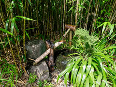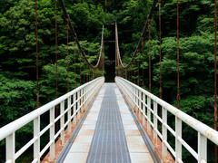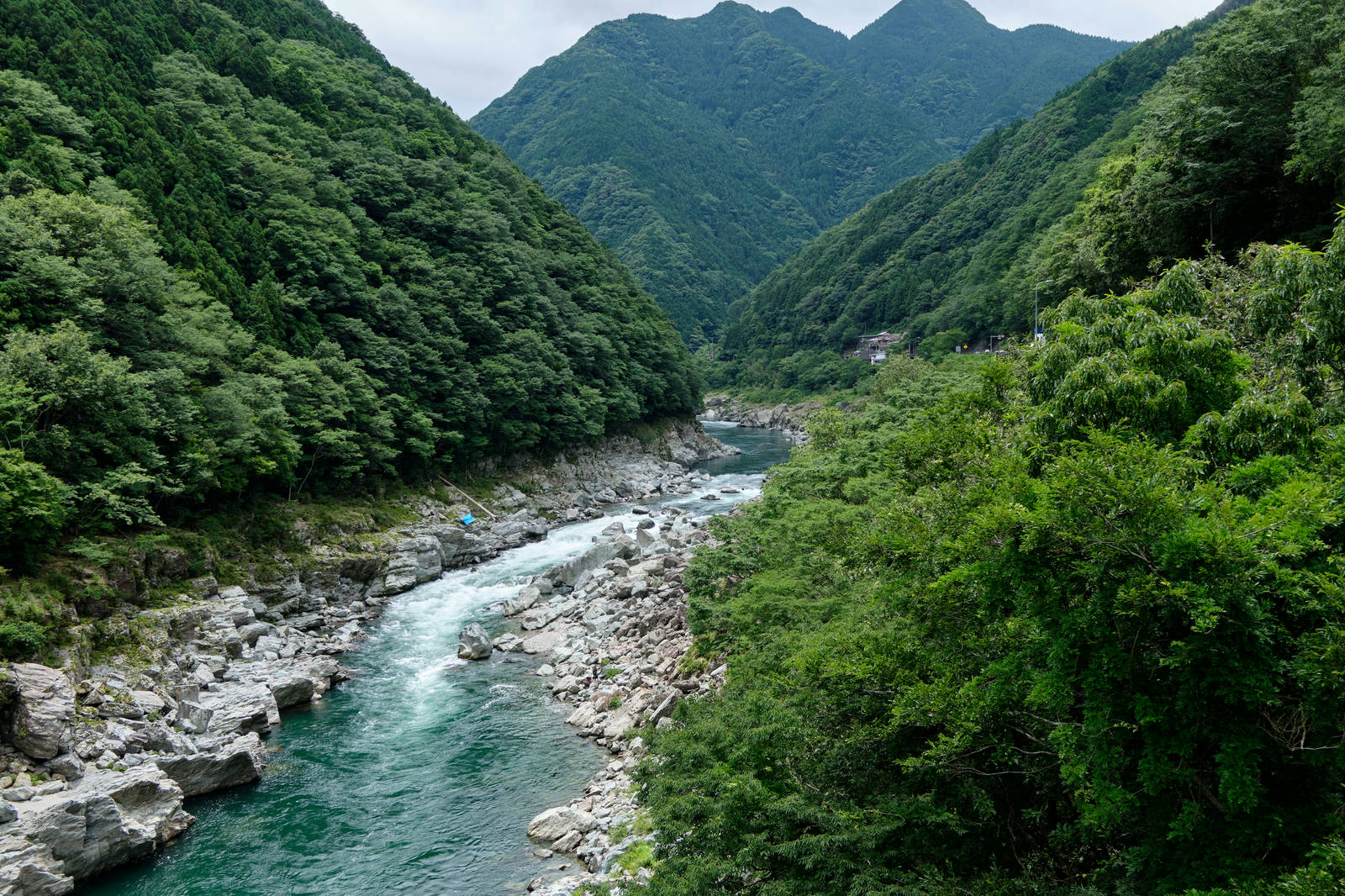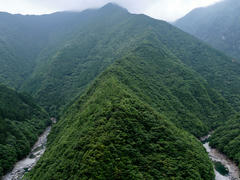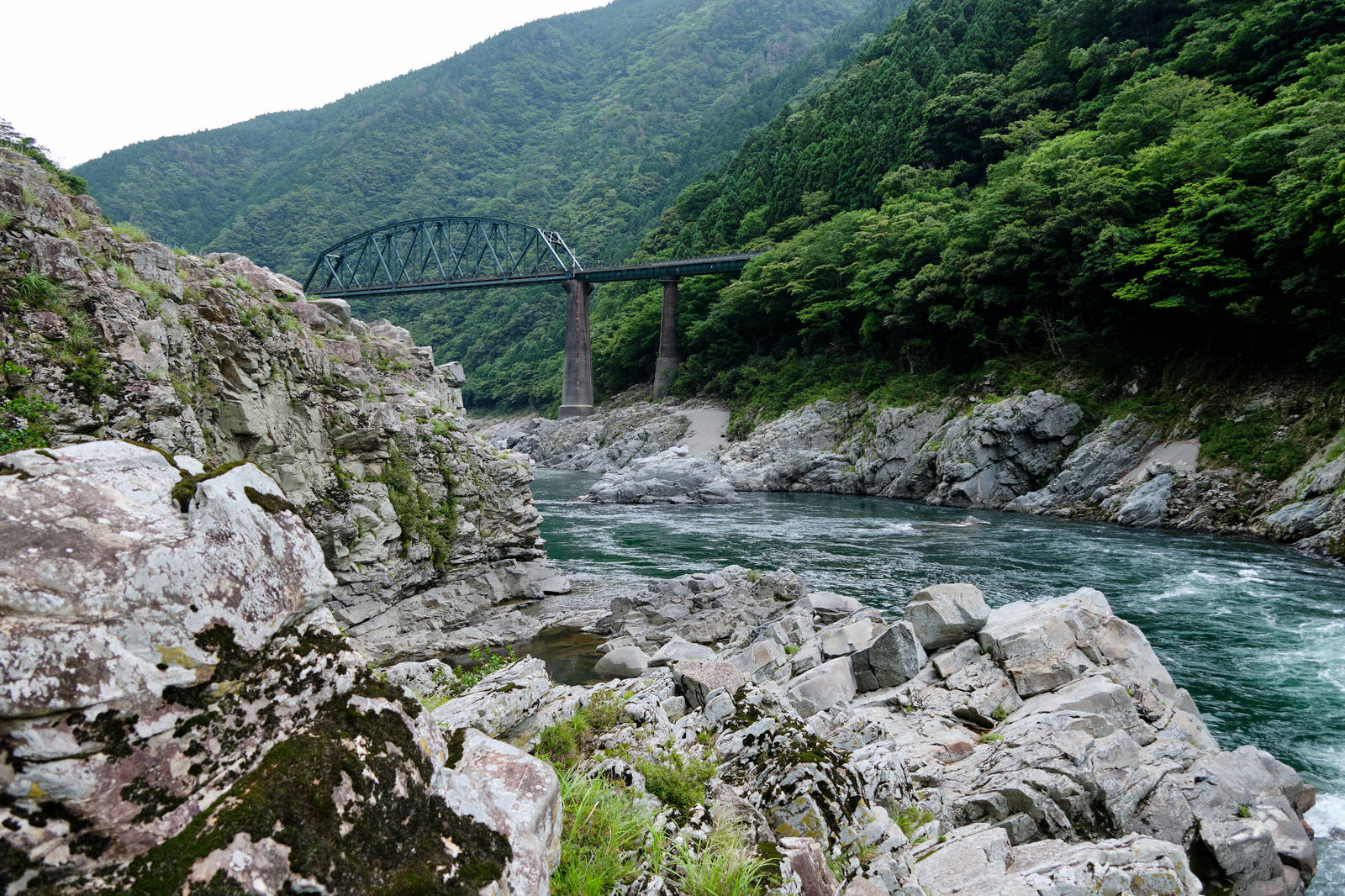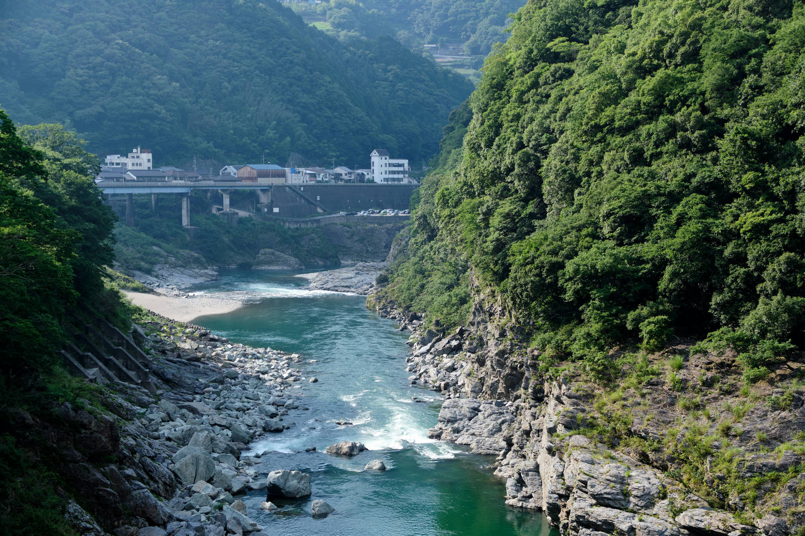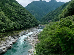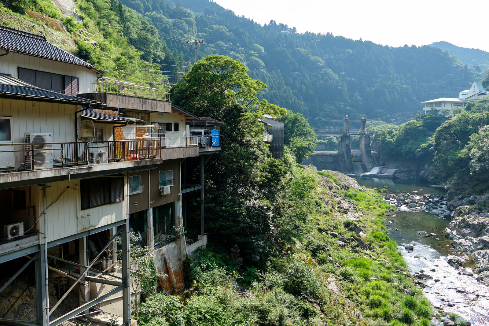Mein nächstes Ziel war das Oboke Tal, ein abgelegenes Tal mit wunderschöner Natur im inneren von Shikoku. Zwischen mir und dem Tal lag allerdings noch ein Berg. Nachdem der Aufstieg auf der einen Seite sich als machbarer herausstelle als ich eigentlich gedacht hatte, musste ich dann oben feststellen, dass der Weg nach unten auf der anderen Seite per Rad definitiv nicht benutzbar war (nicht mal geschoben). Ich bin dann ca. anderthalb Stunden im Wald herumgeirrt bis ich einen brauchbaren Weg nach unten gefunden habe, im Endeffekt wäre es vermutlich sinnvoller (aber auch länger) gewesen direkt um den Berg herumzufahren. Da oben stößt man übrigens öfter mal auf Häuser und kleine Siedlungen die augenscheinlich auch noch bewohnt sind ... stell ich mir echt unpraktisch vor da zu leben, noch ordentliche Straße gab's da nämlich nicht. Als ich es dann fast zu meiner ursprünglich geplanten Route zurückgeschafft hatte, bin ich dann auf einen Polizisten getroffen, der sich mehrfach entschuldigte und mir dann auf seinem Handy ein Bild einer Straße zeigte, die sich offensichtlich nicht mehr an dem Ort befand, an dem sie ursprünglich gebaut worden war. Er hat mich dann auf den längsten und steilsten Weg außenrum geschickt der irgendwie möglich war. Ich bin dann recht spät und ziemlich fertig im Hotel angekommen. Da gab es immerhin ein Onsen im fünften Stock im Freien mit Ausblick, wo ich mich erstmal einweichen konnte. Da am nächsten Tag dann auch noch das Wetter schlecht war und es in der Umgebung nicht viel gab, bin ich da dann auch die meiste Zeit verbracht.