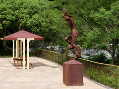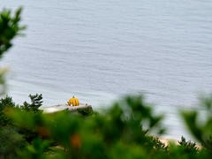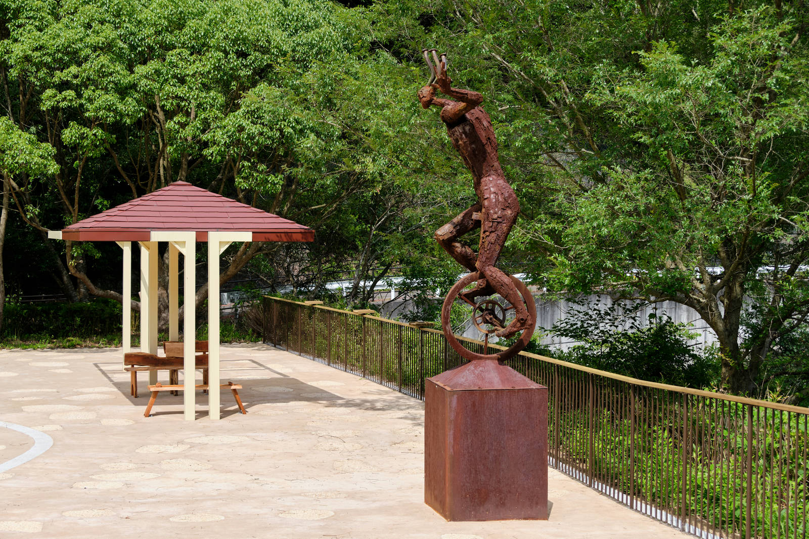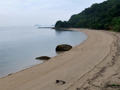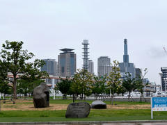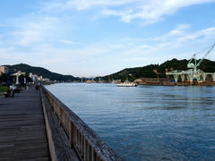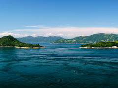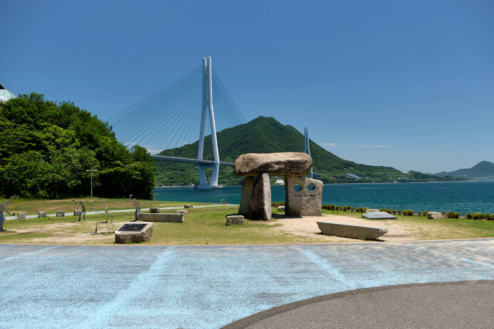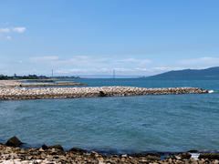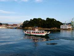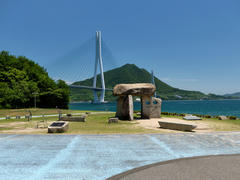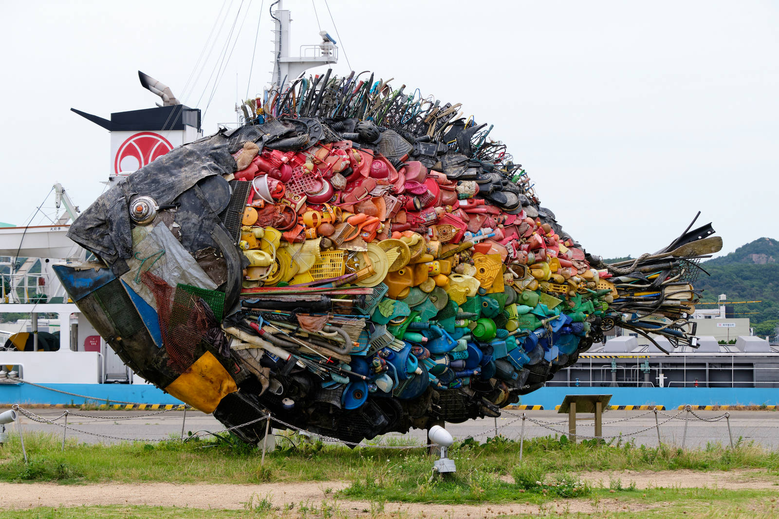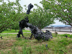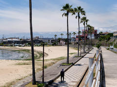 Nach einer eher unspektakulären Etappe an der Küste entlang bin ich dann in Takamatsu gelandet, von dort aus geht es wieder auf die Hauptinsel Honshu zurück. Allerdings per Fähre, denn die Shimanami Kaido ist die einzige der drei Verbindungen die ohne Auto oder Zug funktioniert. Da es keine direkte Fährverbindung mehr gibt, hab ich noch einen Zwischenstopp auf Naoshima eingelegt. Eigentlich eine ganz idyllische kleine Insel, deren komplette Umrundung jedoch daran scheiterte, dass der Norden von Mitsubishi Chemical und der Süden von der Benesse Corporation beansprucht wird. Letztere hat auf der Insel diverse moderne Kunstinstallationen, ein Kunsthotel und Kunstmuseen installiert, was recht viele Touristen auf die Insel zieht. Dass der Kunstteil nicht per Fahrrad zugänglich ist, wurde mir von einer doch recht britisch wirkenden Dame (keine Ahnung ob das Teil der Kunstinstallation war) mitgeteilt, die mich dann auf einen "etwas steilen" Weg außenrum verwies – nochmal fall ich auf den Trick nicht rein. Im Hafen vom Tamano auf Honshu stand dann noch mehr Kunst rum.