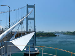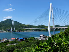 Apropos Shimanami Kaido, die war der eigentliche Grund warum ich in Onomichi pausiert habe. Das ist eine von drei Straßenverbindungen nach Shikoku die dort anfängt und über sechs kleinere Inseln und diverse Brücken führt. Das Besondere ist, dass da nach eine ca. 70km lange wunderschöne Radroute reindesigned wurde, die sauber markiert über gute, wenig befahrene Straßen führt und für die Brücken eigene Rampen und Fahrwege hat. Wirklich sehr entspannt zu fahren, sodass dann die weiteren 30km die ich auf Shikoku noch bis zum Hotel hatte auch kein Problem waren. Die verliefen zur Abwechslung mal über flaches Land das nicht durchgehend bebaut war, sondern ähnlich wie daheim aus kleineren Siedlungen mit Feldern und Feldwegen dazwischen bestand. Der Hotelturm stand dementsprechend in einem kleinen Dorf und wirkte doch etwas fehl am Platze. Das traf augenscheinlich wohl auch auf mich zu, denn das Personal an der Rezeption hat dann doch mal interessiert nachgefragt was mich in die Gegend verschlagen hat ... und dass in einem Businesshotel jemand fragen stellt, ist doch sehr ungewöhnlich. Immerhin gab's in der Nähe noch ein kleines Eisenbahnmuseum wo man unter anderem einen Baureihe 0 Shinkansen besichtigen kann.