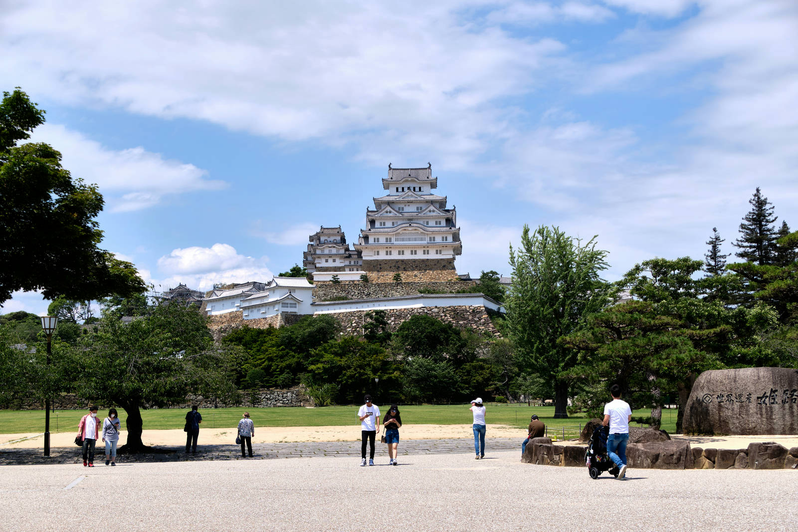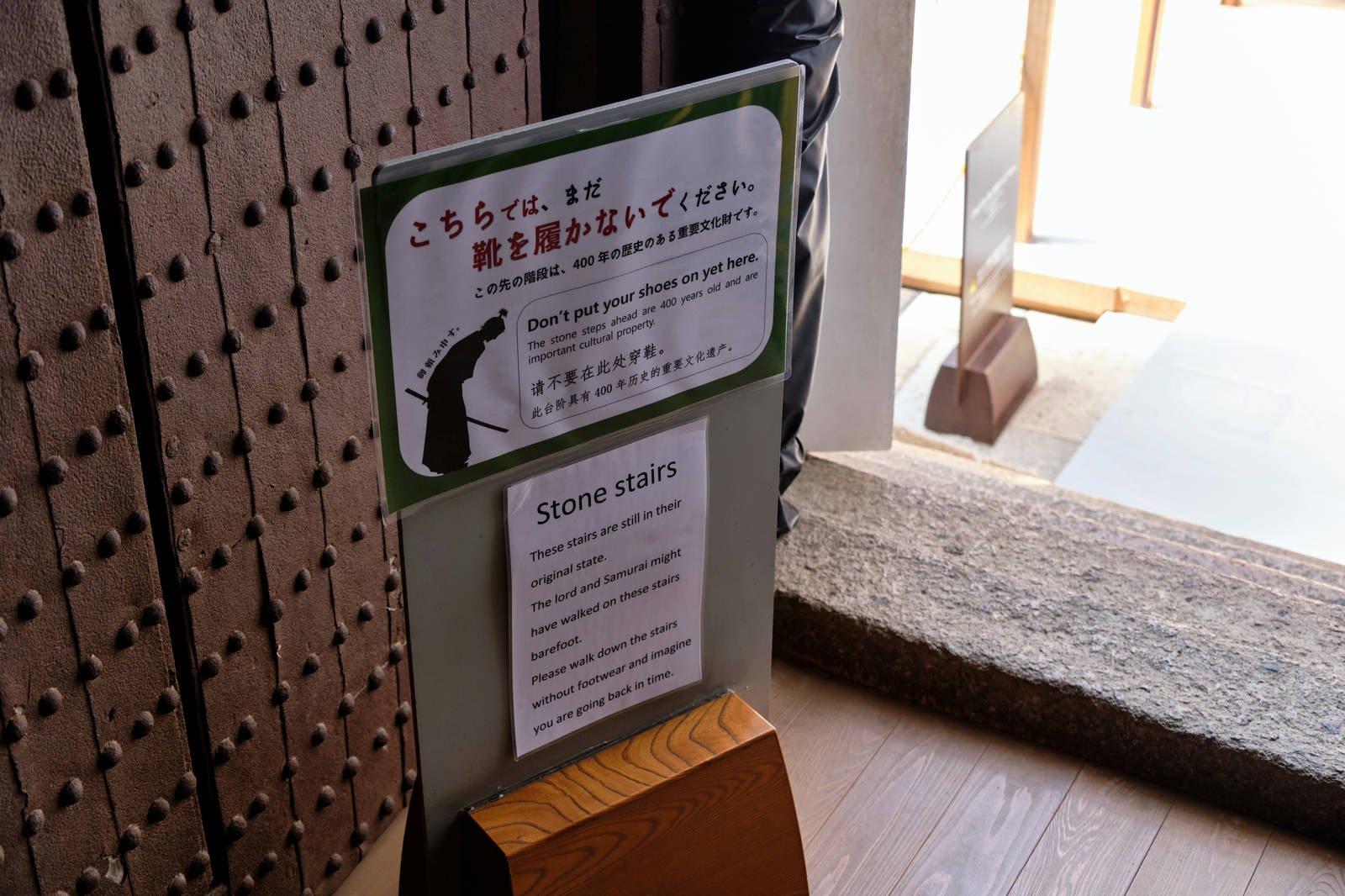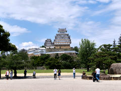 Nach einer etwas länglichen Tour durch weitere endlose Gewerbegebiete, kam dann Himeji. Hauptattraktion: Eine Burg. Das besondere an der ist aber, dass die nicht wie die meisten anderen irgendwann vor ein paar Jahrzehnten wiederaufgebaut worden ist, sondern original erhalten. Sie hat eine Bombardierung im zweiten Weltkrieg und mehrere Erdbeben überstanden und ist inzwischen UNESCO Weltkulturerbe. Ziemlich groß ist sie auch. Netterweise wird man am Eingang zum Gelände darauf hingewiesen, dass die Besichtigung ein Weilchen dauernd wird, es auf dem Gelände keine weiteren Getränkeautomaten gibt und es dringend Empfohlen wird nicht ohne Flüssigkeit loszuziehen. Und der Automat, der am Eingang stand, war dann noch hauptsächlich mit Wasser und Tee befüllt und deutlich günstiger als sonst – erschreckend sinnvoll. In der Burg heißt es dann Schuhe ausziehen um den Holzboden zu schützen, die trägt man dann in einer Tüte mit sich herum ... macht die steilen Holztreppen auch gleich viel spannender. Im Gegensatz zu Hiroshima – das mir in Nachhinein doch etwas ranzig vorkommt – hat man sich in Himeji etwas mehr bemüht die Stadt um die Hauptattraktion herum etwas hübsch zu gestalten. Offenen Sichtachsen in modern mit viel Grün, schön gestaltete Parks, Weltkriegsdenkmal, großer japanischer und botanischer Garten. Wirkt alles sehr freundlich und aufgeräumt.