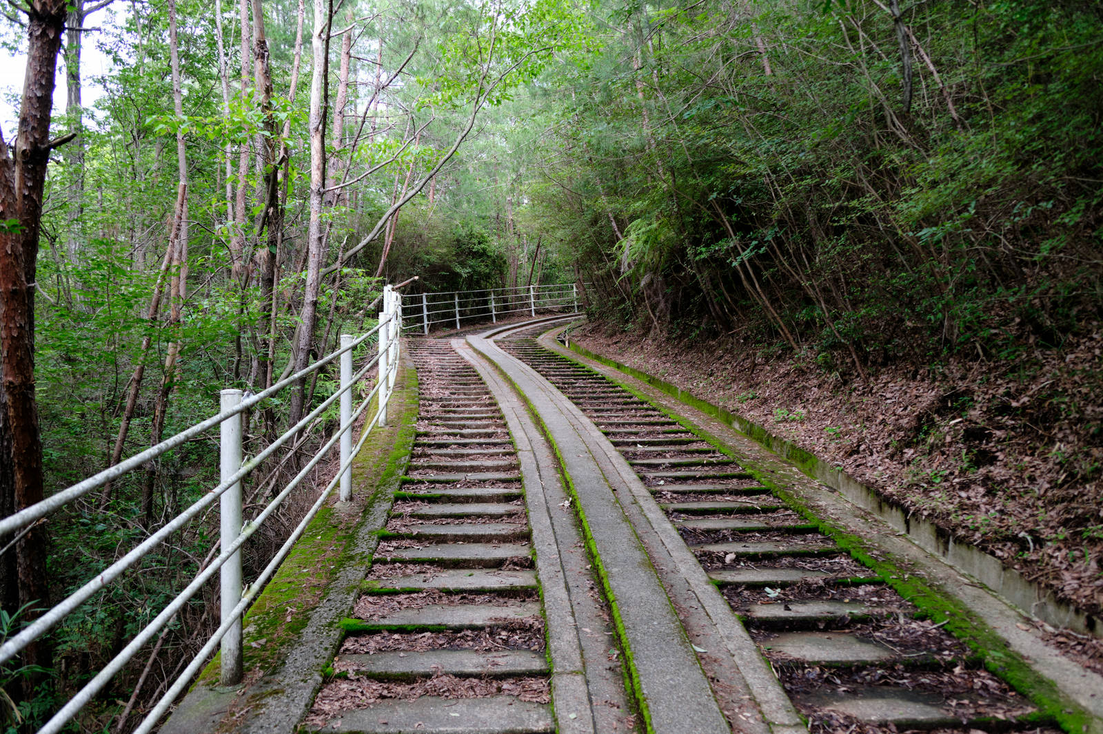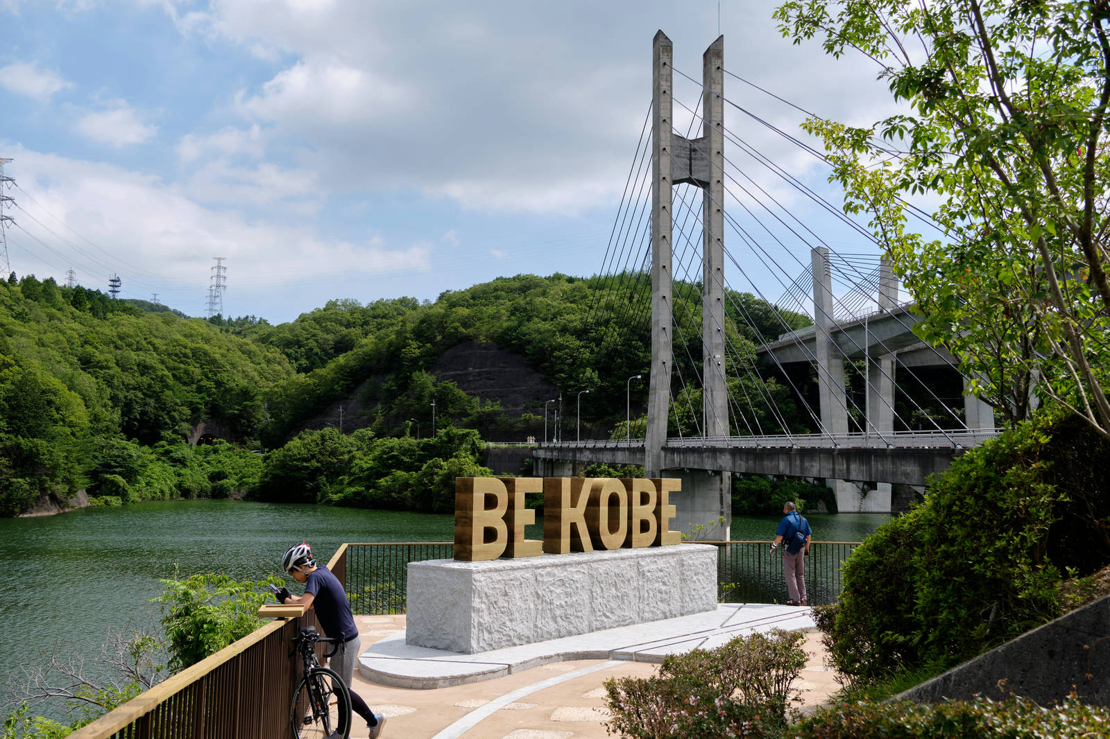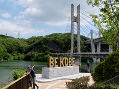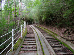 Weil der direkte Weg zwischen Himeji und Kobe etwas kurz war, habe ich kurzerhand einen kleinen Bogen über zwei ausgewiesene Radrouten gemacht die in der Nähe waren. Die erste davon war ein ziemlicher Reinfall, ewig lang über holprige Bürgersteige am Shinkansen-Viadukt entlang, weder sonderlich ansehnlich noch angenehm zu fahren. Dafür hat die Zweite dann wieder entlohnt: Fluss, Wald, Berge, alles dabei. Eigener Weg, weit weg von den Straßen, ein Stück sogar über eine ansonsten stillgelegte Landstraße ... nur der längliche Treppenabschnitt zwischendrin hat mich etwas irritiert.
