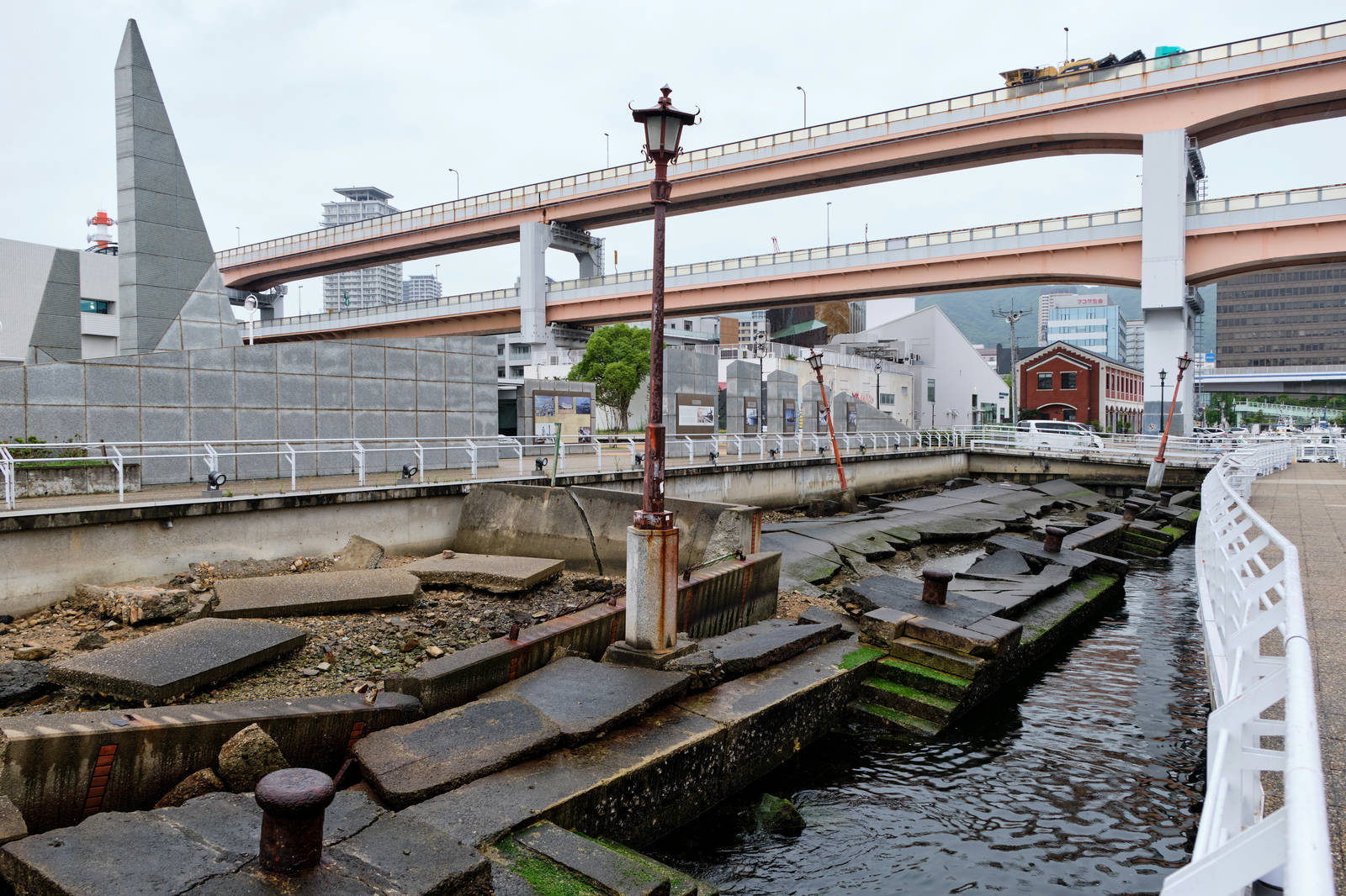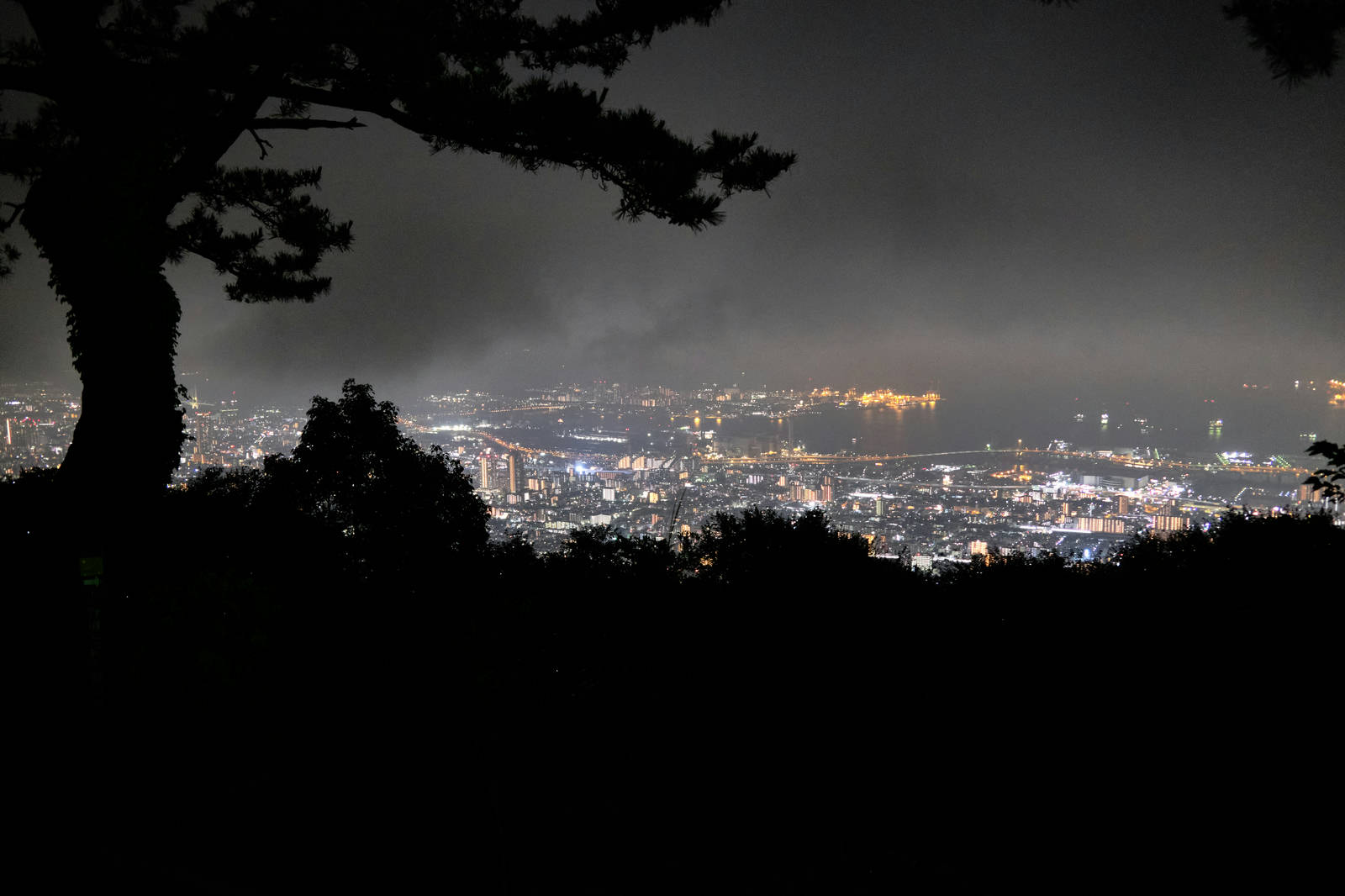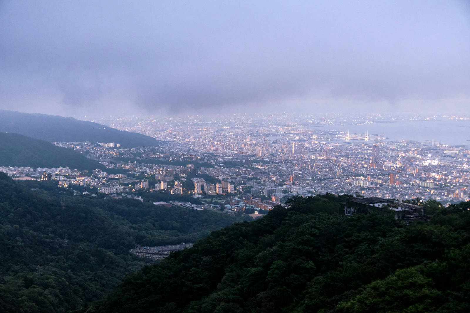 Durch die geografische Lage, eingeklemmt zwischen Bergen und Meer, ist die Stadt sehr lang und schmal. Vor der Küste hat man deswegen, wie so oft, diverse künstliche Inseln aufgeschüttet (Auf einer von denen liegt auch der Flughafen). In den Bergen gibt es dafür noch recht unberührte Natur und heiße Quellen. Dort kann man auch den '10 Millionen Dollar Nachtblick' genießen – benannt nach den Kosten die die Beleuchtung der von dort sichtbaren Städte Kobe und Osaka verursacht. Hoch kommt man mit einer Kombination aus Funicular und Seilbahn. An der Mittelstation war der Blick auch noch ganz okay ... der Gipfel lag dann komplett in einer Wolke ... auch ganz witzige Erfahrung, aber der Blick war sein Geld nicht wirklich wert.