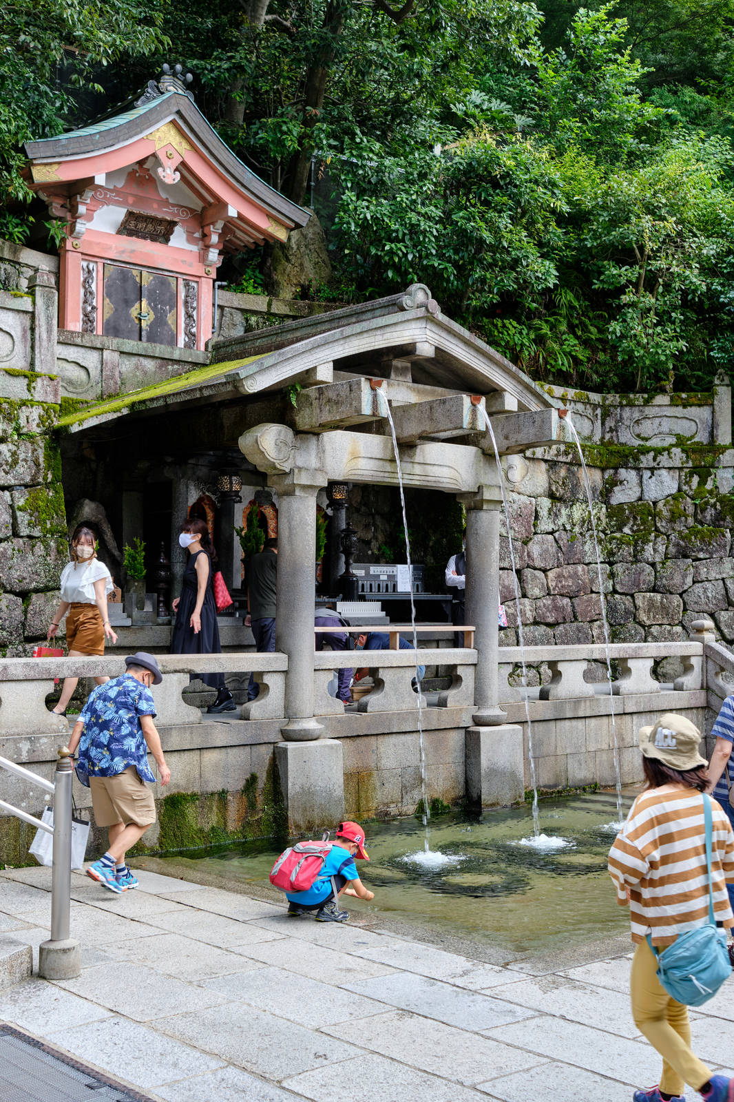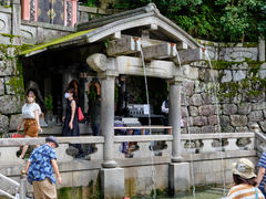 Der Kiyomizu Tempel mit berühmten Holzbalkon, der ist Weltkulturerbe und deswegen vermutlich wieder zum Renovieren eingepackt ... Immerhin einen guten Blick auf die Stadt hat man von dort aus, das liegt unter anderem daran, dass der Tempel die umliegenden Grundstücke aufgekauft hat um zu verhindern, dass Hochhäuser gebaut werden. Auf dem Tempelgelände befinden sich noch weitere kleinere Schreine, Restaurants und Souvenirläden, sodass das ganze doch etwas Freizeitparkatmosphäre hat. Außerdem kommt da noch eine Quelle mit sehr reinem Wasser (daher der Name) aus dem Berg, die ist in drei Ströme aufgeteilt an denen man sich jeweils Gesundheit, Langlebigkeit oder Weisheit antrinken kann (man sollte sich aber nur für zwei entscheiden, alle drei zusammen bringen Unglück).