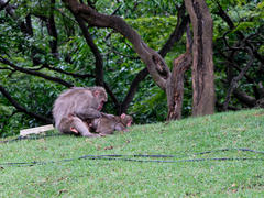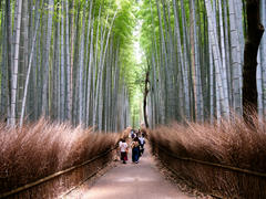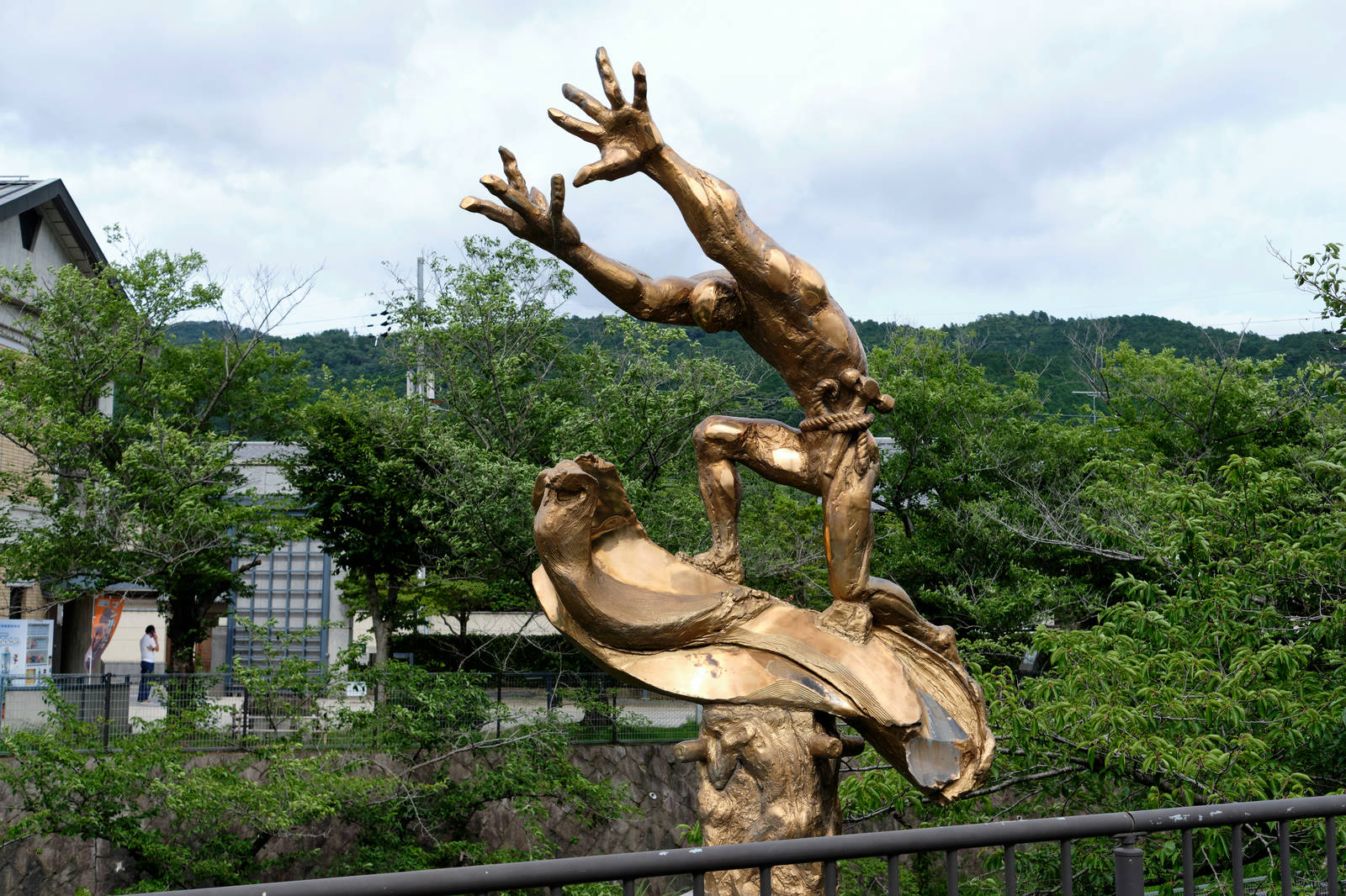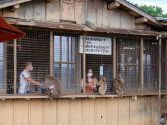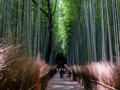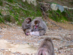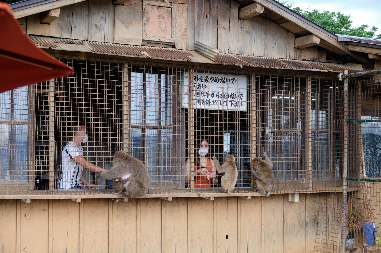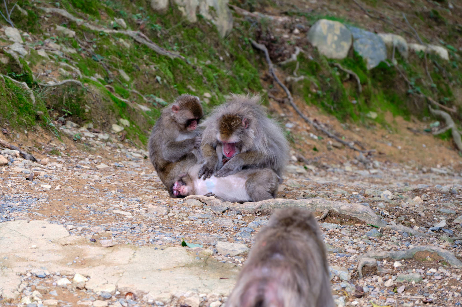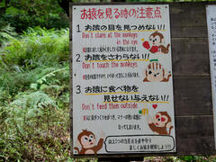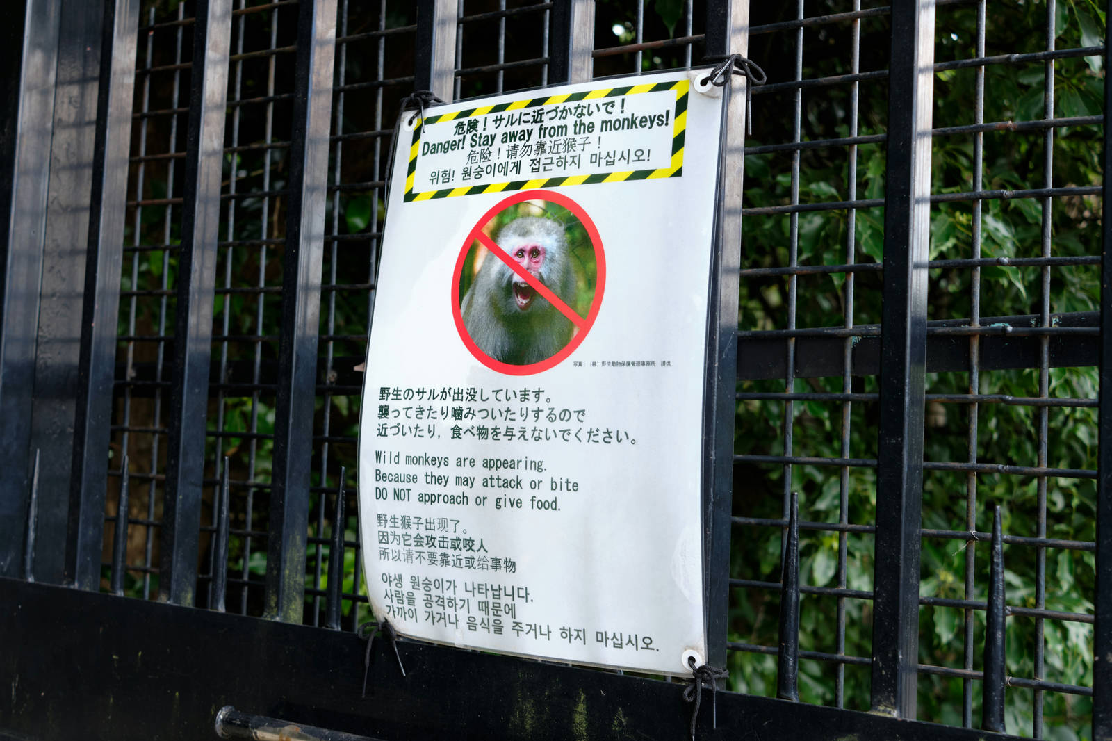 Am westlichen Rand liegt der Arashiyama, das Gebiert um den Bergt ist zwar ein ganzes Stück von der Innenstadt entfernt, bei Touristen aber nicht minder beliebt. Zu sehen gibt's da ein paar nett angelegte Gärten und Parks, was die Leute aber in Scharen anzieht sind die paar Reststücke von natürlichem Bambuswald durch die man spazieren und, viel wichtiger, Fotos machen kann. Ich kann mich wohl echt glücklich Schätzen diesen Ort mit so wenig Leuten gesehen zu haben. Auf dem eigentlichen Berg kann man dann auch die Affen beobachten, die überall anders mit den Warnschildern beworben werden. Die sind da oben zwar auch mehr oder weniger einfach in freier Natur, haben wegen dem reichhaltigen Futterangebot aber vermutlich wenig Intention wo anders hinzugehen. Wer will kann auch selbst füttern, dazu muss man sich aber in einen Käfig sperren lassen ... irgendwie seltsam diese Menschen.