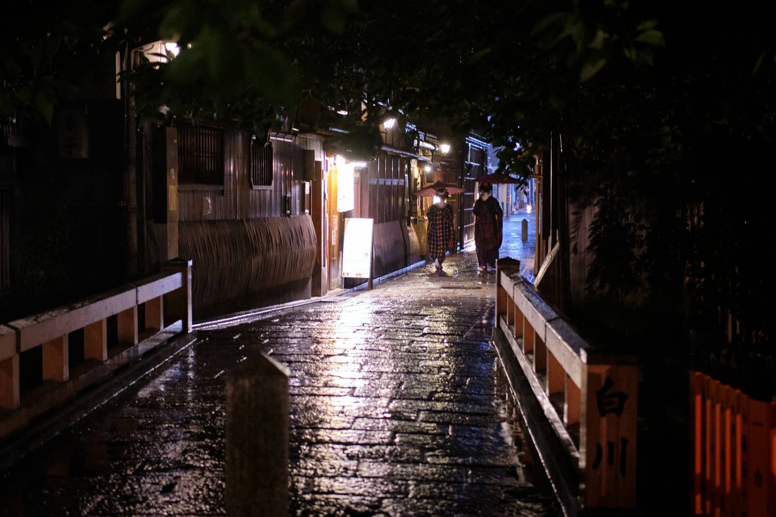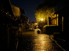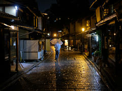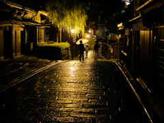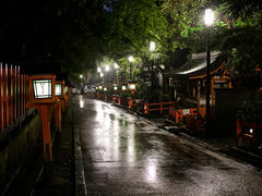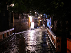 Kyoto ist als ehemalige Hauptstadt vollgestopft mit allerlei historischem Krimskrams. Mein Hostel lag im Bezirk Higashiyama wo es einige historische Straßenzüge gibt. Die sehen zwar schick aus, die Häuser sind aber durchgehend mit Fressbuden und Souvenirläden belegt. Etwas weiter landet man dann in Gion, dem ebenfalls historischen Geisha Distrikt, wo sich der betuchte Geschäftsleut bis heute in traditioneller Manier betüddeln lassen kann. Interessanterweise ist das ganze recht eng mit dem modernen Äquivalent verwachsen, einmal falsch (oder richtig) abgebogen und man findet sich zwischen Neonreklamen für Bars und Hostessenclubs wieder.