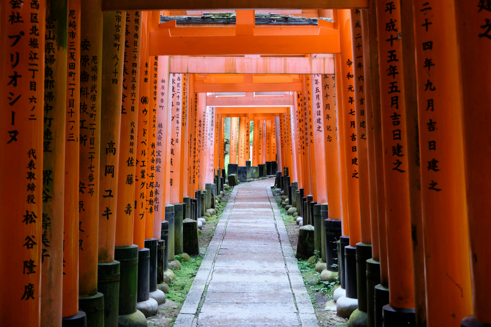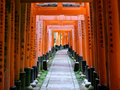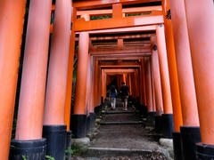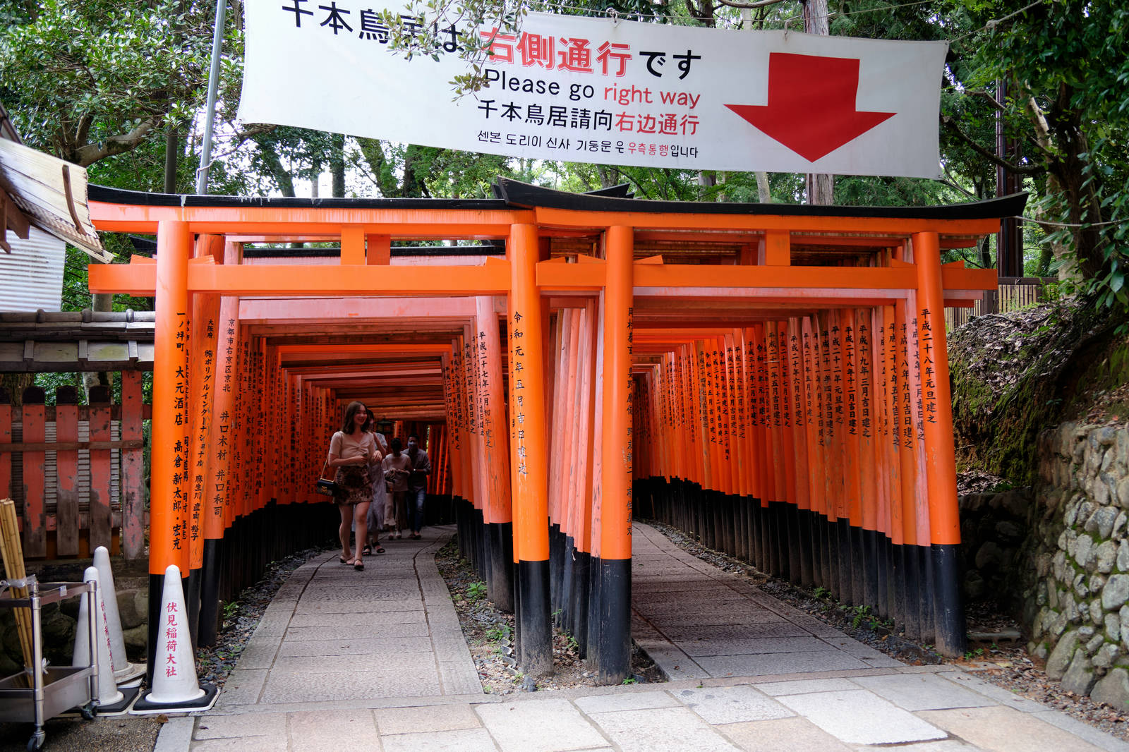 Etwas besinnlicher ist er Fushimi Inari Schrein. Dessen Gelände umfasst einen kompletten Berg auf dem viele kleinere Schreine verstreut liegen. Das besondere daran sind die knapp 4 Kilometer Wanderpfade die durchgehend von roten Torii umschlossen sind und seit langem von Firmen und Privatleuten für bereits in Erfüllung gegangene und noch offene Wünsche gespendet werden. Hat man die ersten paar hundert Meter die alle zum Selfie machen verwenden hinter sich, kann man sich auf gut zwei Stunden atmosphärische Wanderung ohne viel Verkehr freuen.