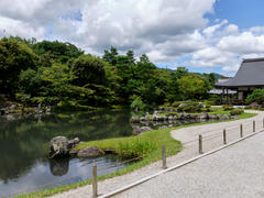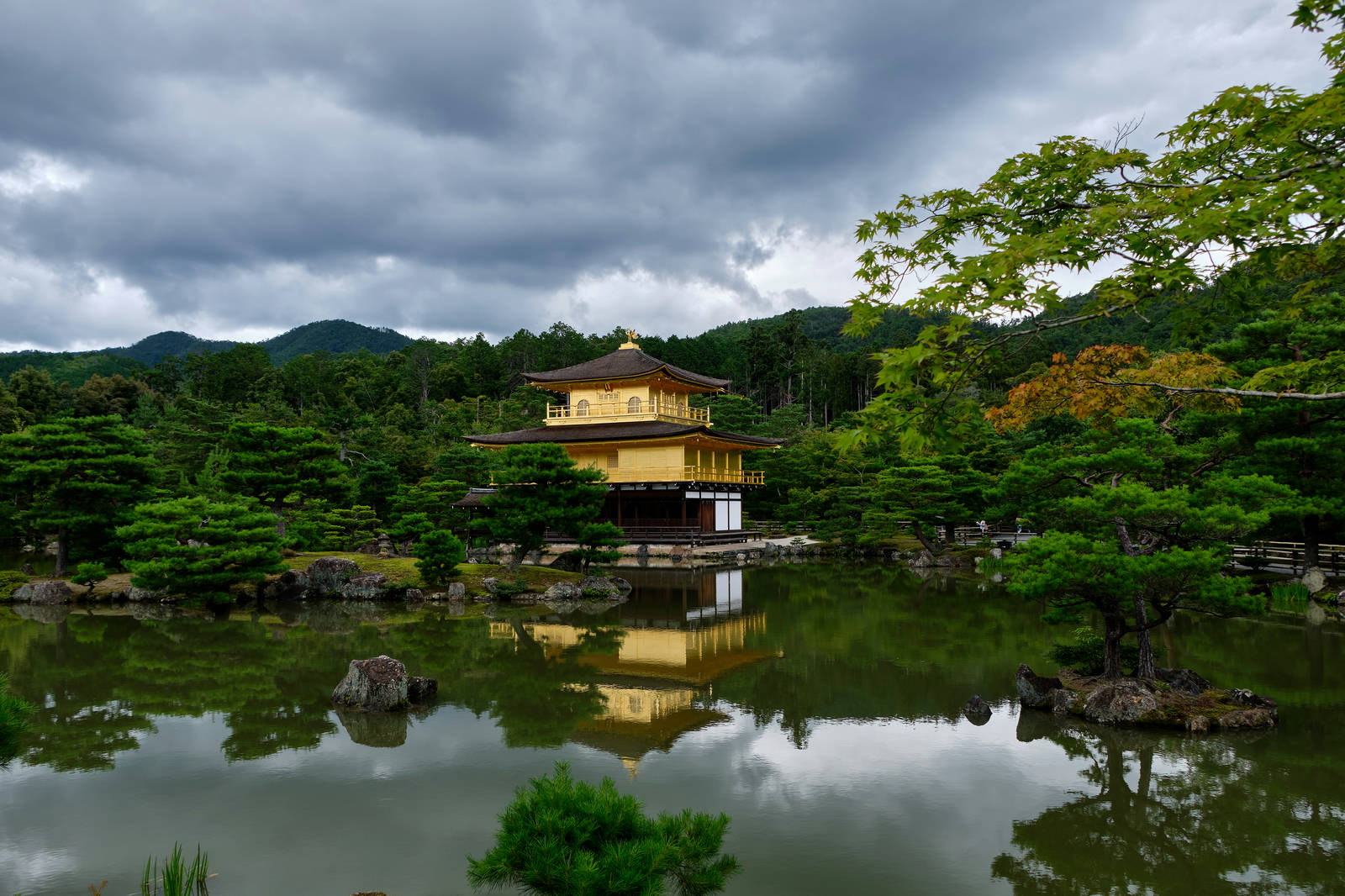 Im Norden der Stadt findet sich der Kinkaku-ji, der liegt in einem gut gepflegten japanischen Garten und ist ganz witzig anzuschauen weil er komplett mit Blattgold verkleidet ist und etwas surreal aus der Landschaft rausfällt.
