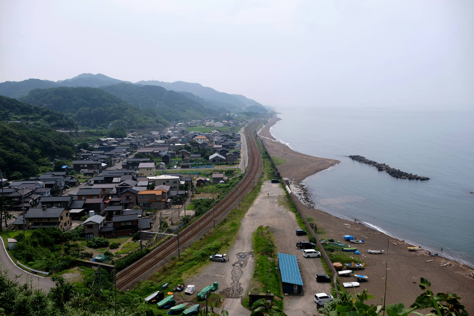 Nach einem weiteren sehr tunnelhaltigem Steilküstenabschnitt bin ich dann letztendlich in der Ebene um Niigata gelandet: Viel Landwirtschaft, etwas Industrie, alles eher etwas unansehnlich, passend dazu schlechtes Wetter ... Ich frag mich langsam wirklich ob die Landschaft das Wetter bedingt oder einfach nur meine Wahrnehmung jener steuert.