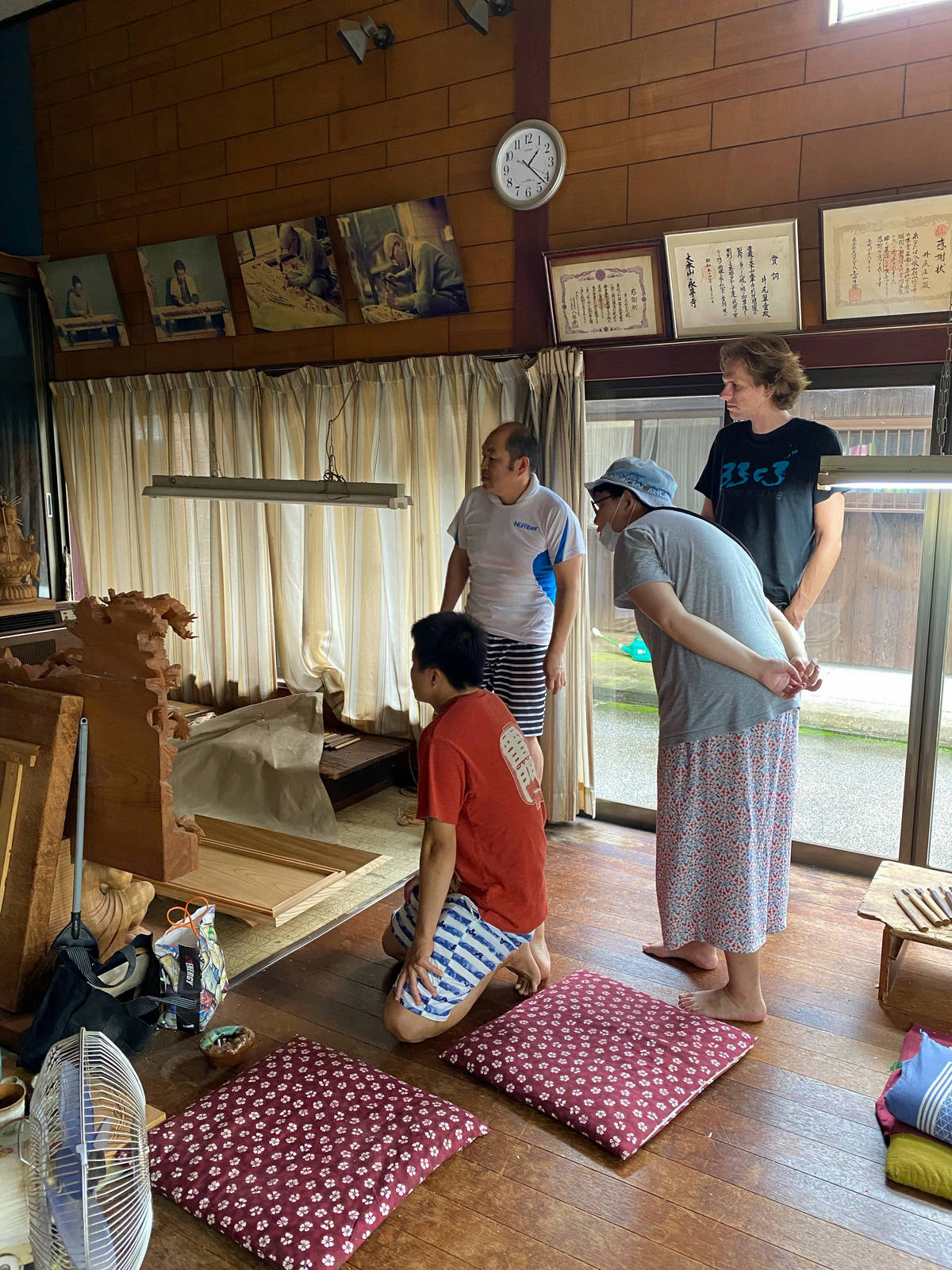 Am nächsten Tag tauchte dann noch ein Pärchen aus Taiwan auf, die Pandemiebedingt ihre Jobs in Osaka verloren hatten und nun per Auto durchs Land reisten. Mit denen ging es dann spontan noch eine lokalen Holzschnitzer besuchen (der entgegen seiner äußeren Erscheinung 1995 mal beim Iron Man angetreten war) und die umliegenden Täler und Tempel erkunden. Zurück im Hostel tauchte dann noch der Besitzer auf der auch schon viel in der Welt rumgekommen war und dementsprechnd gut Englisch sprach. Ich glaube ich hatte seit Fukuoka nicht mehr so viel Kommunikation wie in diesen zwei Tagen, und das einem einem der Orte wo ich am wenigsten damit gerechnet hätte ... leider bis jetzt die Ausnahme.