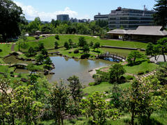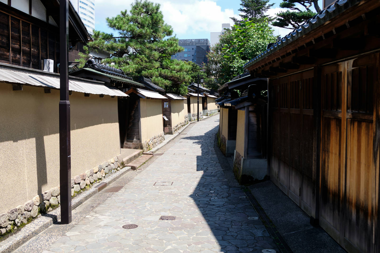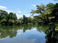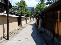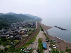 Weiter ging es dann landschaftlich netter, inhaltlich aber deutlich unspannender. Nach einer noch etwas feuchten Bergetappe folgte ein langer flacher Abschnitt bei bestem Wetter am Strand entlang. Allerdings hat mir dort ein Stück Golfplatz der Weg versperrt, mit dem daraus resultierenden Umweg hab ich dann mit gut 130 Kilometern meinen Tagesrekord gesprengt. Danach gab's immerhin ein Tag Pause in Kanazawa wo es neben der üblichen Burg einen wirklich sehr ansprechend angelegten Garten und ein paar alte Samuraivillen zu besichtigen gibt.