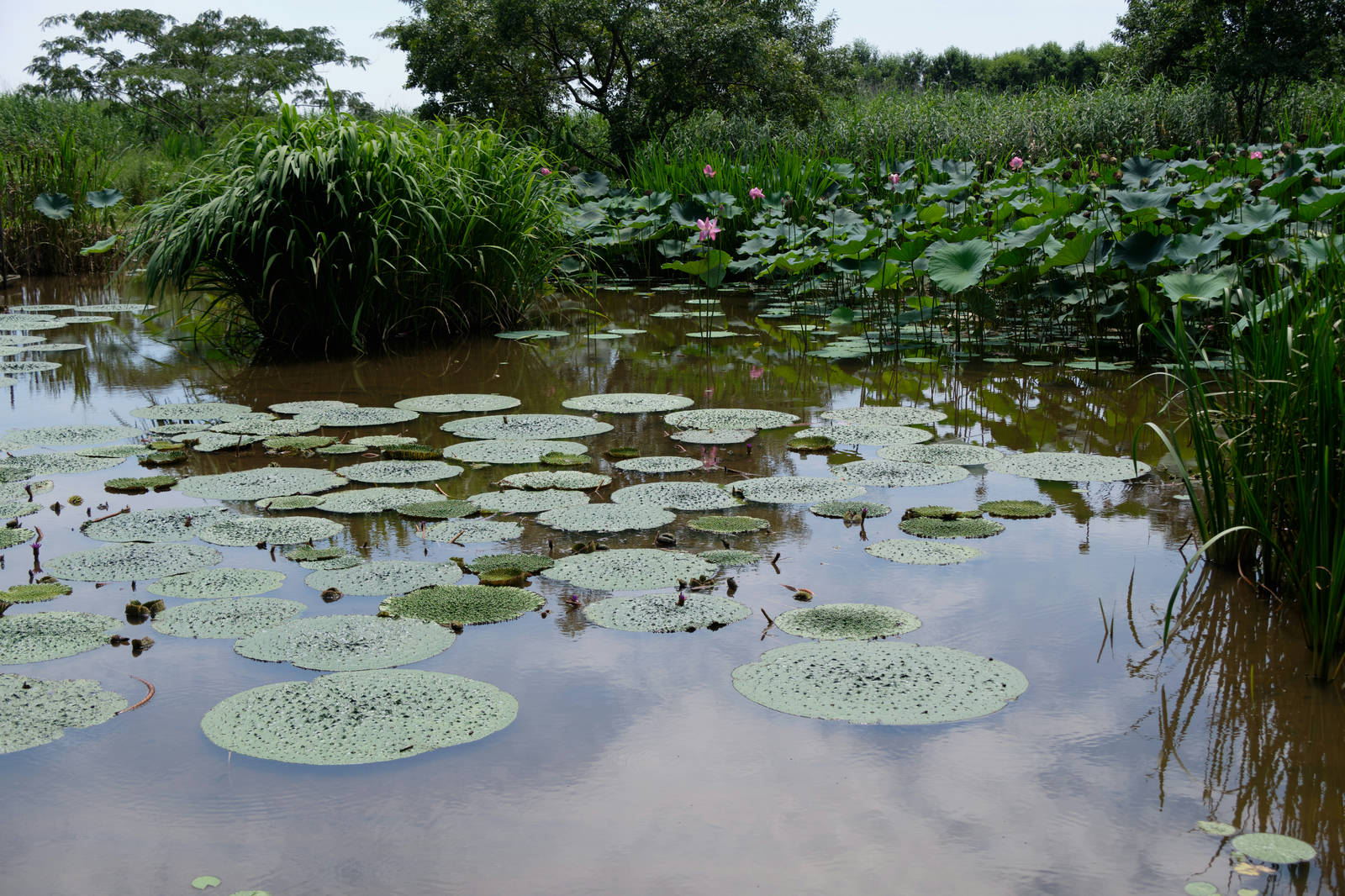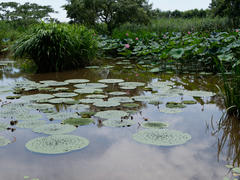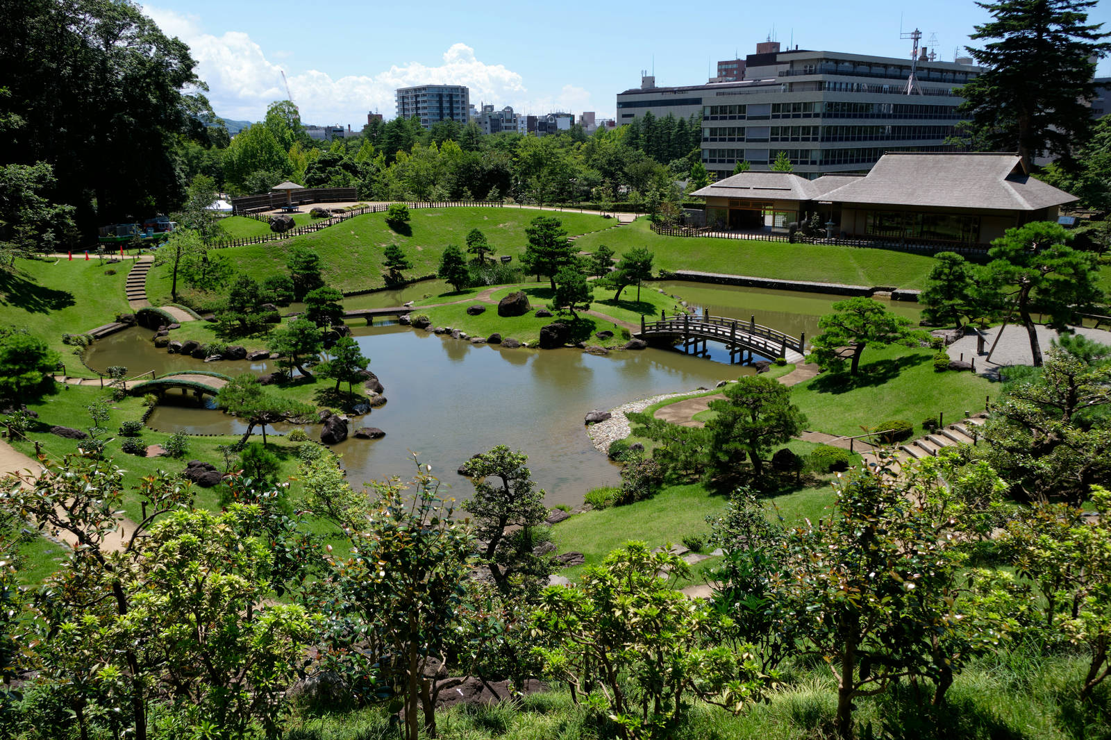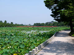 In Joetsu gibt es einen historischen Bezirk, dessen Besonderheit die, wegen des reichhaltigen Schneefalls im Winter (gefährlich niedrig) überdachten Gehwege sind. Der schien mir aber irgendwie komplett verlassen und vernachlässigt worden zu sein, und das nicht erst seit der Pandemie. Mein Hotel lag in dem Bezirk und stach nicht nur als hässlicher Betonturm besonders hervor, sondern war auch noch eine ziemliche Bruchbude, aber immerhin billig (und erstaunlicherweise immer noch recht sauber). Immerhin der angrenzende Park war deutlich besser gepflegt und hatte gerade Seerosensaison.