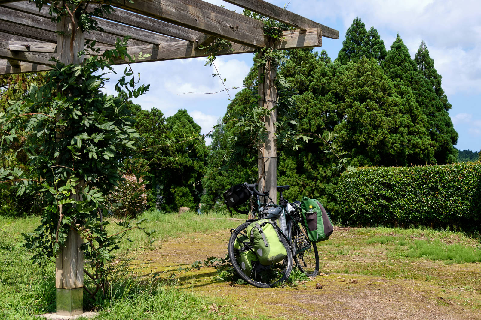 Der lag in einer kleinen Ortschaft wo es eigentlich außer einer Quelle mit, angeblich, besonders klarem Wasser nicht viel gibt. Überraschend war daher, dass ich im Hostel in perfektem Englisch begrüßt wurde. Dort arbeitete eine brasilianischstämmige Japanerin — Brasilianer sind ein der größeren Minderheiten in Japan — die einige Jahre in den USA und (natürlich) auch ein Jahr in Deutschland gelebt hatte. Weiterhin ein Japaner der große Teile des Hauses in Eigenarbeit liebevoll wieder hergerichtet hatte und neben dem selbst gefangenen Fisch auch hervorragend Pasta zubereiten konnte (besser als das meiste was ich bis jetzt in italienischen Restaurants in Deutschland bekommen habe). Er hatte auch in ungefähr die Tour die ich gerade mache in seiner Jugend mal mit Motorrad und Zelt absolviert.