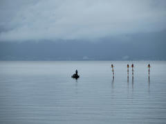 Der erste Tag hat mich bei bestem grauen Nieselwetter den See Biwa entlang geführt, der ist ein Stück größer als der Bodensee und soll wohl landschaftlich sehr schön sein ... zumindest sagt man das über das Westufer. Ich bin am Ostufer entlang, das fand ich irgendwie etwas dröge, kann aber auch am Wetter gelegen haben. Immerhin gab's nen durchgehenden Radweg, ging also wenigstens Zügig voran. Dummerweise war zum ersten Mal der Ort meines Hostels falsch auf des Buchungsseite angegeben, ich bin dadurch irgendwo in der Pampa gelandet wo's dann natürlich auch noch angefangen hat zu Schütten wie sonst was. Ich hab dann so lange unter einem kleinen Verschlag auf einem Friedhof ausgeharrt bis ich trocken genug war um mein Telefon wieder benutzen zu können (Touchscreens funktionieren einfach nicht in nass, da bringt's auch nix wenn das Telefon wasserfest ist) um meinen eigentlich Zielort ausfindig zu machen.
