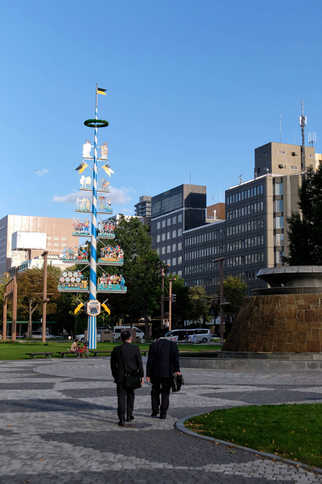 Sapporo wurde erst im 19ten Jahrhundert mehr oder weniger geplant als neue Hauptstadt Hokkaidos errichtet. Dementsprechend gibt es wenig historischen Krams und auch erfrischend wenig Schreintempel zu besichtigen. Berühmt ist hauptsächlich das jährlich stattfindende Schneefestival wo man im zentral gelegenen Odori Park diverse Schneeskulpturen bewundern kann, allerdings erst im Februar. In eben jenem Park steht auch aus irgend einem Grund ein Maibaum rum ... und ein Turm, hatte ich jetzt schon länger nicht mehr. Ansonsten gibt's noch ein Biermuseum der nach der Stadt benannten Biermarke, momentan aber nur mit vorheriger Reservierung per Telefon, für mich also nicht zugänglich.