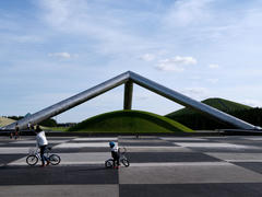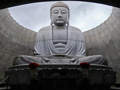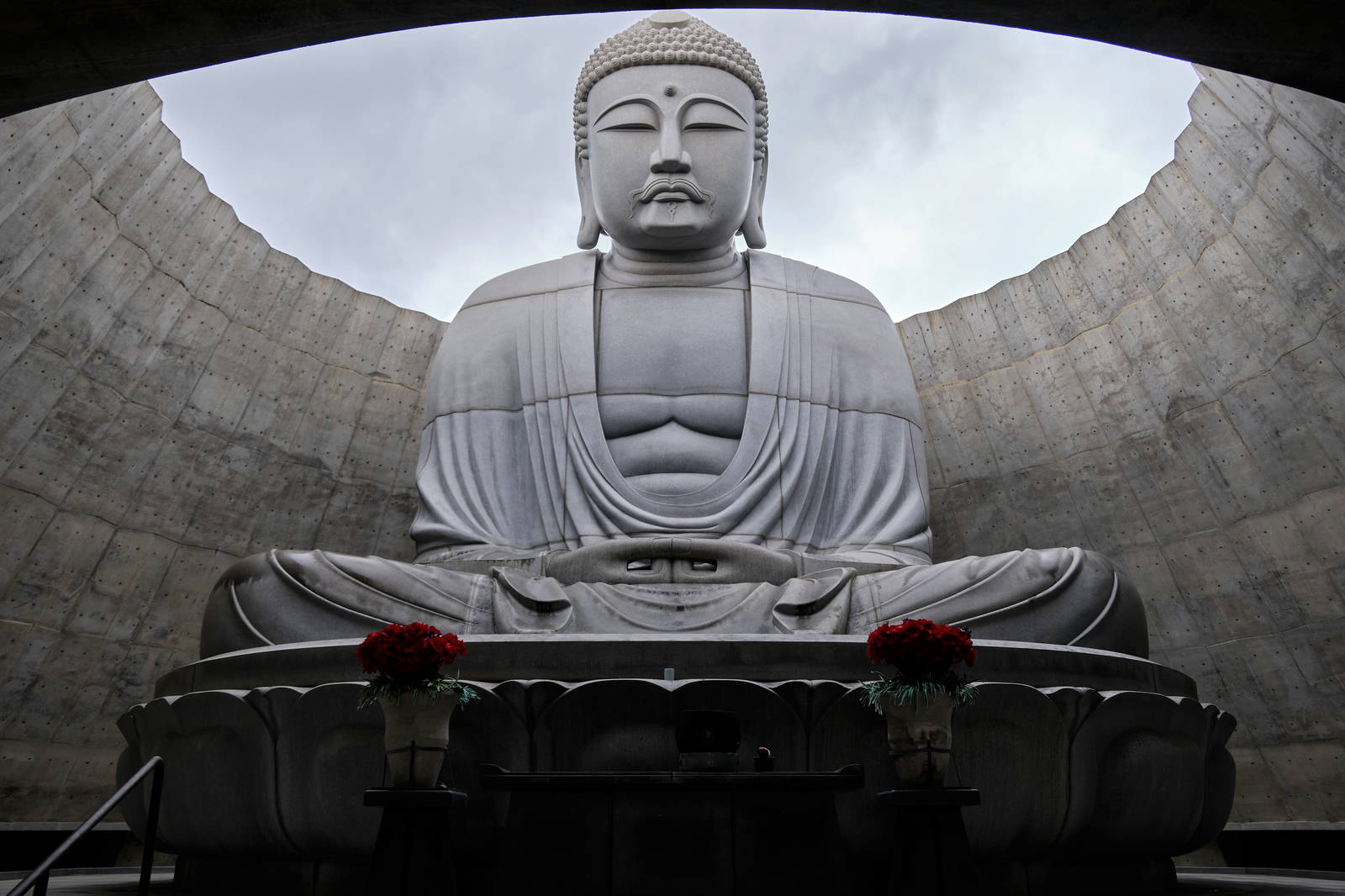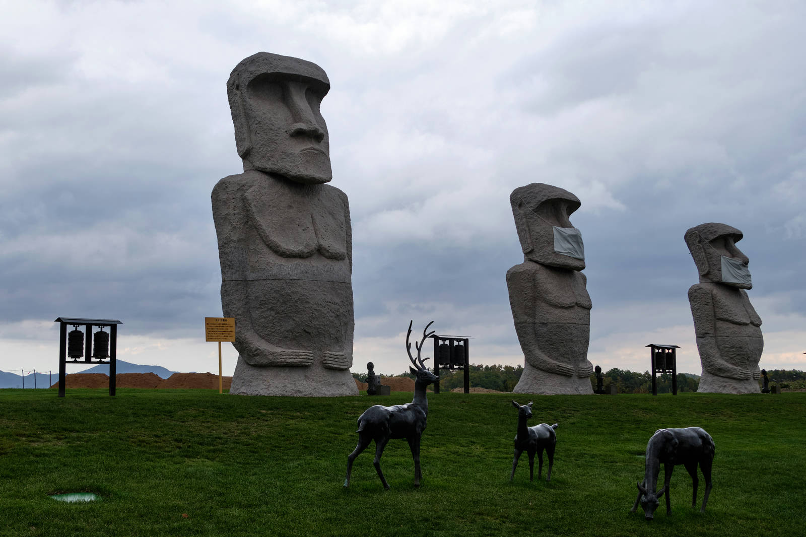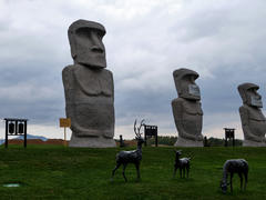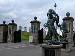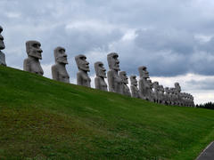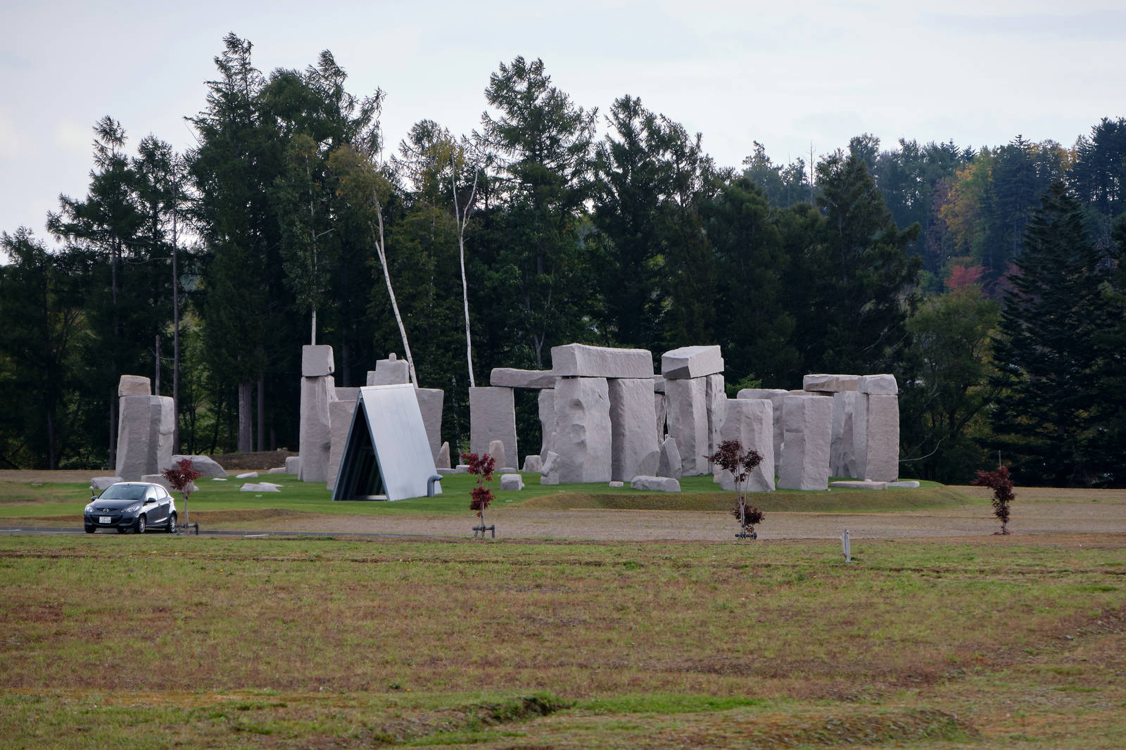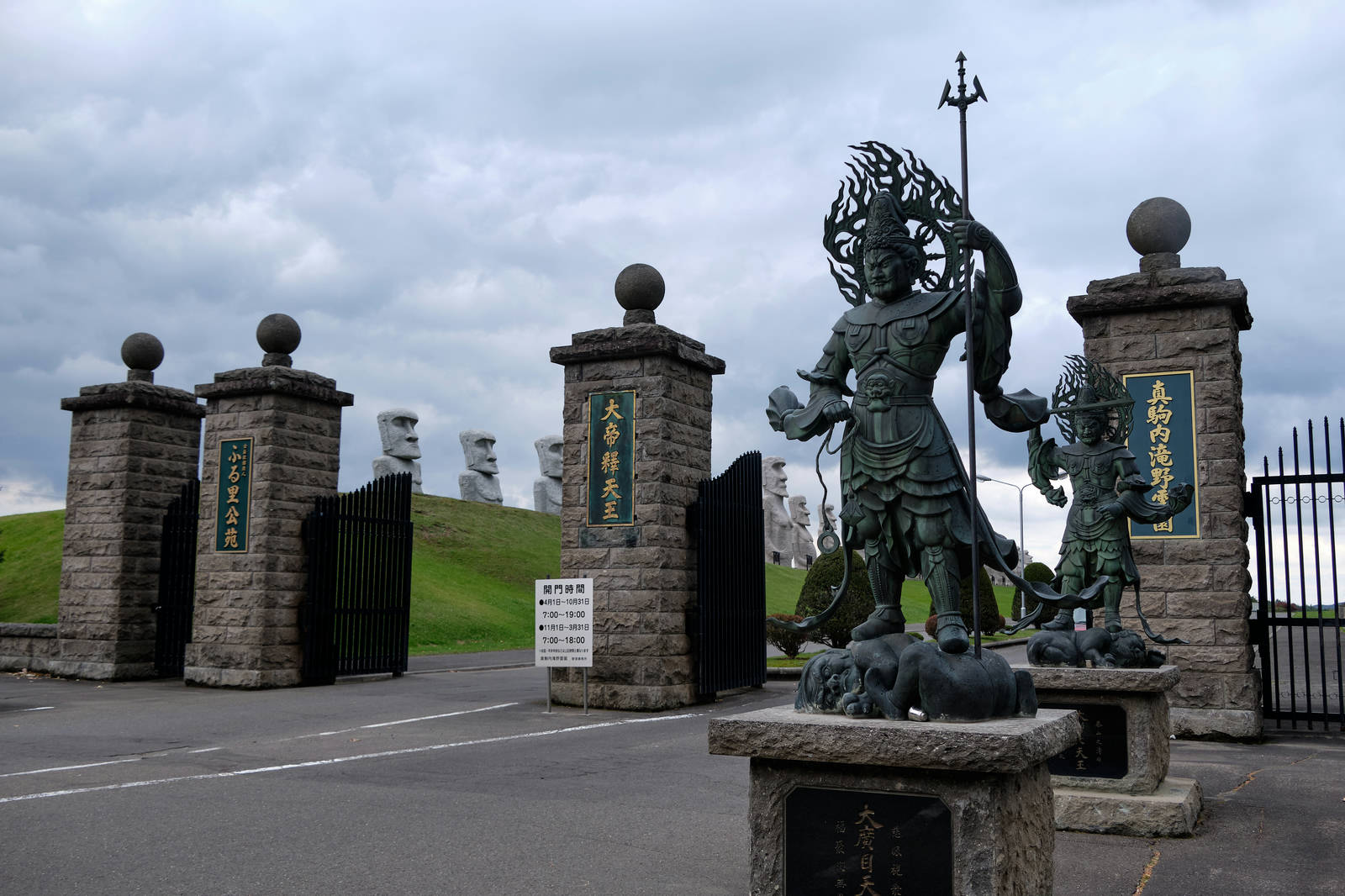 Für's restliche Sightseeing hat mich dann mein Gastgeber beraten. Ich habe mal wieder ein komplettes Hostel für mich alleine gehabt, das hatte zwar eigentlich nur zwei Schlafsäle, die aber auf Grund der momentanen Situation als Einzelzimmer vermietet wurden, immerhin ordentlich Platz und Flussblick. So habe ich dann noch, Zwecks Ausblick, eine Tageswanderung auf den Berg Moiwa gemacht und bin zu einem noch recht leeren Friedhof mit einem in ein Lavendelfeld eingepacktem großen Buddha gefahren. Der Ort war allgemein etwas bizarr, nicht nur wieder wegen der durch die Explosionen des naheliegenden Militärübungsplatzes etwas gestörten Idylle, sondern auch wegen der leicht fehl am Platze wirkenden Moai Statuen und Stonehenge. Vermutlich hat man versucht den Mangel an historischen Relikten irgendwie durch Import auszugleichen. Etwas außerhalb wurde mir auch noch ein recht großer Park empfohlen, da gibt's aber eigentlich nur Sportanlagen, viel Platz zum rumlungern, diverse moderne Kunst und ein NERV-Hauptquartier.