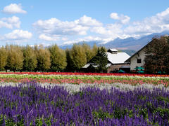 Zurück auf dem Sattel ging's weiter nach Furano — über eine Bergkette wo oben gemütliche drei Grad Celsius bei leichtem Hagel herrschten. Mit den Nebelschwaden zwischen den Bergen wenigstens sehr atmosphärisch. Furano ist ein Wintersportort, deswegen war es da auch noch recht leer. In der Umgebung gibt es aber eine Blumenfarm zu sehen, die sich zwar auf Lavendel spezialisiert hat, ansonsten aber auch für jede Jahreszeit andere passende Blumenfelder bereithält. Mein Highlight war aber eher die Käserei wo ich endlich — leider zu Apothekenpreisen — meine nun lange vernachlässigte Sucht stillen konnte. Ich habe mir dort einen Camembert mit Tintenfischtinte und einen Weincheddar gegönnt, in alter britischer Tradition mit Crackern da kurzfristig kein benutzbares Brot aufzutreiben war. Beide Käse waren durchaus nicht schlecht, aber etwas mild für meinen Geschmack. Das ist aber vermutlich eine lokale Notwendigkeit, die japanische Küche neigt zu wenig bis keiner Würzung und konzentriert sich eher auf die subtileren Aromen der Zutaten.
