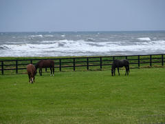 Nach einer weiteren landschaftlich wunderbaren Bergetappe bin ich in Obihiro gelandet, der letzten größeren Ortschaft für laaange. Danach folgt nämliche eine riesige Ebene wo eigentlich nur Felder und Weiden mit gelegentlich kleineren Ansammlungen von Häusern und Bauernhöfen. Im Gegensatz zu den Reisfeldern auf der Hauptinsel scheint man sich hier aber auf Kartoffeln und Rüben zu konzentrieren. Aus der geringer Bevölkerungsdichte resultiert wohl auch, dass die JAXA hier ein Forschungs- und Testzentrum betriebt (eventuell resultiert auch letzteres aus ersterem). Aus der Ebene raus führt ein wunderbar herbstlicher und angenehm wenig befahrener Bergpass zurück zum Meer. Kaum hat man die Berge verlassen landet man zwischen einer wahnwitzigen Menge von Pferdekoppeln. Wie mir der Besitzer des örtlichen Badegästehausnudelsuppenladens erzählte, werden in der Gegend die Rennpferde für den Rest des Landes gezüchtet und verschifft. Das Pferdethema zieht sich dann auch bis fast nach Tomakomai weiter durch, wo es dann direkt wieder unhübsch industriell wird.