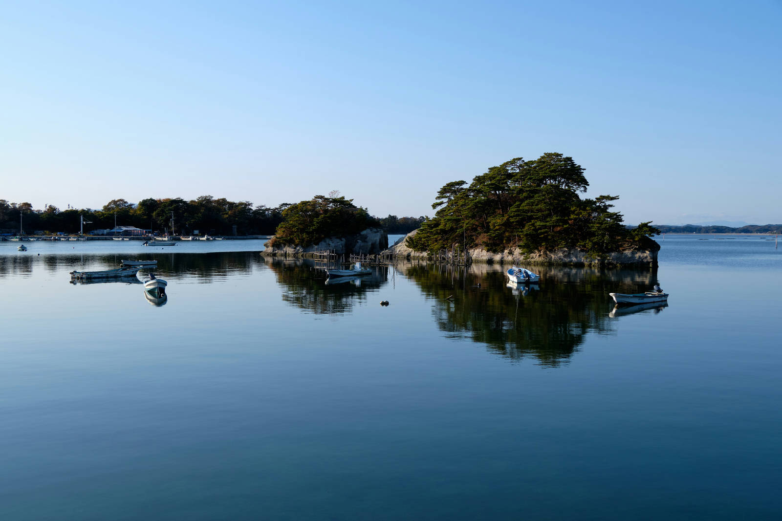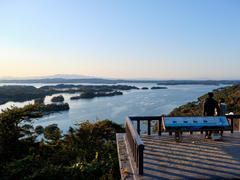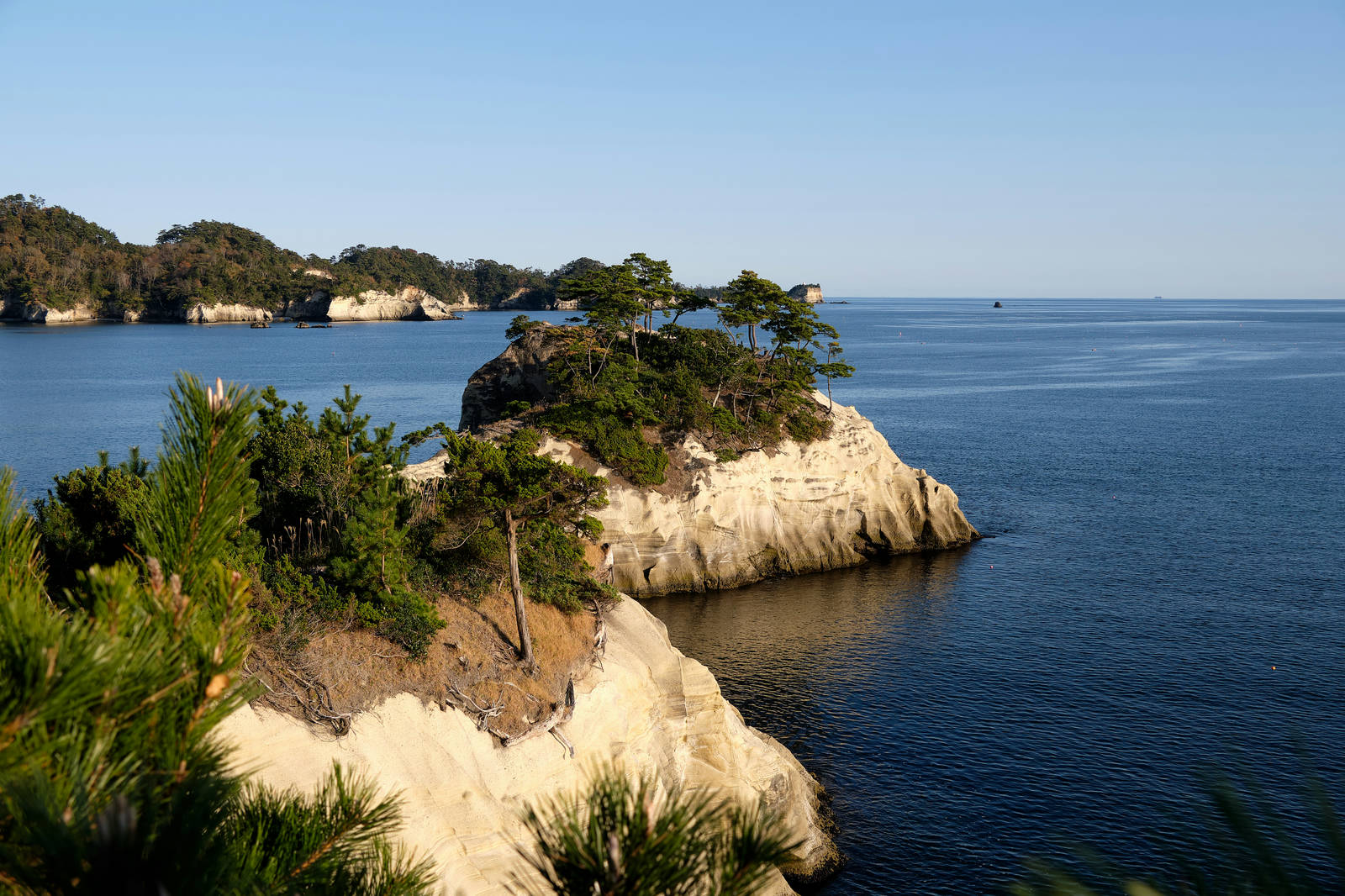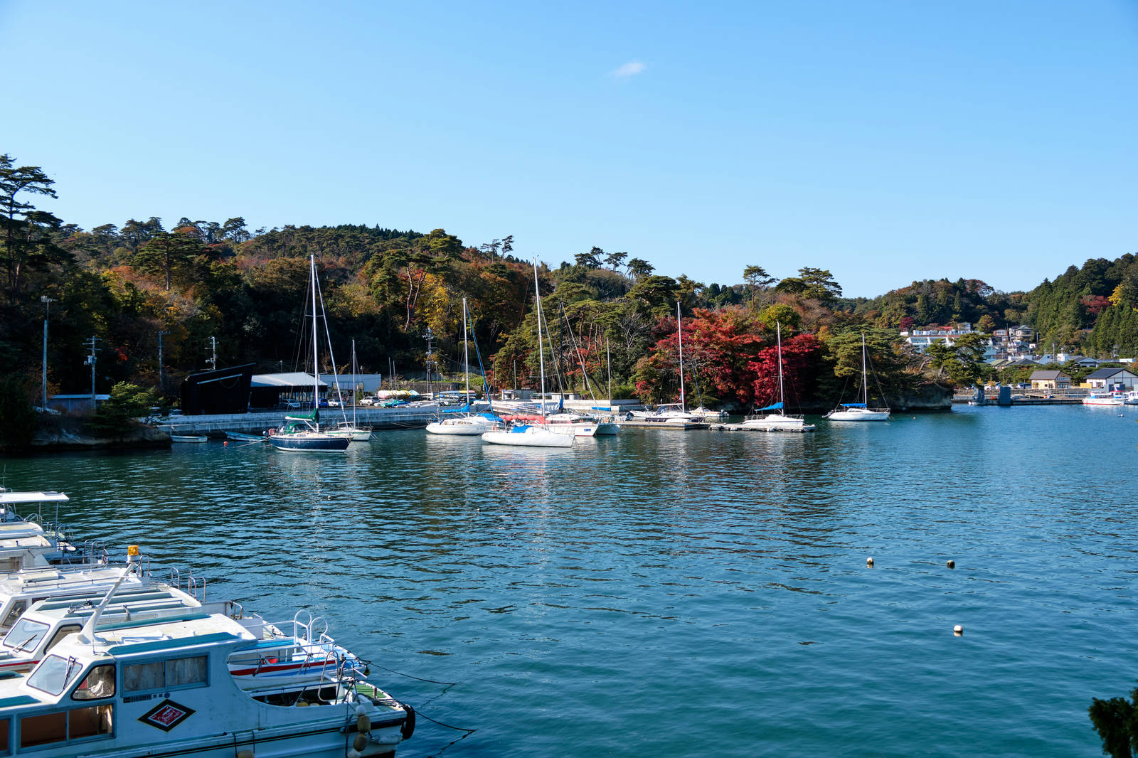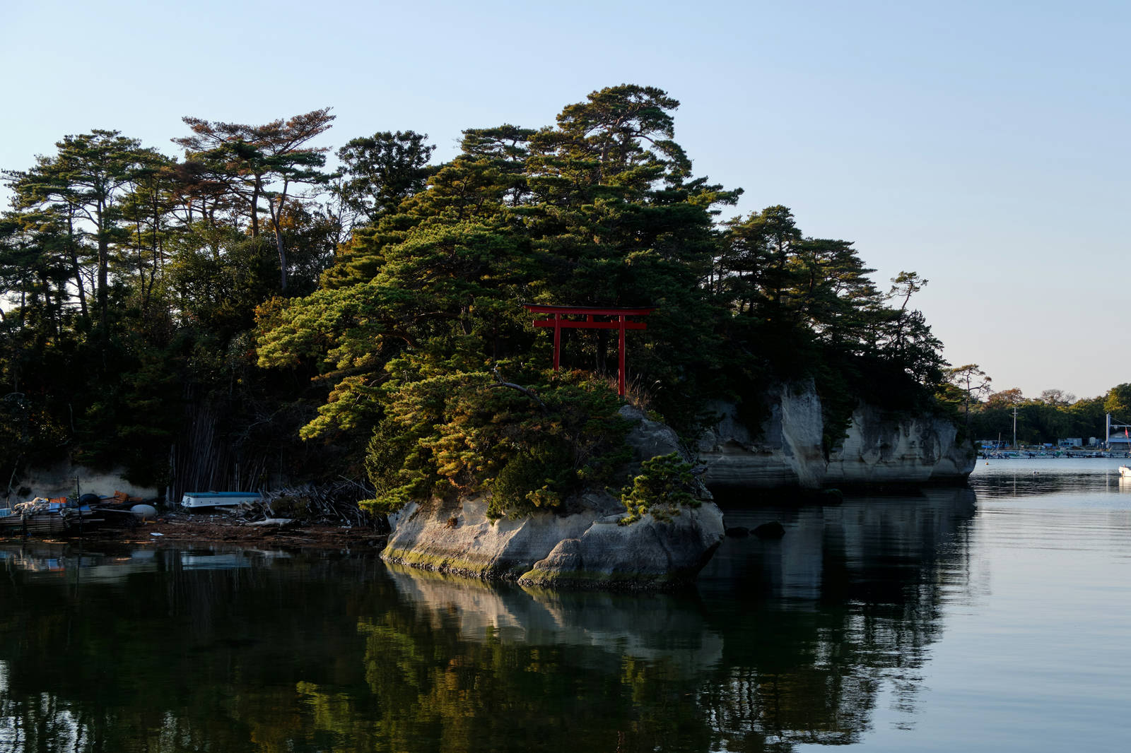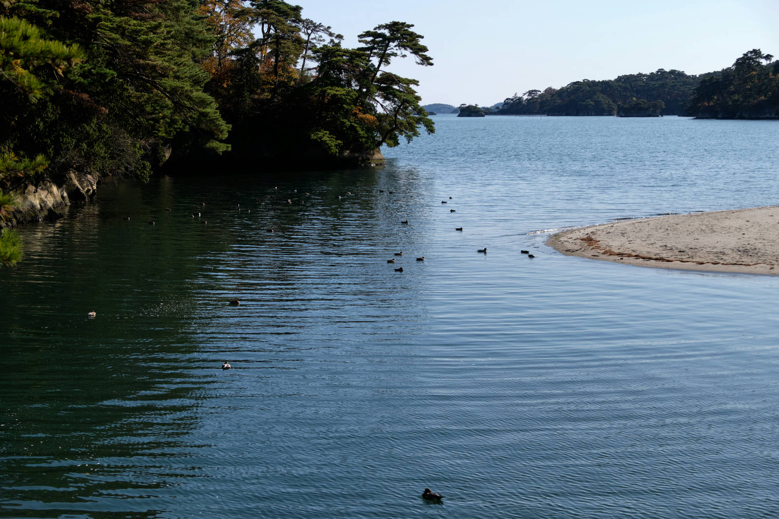 Neben einer weiteren Wasserfall-mit-Herbst-Tour war das Highlight Matsushima. Die dortige Bucht mit den vielen kiefernbewachsenen Inseln zählt zu den drei schönsten Landschaften Japans™ und hat auf Grund ihrer Buchtigkeit den Tsunami recht glimpflich überstanden. Äußerst Fotogen das Ganze. Dort bin ich auch auf eine Truppe aus einem Deutschen, einer Italienerin und einem Ukrainer getroffen, die ebenfalls per Fahrrad durch Japan unterwegs waren ... prinzipiell ja eigentlich ein ganz netter Zufall. Stutzig wurde ich ein wenig, als mich die Italienerin direkt mal (nach dreimal falsch raten) nach meinem Sternzeichen fragte (und es dann natürlich schon vorher gewusste hatte) und dann wissen wollte ob ich über die Illuminaten und deren geheimen Ort am Fuji Bescheid wüsste. In meiner Gutgläubigkeit habe ich darauf nachgefragt ob das was mit dem Roman zu tun hätte, was allerdings in einer verneinenden Aufzählung diverser angeblich beteiligter Familiennamen endete. Der Mensch aus der Ukraine war laute eigener Aussage mit einer Japanerin verheiratet und hatte drei Kinder, war aber kürzlich von ihr rausgeworfen worden — unverschuldet natürlich. Japan schätzte er vor allem weil ihn niemand zwingen würde eine Maske zu tragen, ohne die er dann aber wiederum nicht durch Tunnel radeln wollte, weil Abgase und Staub sind ja ungesund. Der Deutsche war eher ungesprächig, schien die beiden aber Unterwegs eingesammelt zu haben und ebenfalls per Working Holiday Visa eingereist zu sein. So viel mehr wollte ich dann aber eigentlich auch gar nicht mehr wissen, und da der Vorschlag aufkam, ich könnte mich ihnen ja anschließen, habe ich dann freundlich aber bestimmt das Weite gesucht ... was für Flachpfeifen ... ne, mental angetoastet ist ja der neue Fachbegriff. Um weitere Begegnungen zu vermeiden bin ich direkt weiter zum nördlichen, ins Meer hineinragenden Teil der Bucht, da ist im Gegensatz zum Ort Matsushima fast nicht los, bei landschaftlich Äquivalenter Hübschigkeit.
