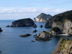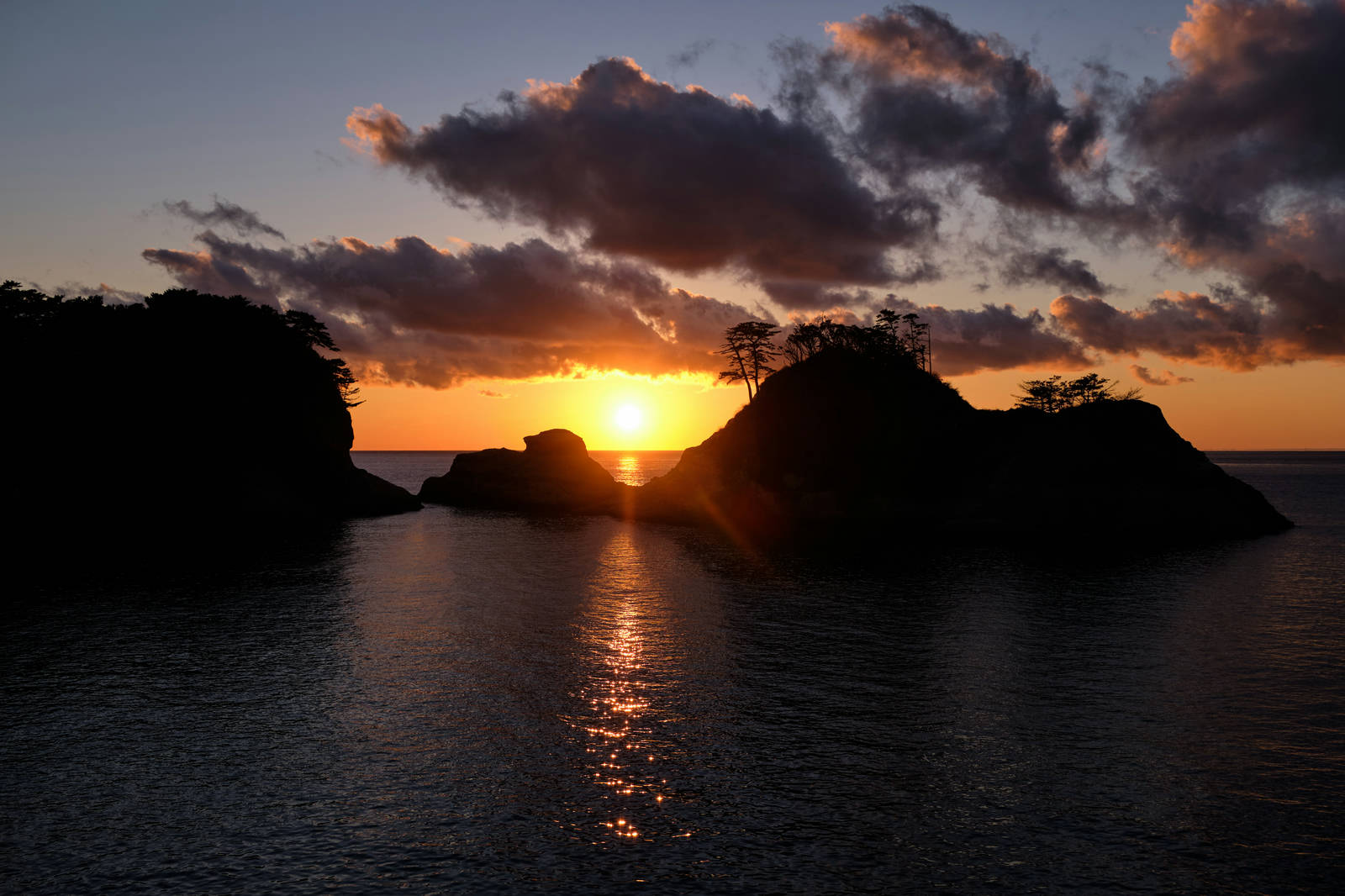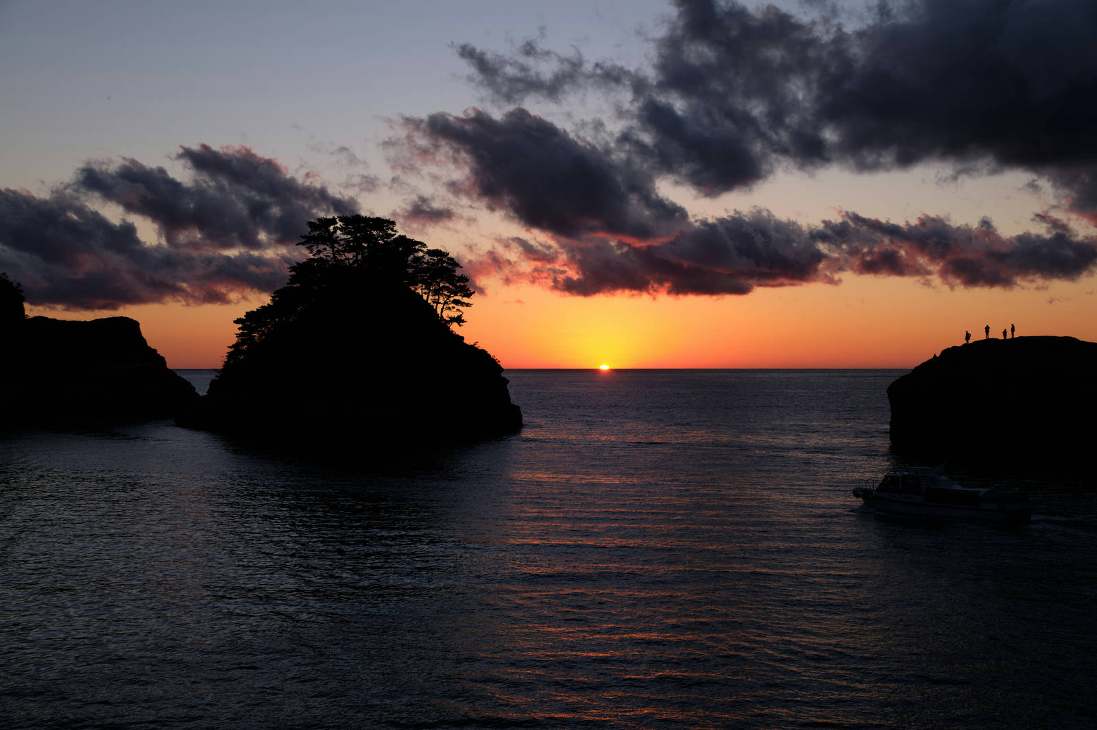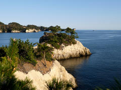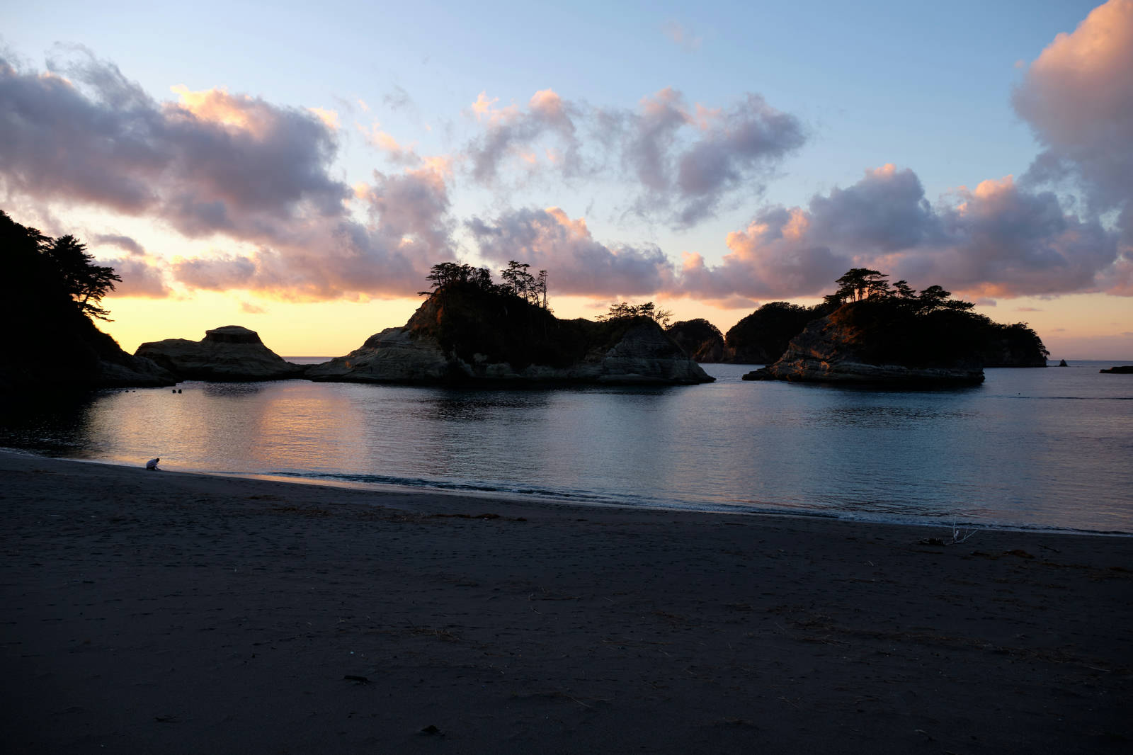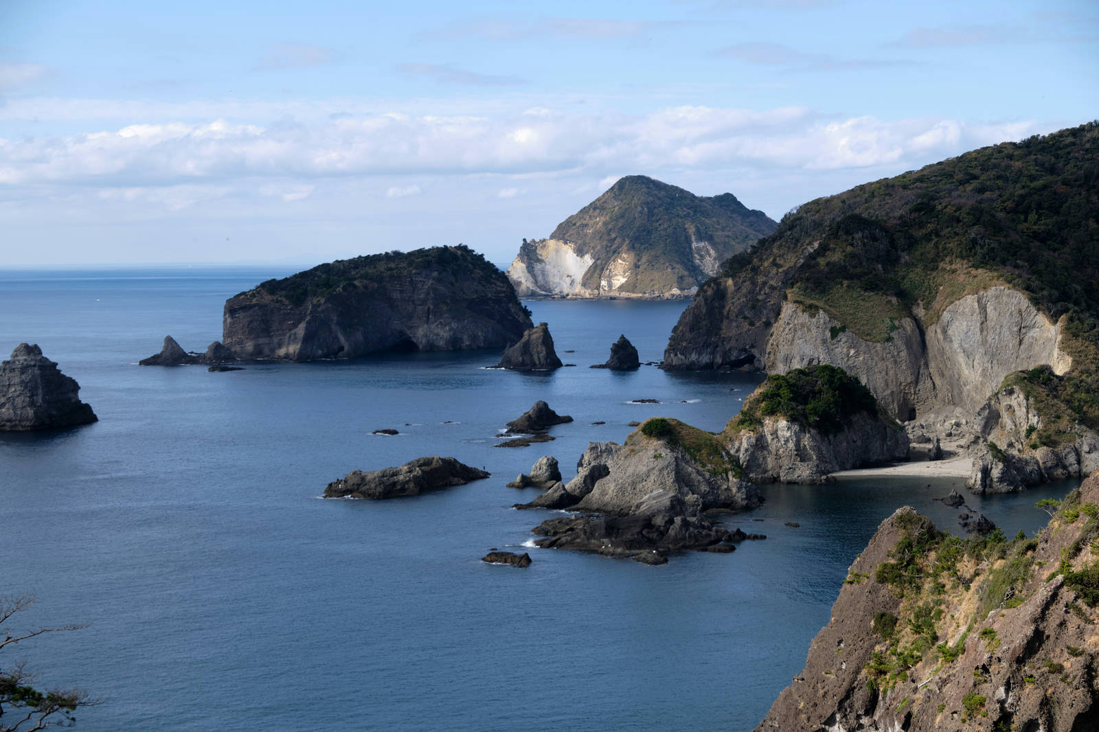 Neben einer weiteren Wasserfall-mit-Herbst-Tour war das Highlight Matsushima. Die dortige Bucht mit den vielen kiefernbewachsenen Inseln zählt zu den drei schönsten Landschaften Japans™ und hat auf Grund ihrer Buchtigkeit den Tsunami recht glimpflich überstanden. Äußerst Fotogen das Ganze. Dort bin ich auch auf eine Truppe aus einem Deutschen, einer Italienerin und einem Ukrainer getroffen, die ebenfalls per Fahrrad durch Japan unterwegs waren ... prinzipiell ja eigentlich ein ganz netter Zufall. Stutzig wurde ich ein wenig, als mich die Italienerin direkt mal (nach dreimal falsch raten) nach meinem Sternzeichen fragte (und es dann natürlich schon vorher gewusste hatte) und dann wissen wollte ob ich über die Illuminaten und deren geheimen Ort am Fuji Bescheid wüsste. In meiner Gutgläubigkeit habe ich darauf nachgefragt ob das was mit dem Roman zu tun hätte, was allerdings in einer verneinenden Aufzählung diverser angeblich beteiligter Familiennamen endete. Der Mensch aus der Ukraine war laute eigener Aussage mit einer Japanerin verheiratet und hatte drei Kinder, war aber kürzlich von ihr rausgeworfen worden — unverschuldet natürlich. Japan schätzte er vor allem weil ihn niemand zwingen würde eine Maske zu tragen, ohne die er dann aber wiederum nicht durch Tunnel radeln wollte, weil Abgase und Staub sind ja ungesund. Der Deutsche war eher ungesprächig, schien die beiden aber Unterwegs eingesammelt zu haben und ebenfalls per Working Holiday Visa eingereist zu sein. So viel mehr wollte ich dann aber eigentlich auch gar nicht mehr wissen, und da der Vorschlag aufkam, ich könnte mich ihnen ja anschließen, habe ich dann freundlich aber bestimmt das Weite gesucht ... was für Flachpfeifen ... ne, mental angetoastet ist ja der neue Fachbegriff. Um weitere Begegnungen zu vermeiden bin ich direkt weiter zum nördlichen, ins Meer hineinragenden Teil der Bucht, da ist im Gegensatz zum Ort Matsushima fast nicht los, bei landschaftlich Äquivalenter Hübschigkeit.