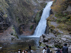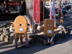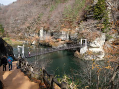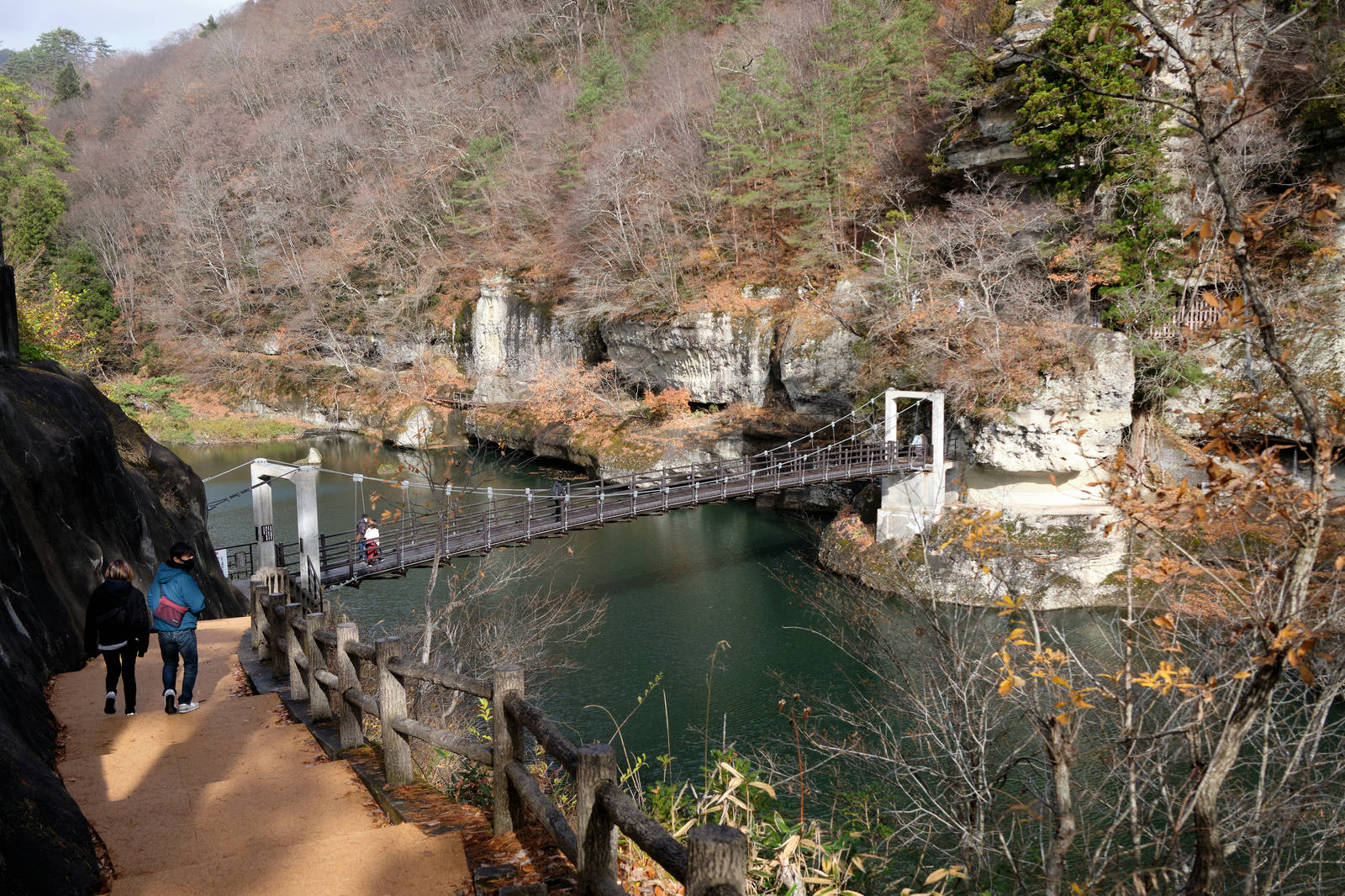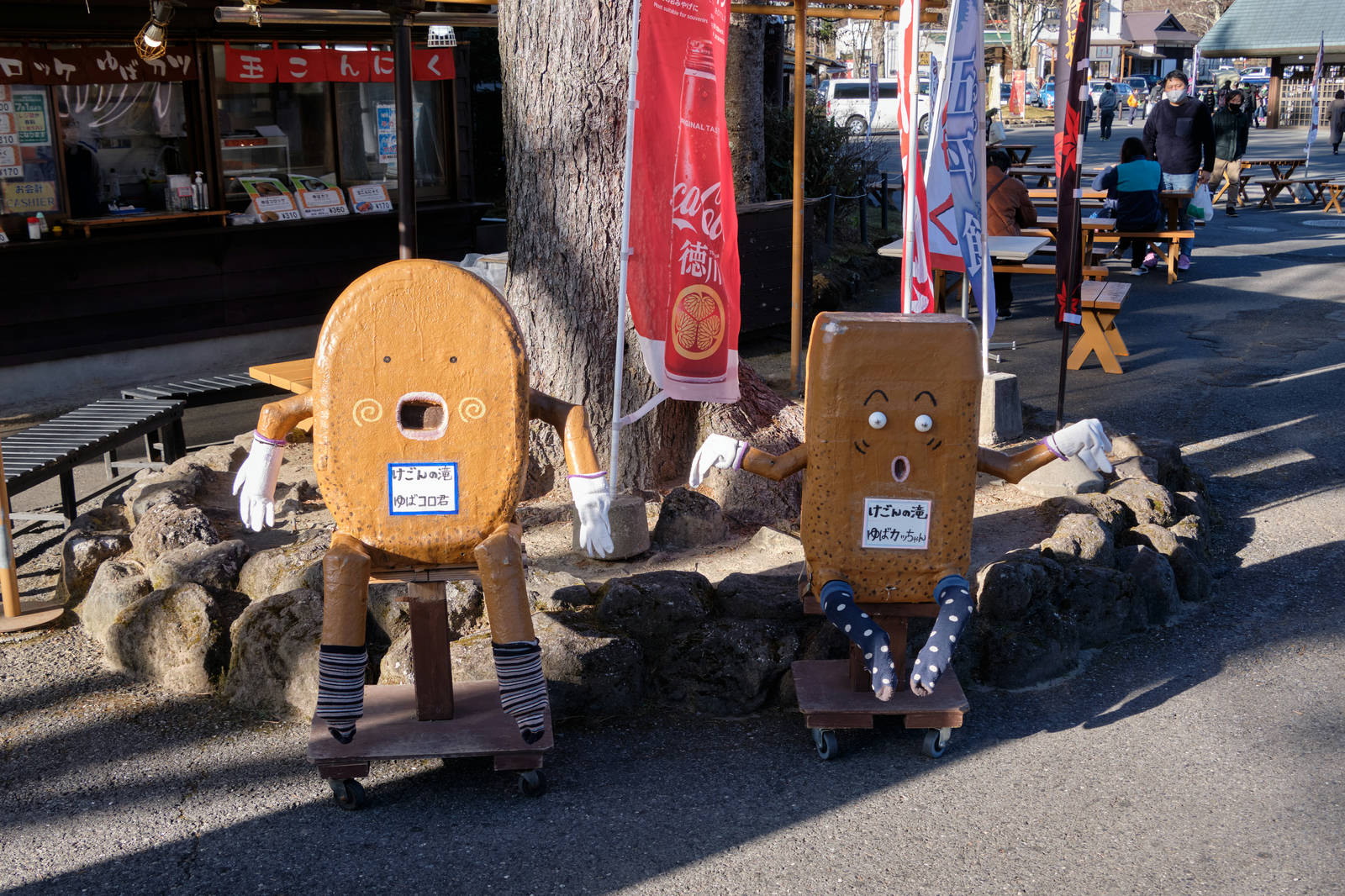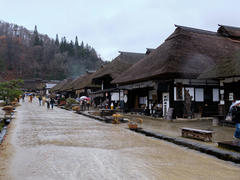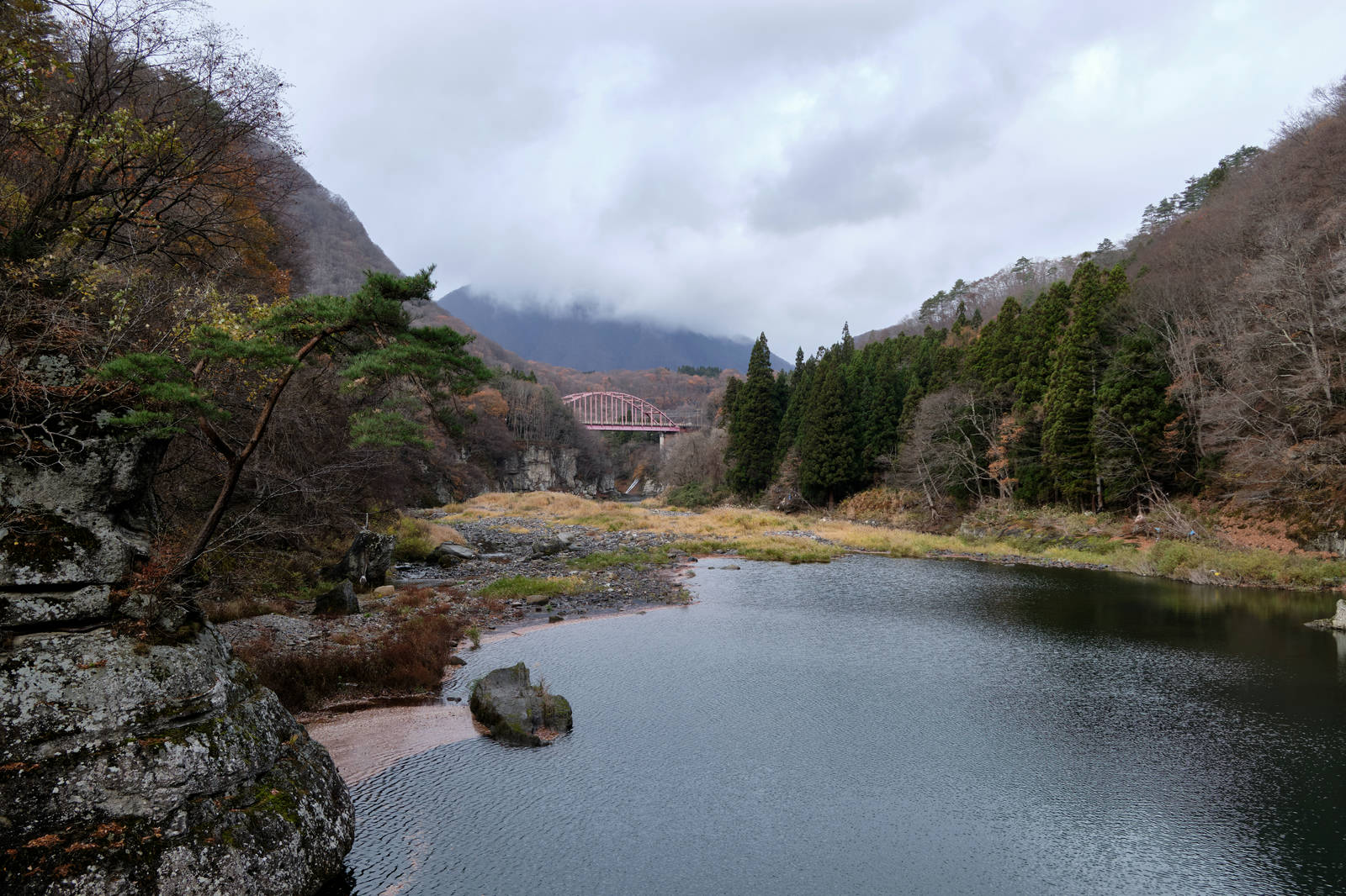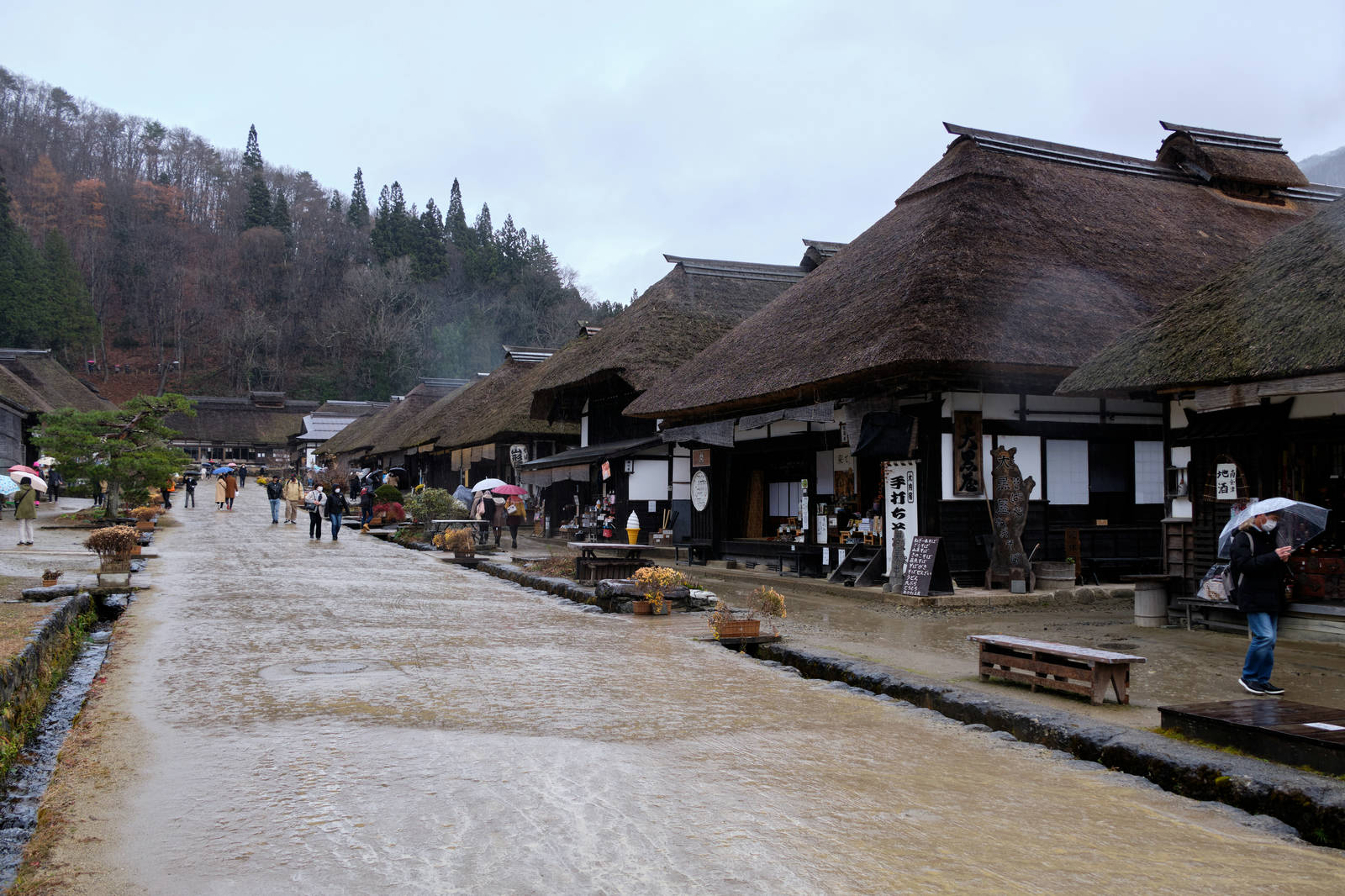 Weiter ging's bei mäßig beschissenem Wetter und gemütlichen zwei Grad über einsame Bergstraßen ... zumindest bis Ouchijuku, dort wimmelte es nur so von Touristen. Das inzwischen etwas abgelegene Bergdorf war vor einigen hundert Jahren mal Rastplatz an einer wichtigen Handelsroute und ist optisch zu dieser Zeit passend restauriert worden. In den mit Reet gedeckten Häusern befinden sich aber hauptsächlich Souvenirshops und Restaurants. In der Nähe gibt es aber auch noch ein paar hübsche Schluchten zum angucken. Mein Tagesziel, Yabuki, war ein eigentlich sehr belanglos — so sehr, dass mich die reine Existenz eines Hotels dort immernoch irritiert — aber etwas abenteuerlich. Nach den kalten und nassen Bergstraßen, kam Sonne ... und Wind. Der hat mich zwar mit 40 bis 50 Sachen bei relativ gefühlter Windstille aus dem Tal befördert, jegliche Bewegung die nicht ganz der Windrichtung entsprach aber nahezu unmöglich gemacht. Abends hab ich dann auch noch des erste richtige Erdbeben zu spüren bekommen. Auf Hokkaido hab ich zwar schon eines erlebt, das war aber so schwach, dass ich erst nachgucken musste um sicher zu sein. Ist ein interessantes Gefühl so ein Erdbeben, erst hat man den Eindruck, dass irgendwie irgendwas gerade komisch ist und dann rüttelt es eine Weile lateral hin und her (... ich hatte mir das immer mehr vibrierend vorgestellt). Ich war gerade im Konbini mein Abendessen besorgen wo das klirren und rascheln der Regale das ganze noch etwas beeindruckender macht. Die Einheimischen nehmen's aber recht gelassen: Alle gucken kurz ob es wieder aufhört, dann wird der eine umgekippte Pappaufsteller wieder hingestellt und alle setzen Wortlos ihre vorherige Tätigkeit fort. Mit einer unteren fünf auf der JMA Skala (nicht zu verwechseln mit der Richter Skala) hatte das Ereignis durchaus Nachrichtenwert, es kam aber weder zu einem Tsunami noch zu sonstigen Schäden ... nur die Aufzüge im Hotel hatten sich abgeschaltet, sodass ich erstmal die Treppe finden musste, die ist in Japan nämlich meist recht gut versteckt.