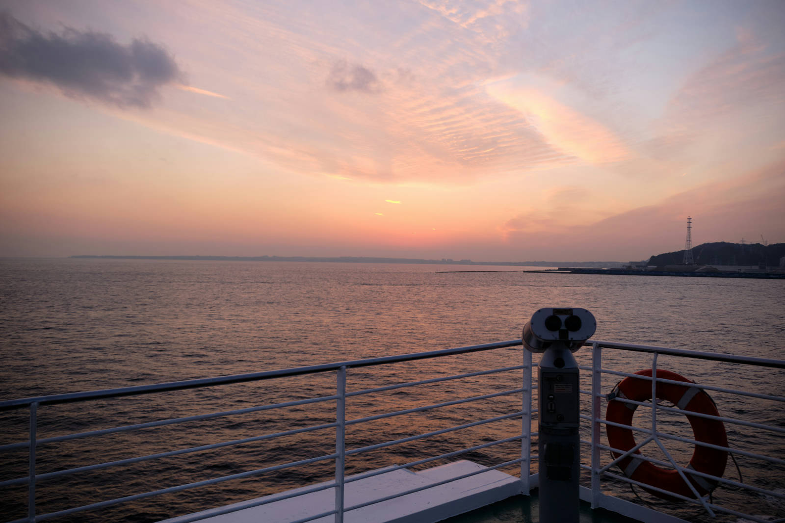 Für den letzten Abschnitt bin ich dann doch noch mal auf die Fähre, war mit nur 40 Minuten fahrt aber durchaus verkraftbar und ansonsten hätte ich durch Tokyo durchgemusst, was unangenehm, langsam und ja auch schon das Ziel meiner Tour gewesen wäre. Traditionell hatte ich natürlich genau an dem Tag wieder technische Probleme, diesmal hat mein vorderes Kettenblatt ein knappes viertel seiner Zähne verloren ... vermutlich hab ich mich einmal zu oft mit wahrscheinlich doch etwas zu schwerem Rad verschaltet. Naja, wozu habe denn zwei von den Dingern, ging also weiter, nur etwas langsamer. Die Fähre die ich eigentlich nehmen wollte habe ich dann auch verpasst, was dann in zwei Stunden Wartezeit und Nachtfahrt geendet ist. Reparieren werde ich das Problem hier vermutlich nicht mehr, da es am sinnvollsten ist, gleich den kompletten Antriebsstrang zu tauschen und mir das passende Werkzeug dafür fehlt ... aber fährt ja noch.