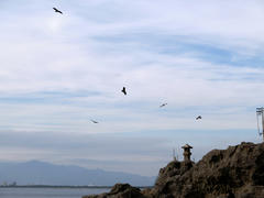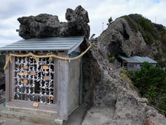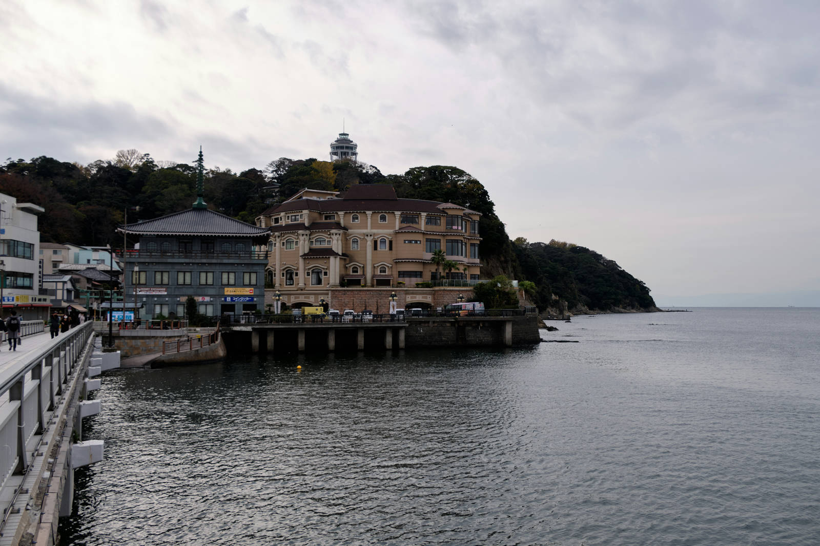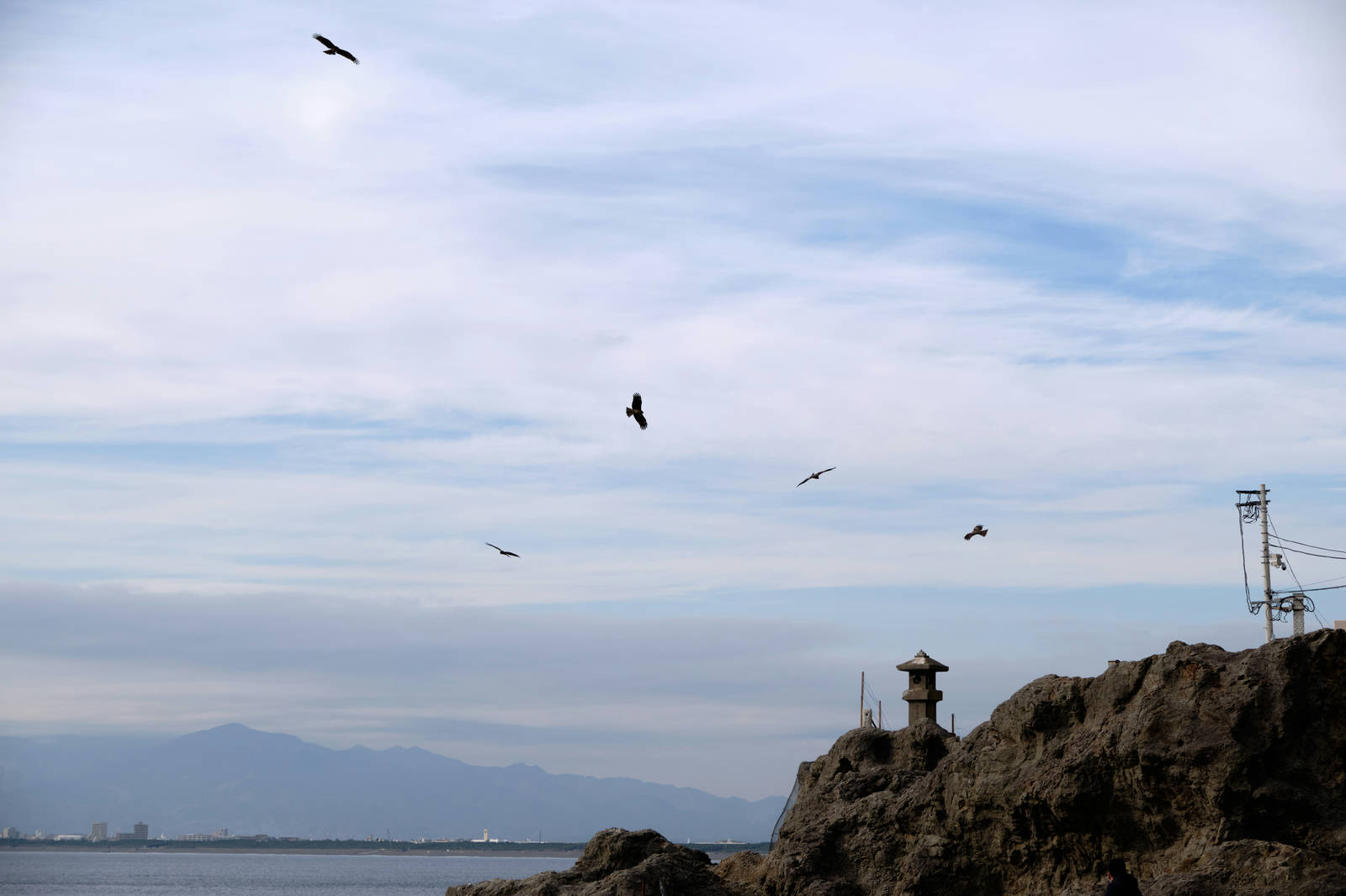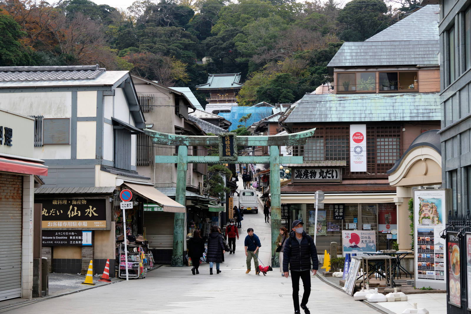 Ein Großteil der Sagami-Bucht ist das Shonan Gebiet. Das milde Klima und die breiten Strände sowie die nähe zu Tokyo haben hier über die Jahre zu einem eher Kalifornischen Lebensstil geführt, alles versucht eine gewisse Entspanntheit zu vermitteln, alle Mopeds und Fahrräder sind mit Surfbrettträgern ausgestattet und an sämtlichen Häusern flattern Neoprenanzüge. Mittig in dieser Region liegt die Enoshima, eine kleine steinige Insel die per Brücke mit dem Festland verbunden ist. Dort kann man über verschlungene Wege und Treppen ein wenig zwischen den kleineren Ansiedlungen von Souvenirläden und Restaurants umherwandern. Schreintempel und einen Aussichtsturm gibt's natürlich auch. Außerdem kann man sich damit beschäftigen den Adlern auszuweichen die gelegentlich Sturzflüge auf die Besucher durchführen oder sich wahlweise den Schädel an der niedrigen Decke der Iwaya Höhlen anzuschlagen. Die haben laut Legende eine direkte Verbindung Richtung Fuji ... vielleicht haben die Nasen in Matsushima ja davon gefaselt.