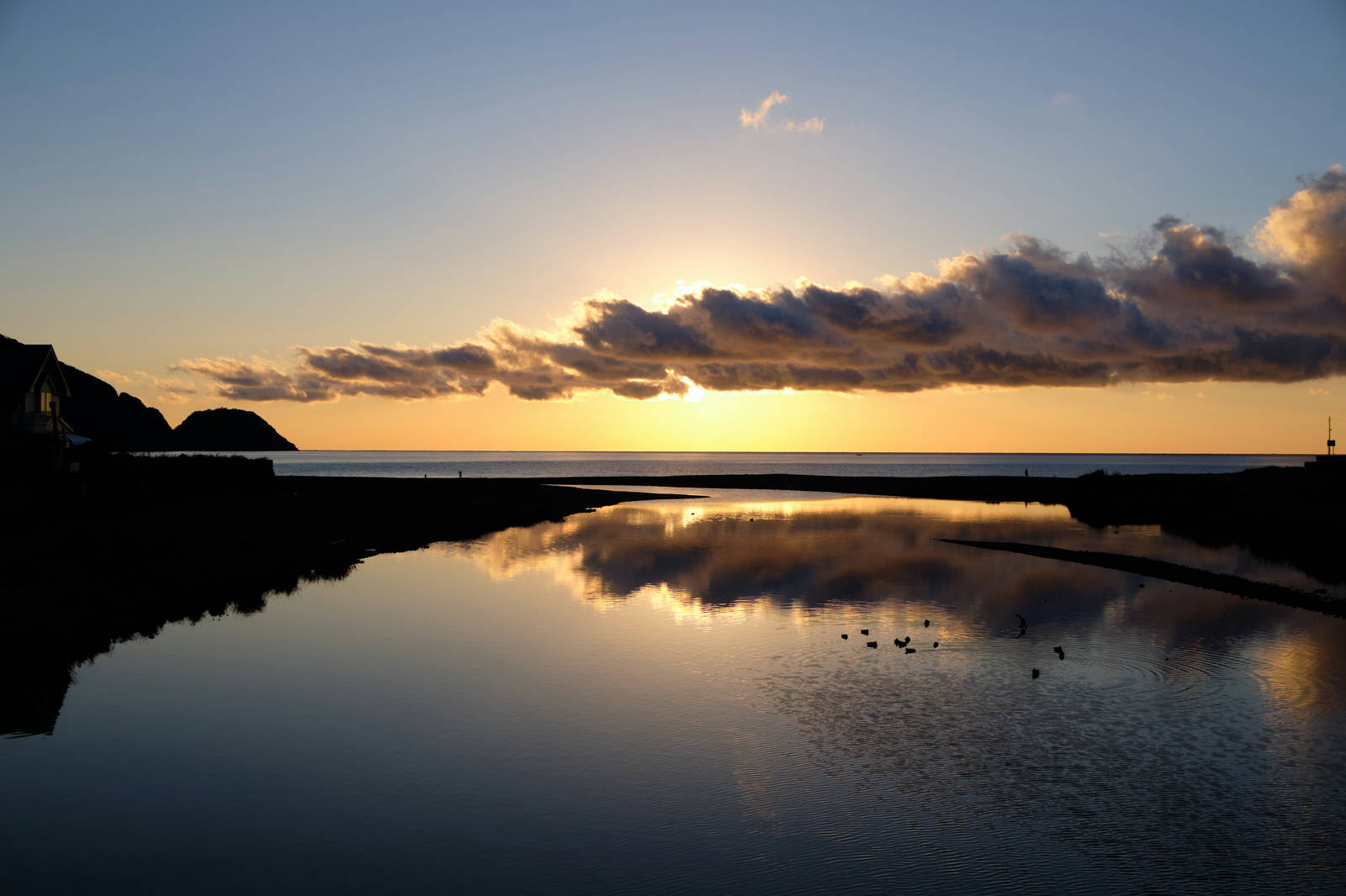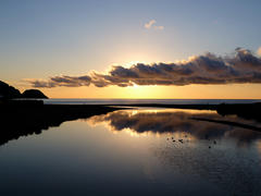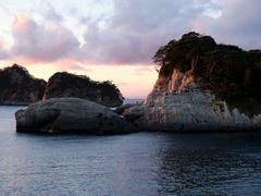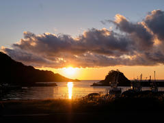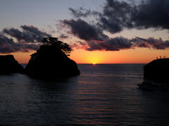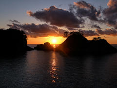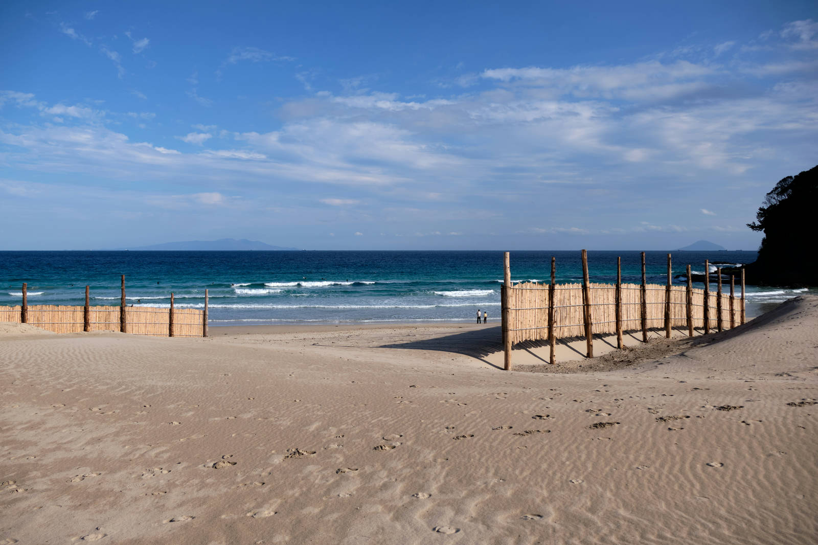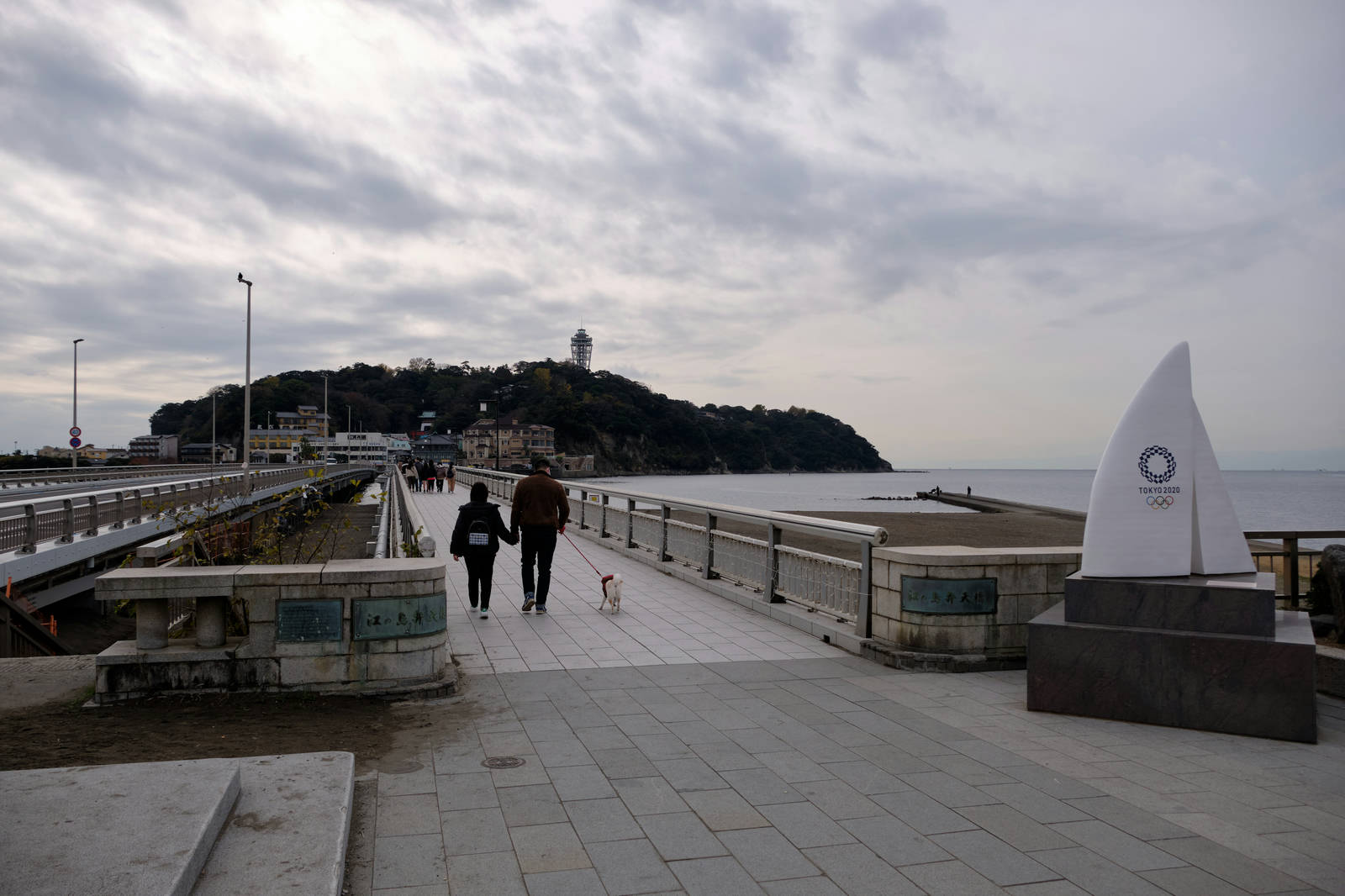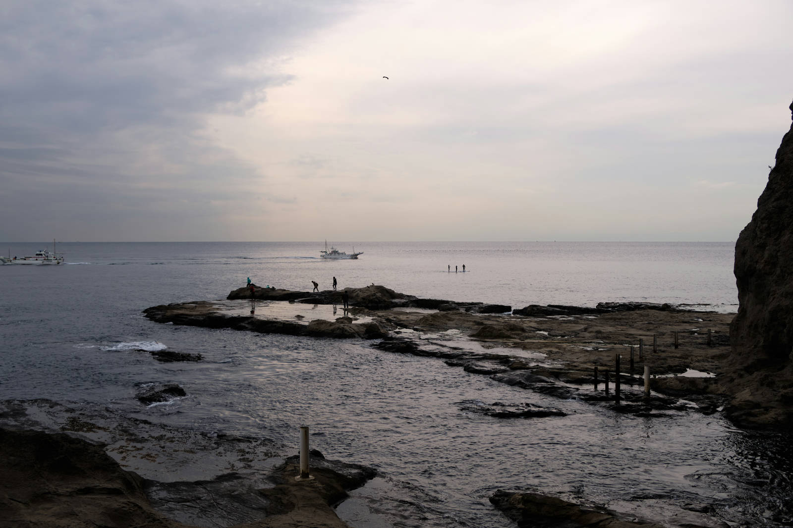Den Fuji im Rücken weiter auf die Izu-Halbinsel. Ich hab irgendwie nicht mitbekommen wann ich die Klimazone gewechselt habe, aber nachdem ich die Wochen davor eigentlich nur kahle Bäume mit gelegentlichen Herbstresten gesehen habe, war Izu plötzlich wieder saftig grün und angenehm warm. Zudem wirkt zumindest die Westseite trotz ihrer Nähe zu Tokyo sehr abgelegen und verschlafen. Aber es führt tatsächlich eine Radroute einmal komplett außenherum, die hilft aber nur mit ihren auffälligen blauen Pfeilen auf der Straße bei der Navigation, ist ansonsten aber eher anspruchsvoll. Das ständige auf und ab an der Steilküste läppert sich und so kamen täglich mehr Höhenmeter zusammen als bei meinen Bergetappen. Lohnt sich aber bei der Landschaft. Eine meiner Übernachtungen lag an einer Bucht die sich selbst als Matsushima von Izu bezeichnet und einen atemberaubenden Sonnenuntergang bietet, den ich dann direkt auch in einer Horde anderer Fotografen genießen durfte. Der Fuji hat sich auch das eine oder andere Mal dazu herabgelassen aus seiner Wolke herauszuschauen, aber halt wieder nur aus der Ferne.