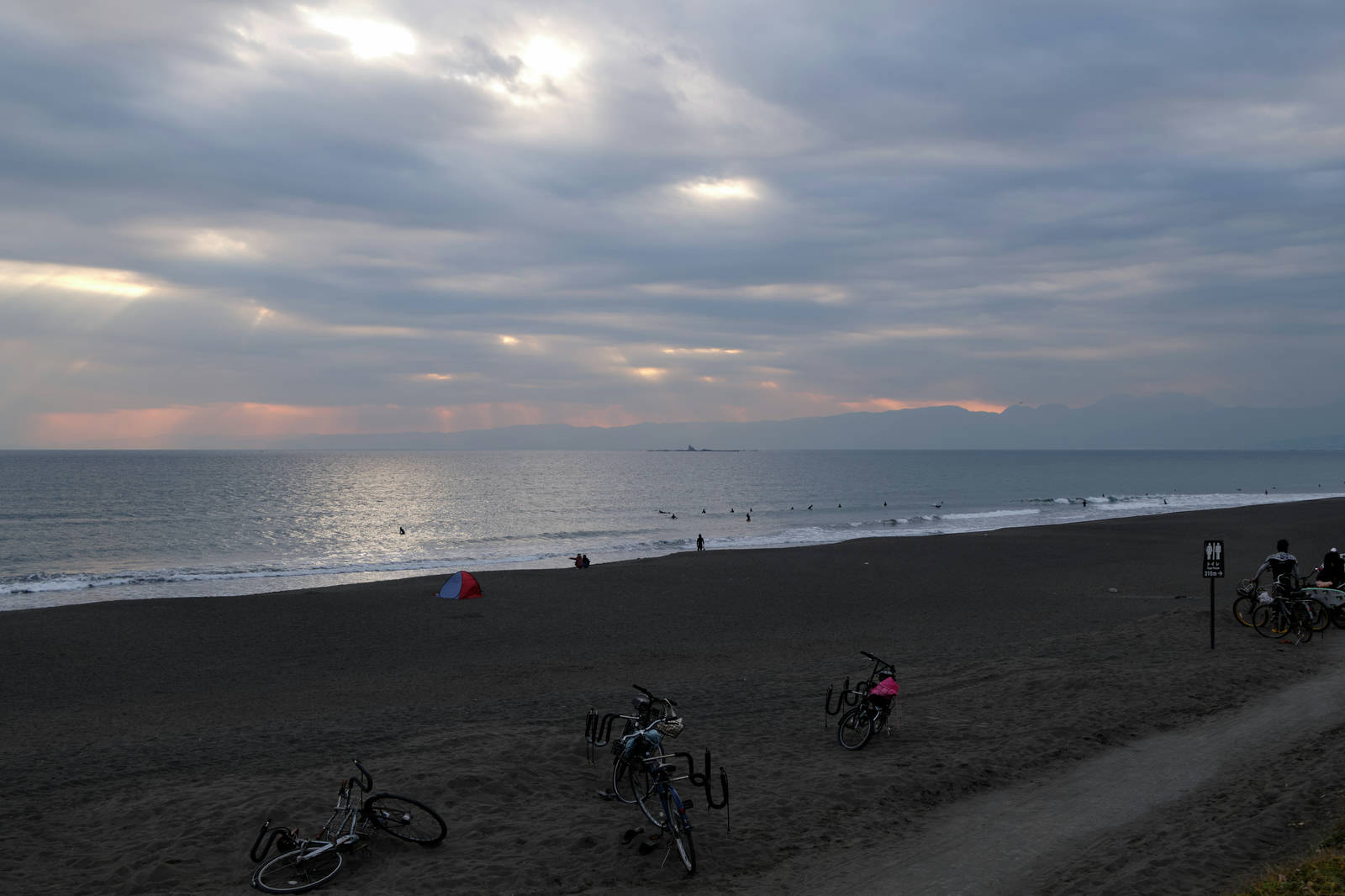 Die Ostseite von Izu ist deutlich lebhafter. Hier weicht die Steilküste nach und nach Stränden, die Surfer und Urlauber, und damit auch Hotelbunker, anziehen und das Ganze geht dann fast nahtlos in die langgezogene Sagami-Bucht über. Die Radroute geht da auch weiter, stellt sich nämlich heraus, dass der Izu-Abschnitt nur ein Teil der insgesamt 1.400 Kilometer langen Pacific Cycling Road ist der ich dann noch ein paar weitere Tage folgen konnte. Hätte ich das mal früher gewusst ... aber vielleicht bietet sich in der Zukunft nochmal eine Gelegenheit die komplett in Angriff zu nehmen.