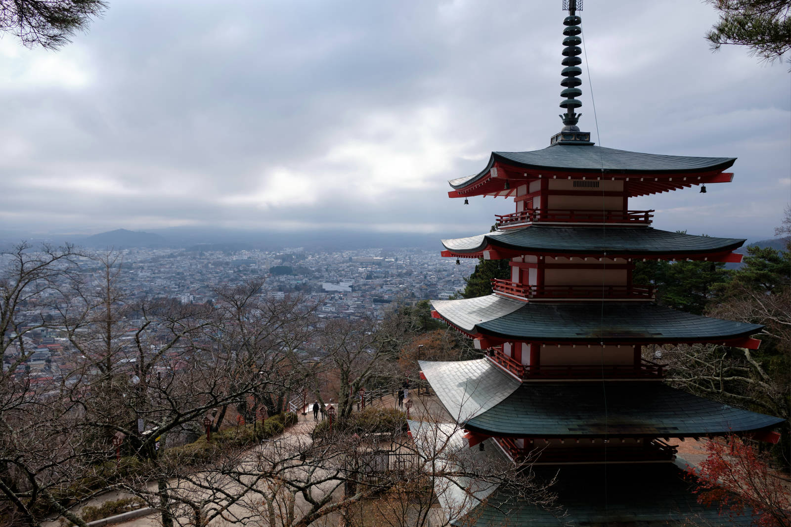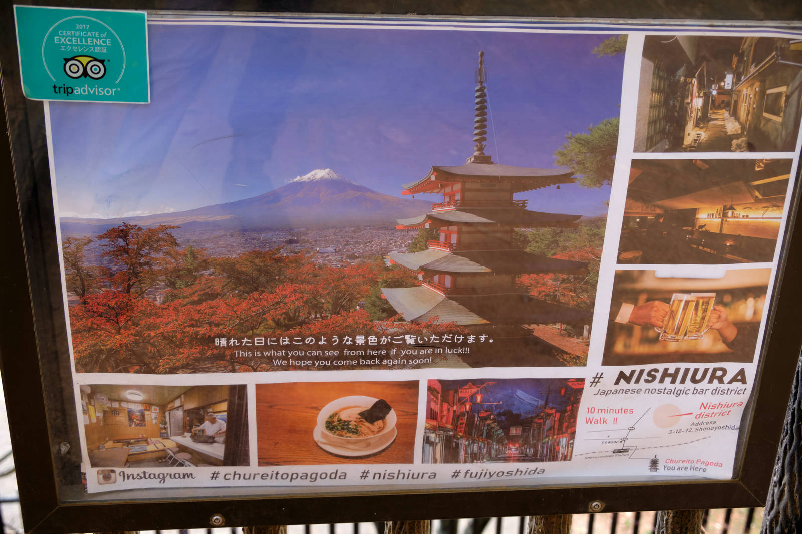Am Berg Asama vorbei, um den herum sich erstaunlich viele Ferienhäuser und internationale Restaurants befinden und der Schauplatz des Kampfes mit dem achten Engel Sandalphon war, habe ich dann schließlich auf den Fuji zugesteuert. Denn konnte ich dann auch gleich bei erster Gelegenheit in voller Pracht aber noch aus weiter Ferne besichtigen. Das Ding ist mit seinen 3.776 Metern übrigens ein immernoch aktiver Vulkan und dazu noch einer der schon länger überfällig ist. Voller Vorfreude habe ich mich dann am nächsten Tag bei gutem Wetter über die letzte Bergkette gequält die noch zwischen mir und dem Fuji lag, nur um auf der anderen Seite festzustellen, dass sich das dämliche Ding dann doch in einer Wolkendecke versteckt hatte, wo es dann die diversen Tage die ich in der Umgebung eingeplant hatte auch nicht mehr rauskam. Bis auf ein Hinweisschild wie der Ausblick — der gefühlt das Cover von wirklich jedem Japanreiseführer ziert — eigentlich hätte aussehen sollen gab's nicht viel zu sehen. Was wenigstens noch recht beeindruckend war, ist dieser nach oben quasi in der Unendlichkeit (in Fachkreisen auch Wolke genannt) verschwindenden Wand entgegenzufahren. Den Aokigahara Wald hab ich auch kurz von innen sehen können, besser gesagt von der Straße die durchführt. Und ja, der ist wirklich ziemlich dicht und ich verstehe warum sich da drin viele Geschichten und Legenden abspielen ... und man da früher wohl gerne unliebsame Verwandtschaft reingeschickt hat, in der Hoffnung, dass sie nicht wieder herausfindet. Weswegen der Wald sonst noch so bekannt ist, darf jede für sich selbst recherchieren, ober vielleicht auch besser nicht.