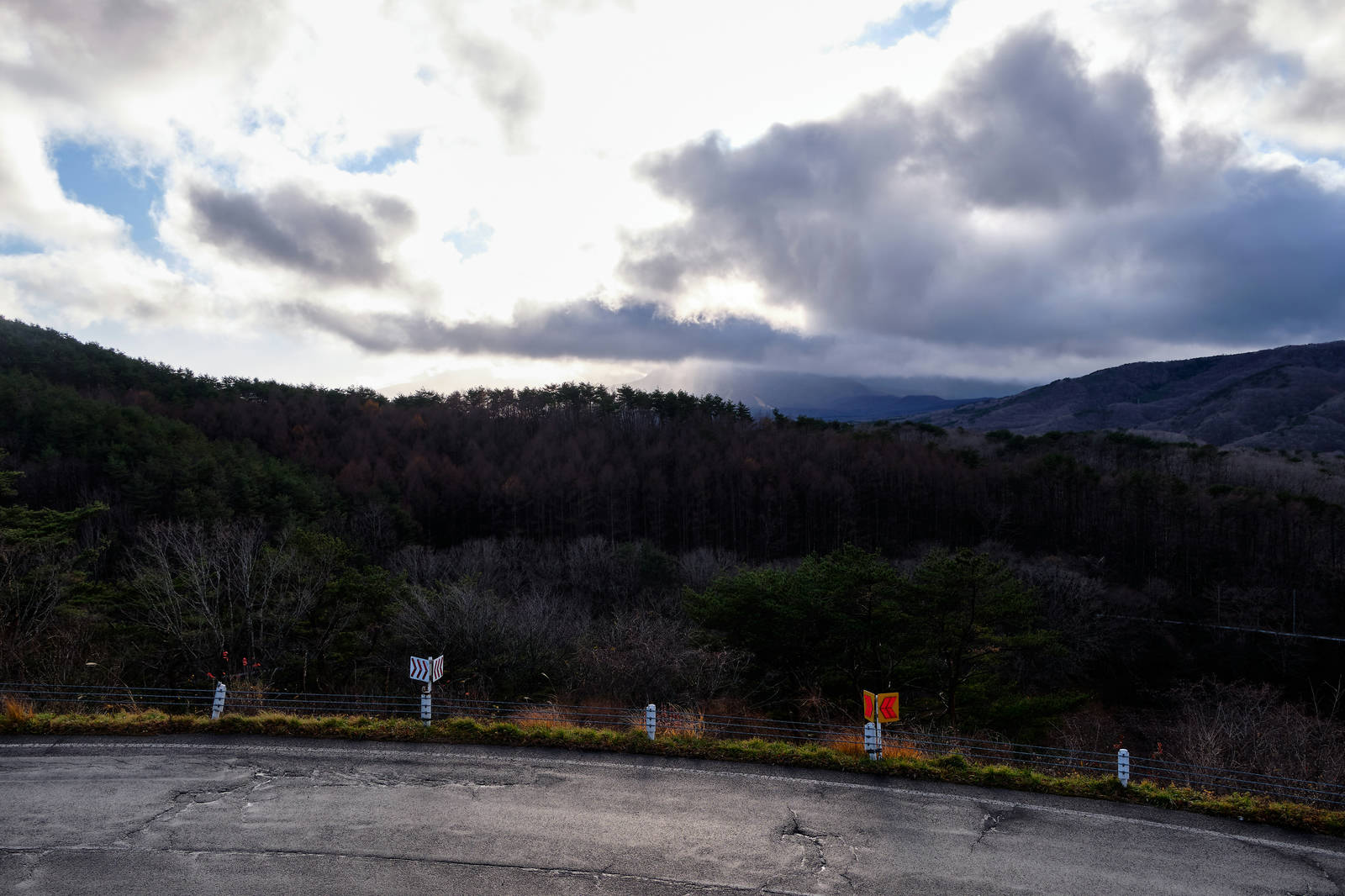 Am nächsten Tag habe ich mir dann aber fast die 48 Kurven zurückgewünscht. Ich habe (bzw. musste diesmal sogar) mal wieder einen Tunnel umfahren. Die Strecke hing mitten in einer Regenwolke, sah dadurch eigentlich recht cool aus, und hatte ihre Kurven auch durchnummeriert ... Die Zahlen überstiegen aber alle mir bekannten Alphabete. Der weitere Verlauf ging dann wenigstens über eine normale Landstraße durch ein trotz schlechten Wetters doch ganz hübsches Tal, vorbei an einigen Stauseen bis nach Maebashi. Das liegt am nördlichen Rand der Metropolregion Tokyo und vermittelt irgendwie auch schon ein ähnliches Gefühl, bin mir aber noch unschlüssig woran das liegt. Nach diesem kurzen ebenen Intermezzo hab ich mich aber statt direkt weiter nach Tokyo zu fahren doch lieber direkt wieder in den Berge begeben.