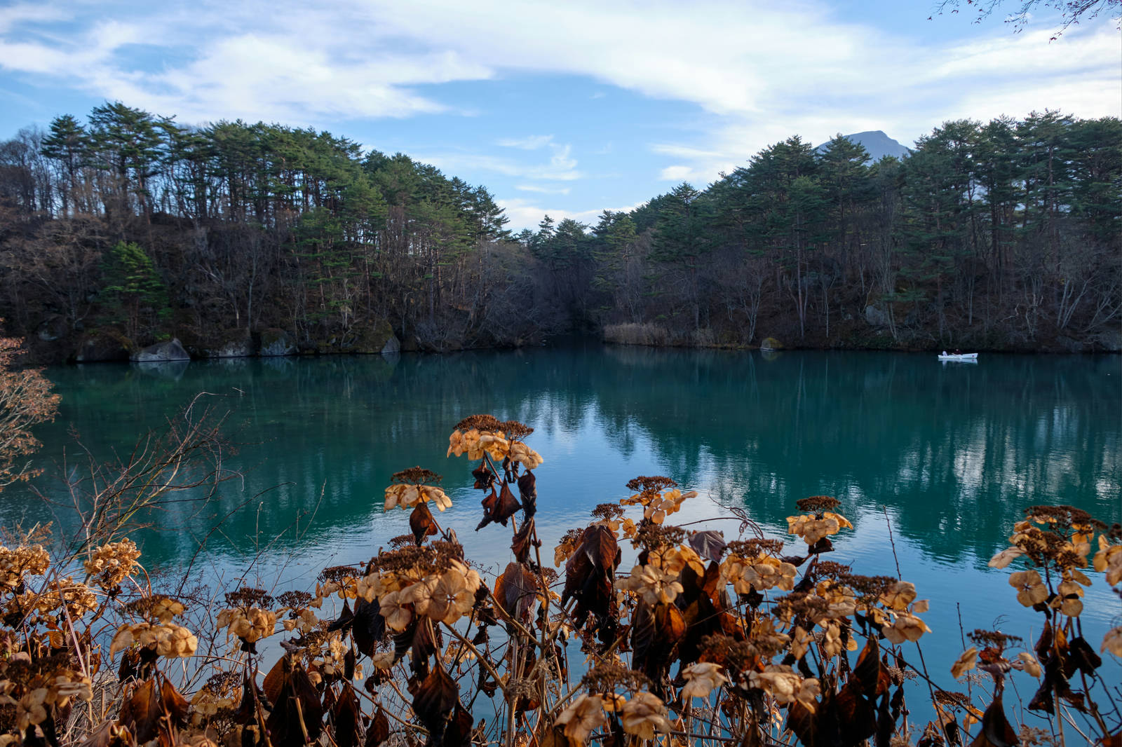 Da wir letztes Jahr an der Küste entlang nach Tokyo zurück sind, was deutlich weniger angenehm zu fahren war als es klingt, und von Sendai aus da wohl noch für längere Zeit ein strahlendes Sperrgebiet im Weg liegt, habe ich mich diesmal für die Bergroute im Inland entschieden. Nach einem kurzen Zwischenhalt in Fukushima (der Stadt, nicht der Präfektur oder der Katastrophe), ging es nach Aizuwakamatsu, dem ersten Ort neben Tokyo den ich durch die Tour letztes Jahr nun zweimal gesehen habe ... es ist nicht so, dass es da irgendwas außergewöhnliches gibt, lag halt auf dem Weg. Der führte mit etlichen Höhenmetern durch die Berge. Dort kann man, am Berg Bandai, die Farbigen Teiche bewundern, welche je nach Laune durch diverse vulkanische Mineralien verschieden bunt schillern. Die meisten davon sind aber nur erwanderbar und die Route war leider zu lang um sie unterwegs mitzunehmen, also habe ich mich auf die beiden Teiche am Anfange und Ende beschränken müssen. Zudem war auch mal wieder eine recht essentielle Straße gesperrt, was mir dann gleich mal zwei Stunden und ordentlich Höhe Umweg beschert hat und da es jetzt deutlich früher dunkel wird sind so Späße deutlich ungemütlicher geworden.